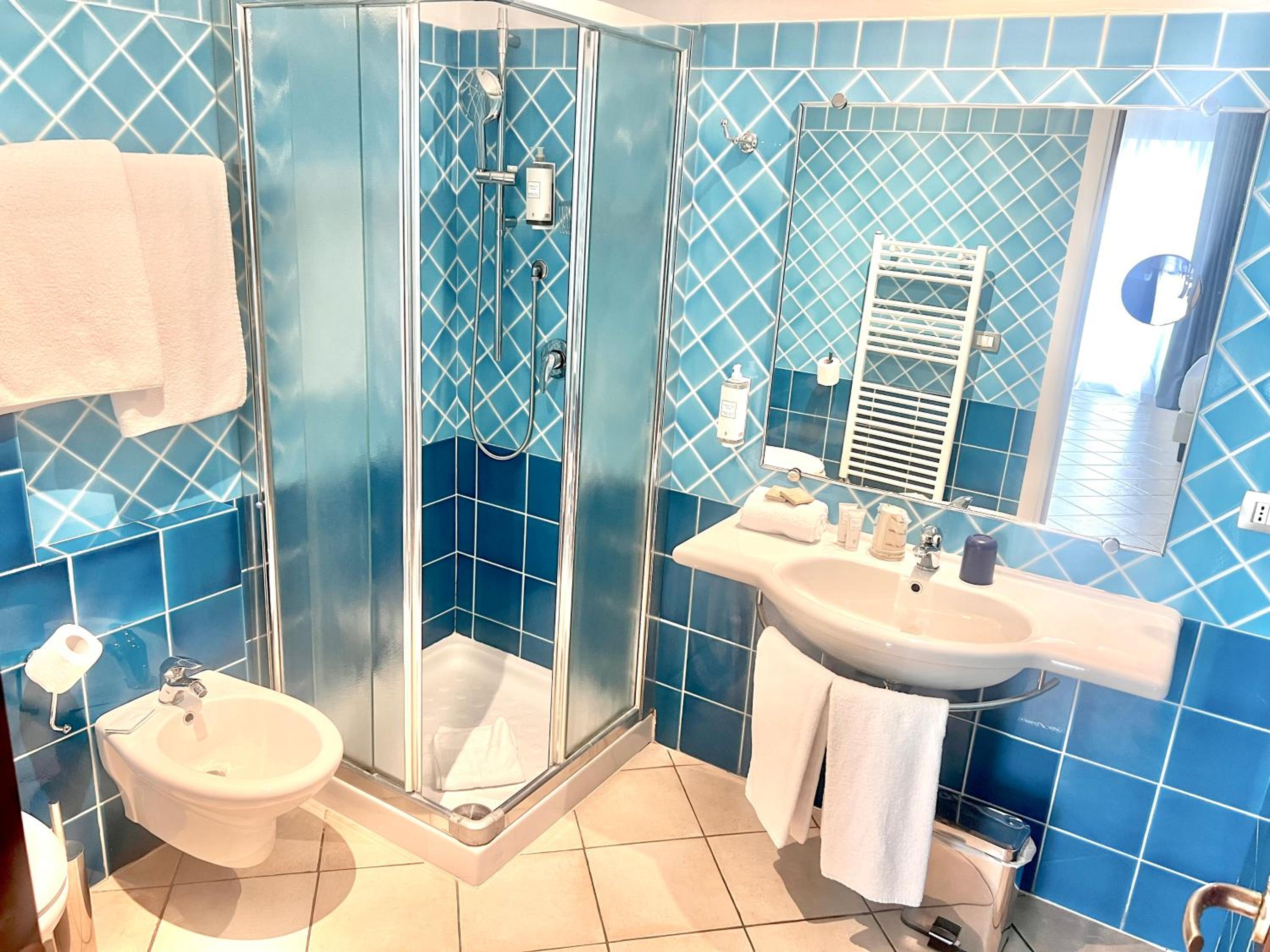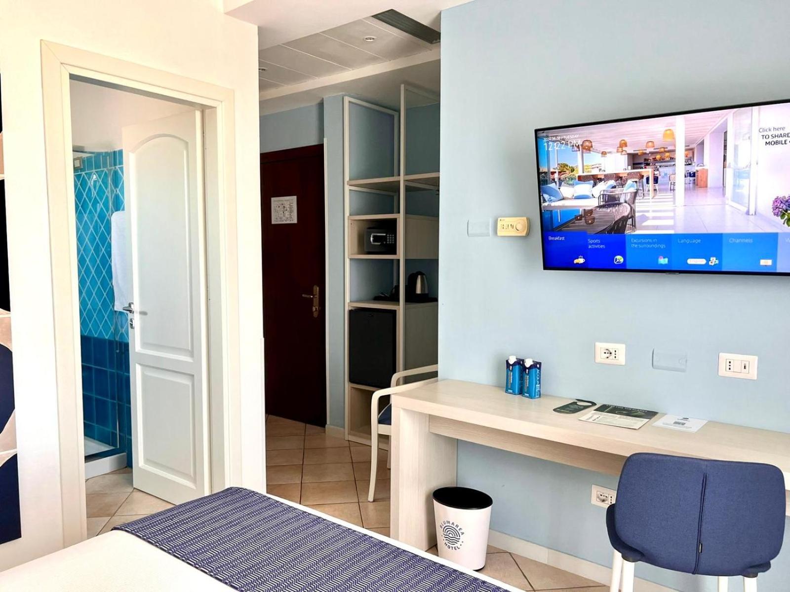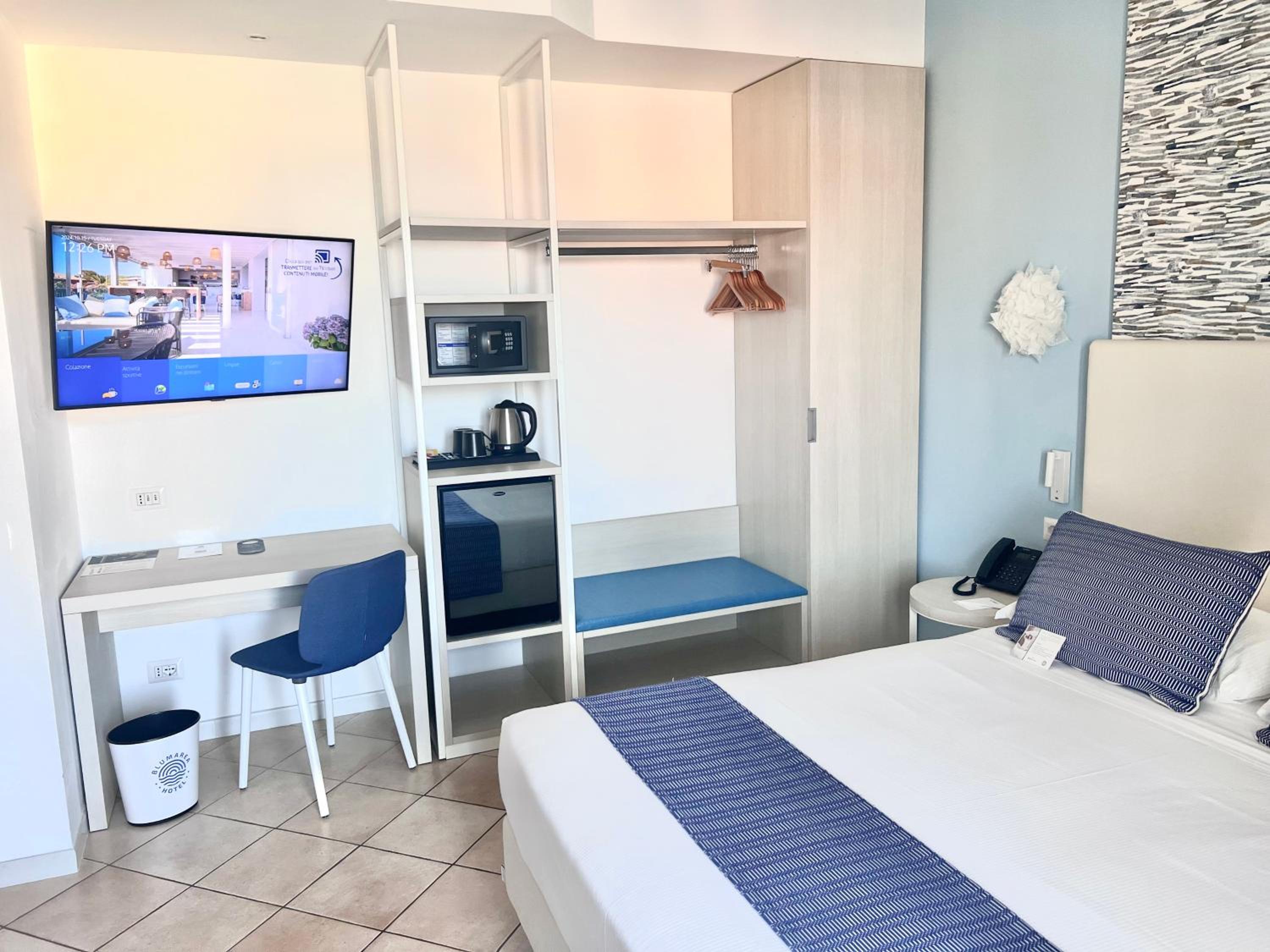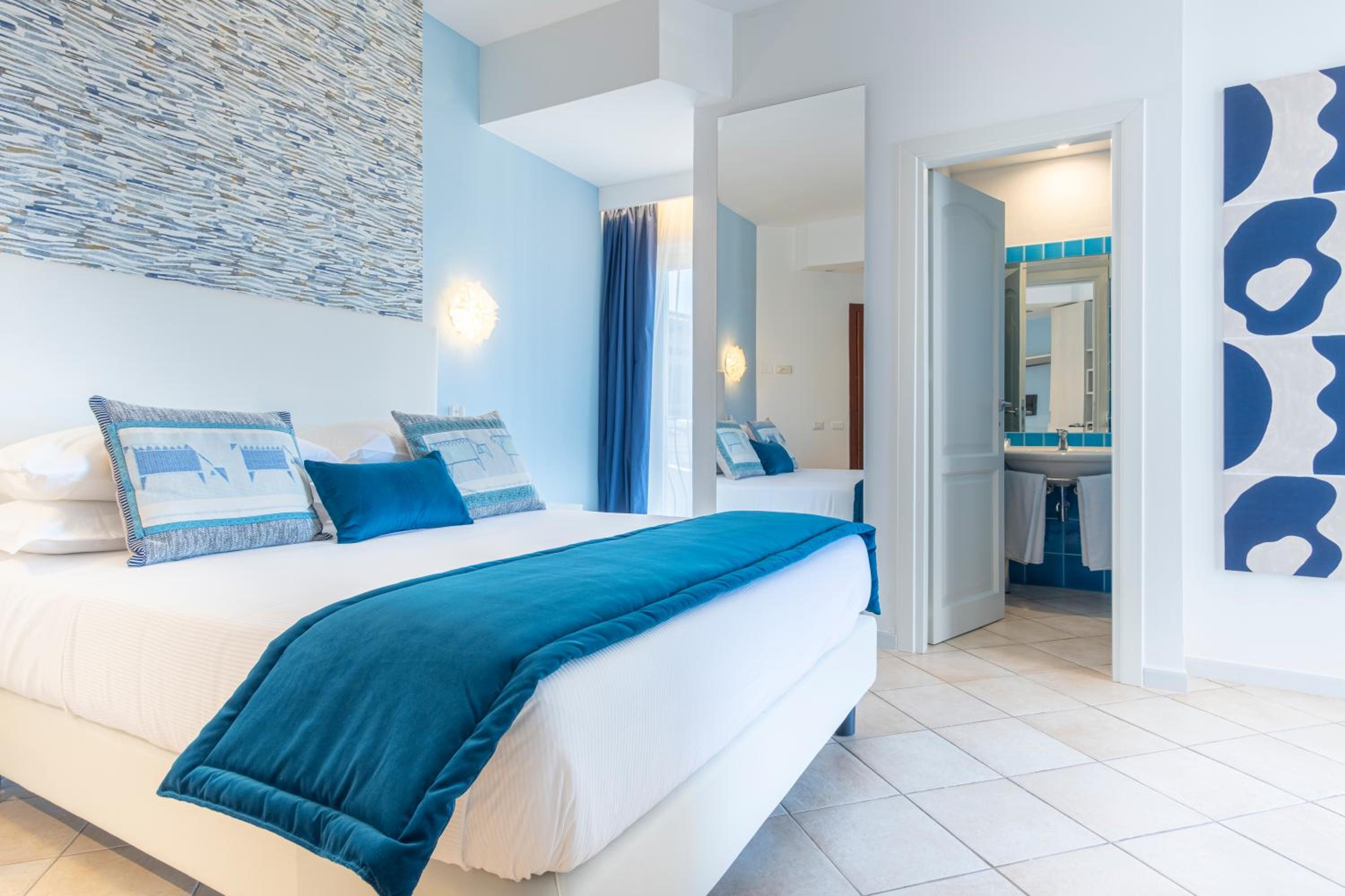 Indulge in the comfort of our air-conditioned rooms featuring satellite TV, a minibar, and a private bathroom. Upgrade to a room with a balcony for breathtaking views of the Sardinian Sea.