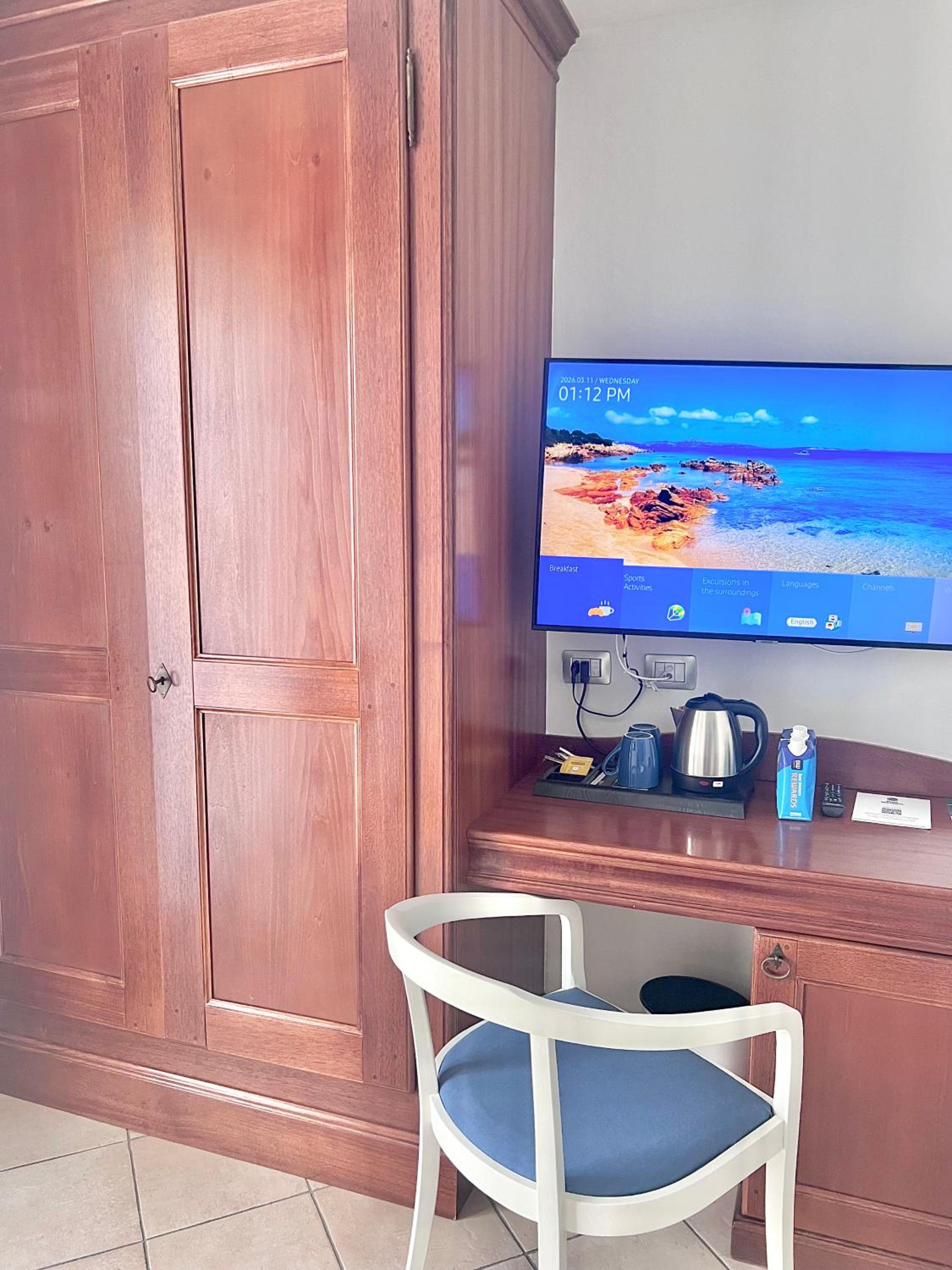 The staff were excellent from the start – really responsive and kind. Before our arrival they were very helpful through the app, answering questions about the pool and even arranging our taxi transfer from Olbia airport, which went very smoothly. Check-in was friendly and welcoming, and they took time to explain the hotel amenities. The rooms were clean, comfortable, and exactly as we’d requested – one double and one twin next to each other. Breakfast was very good, with a nice variety of pastries, cereals, eggs, toast, fruit, and even alternative milks available.