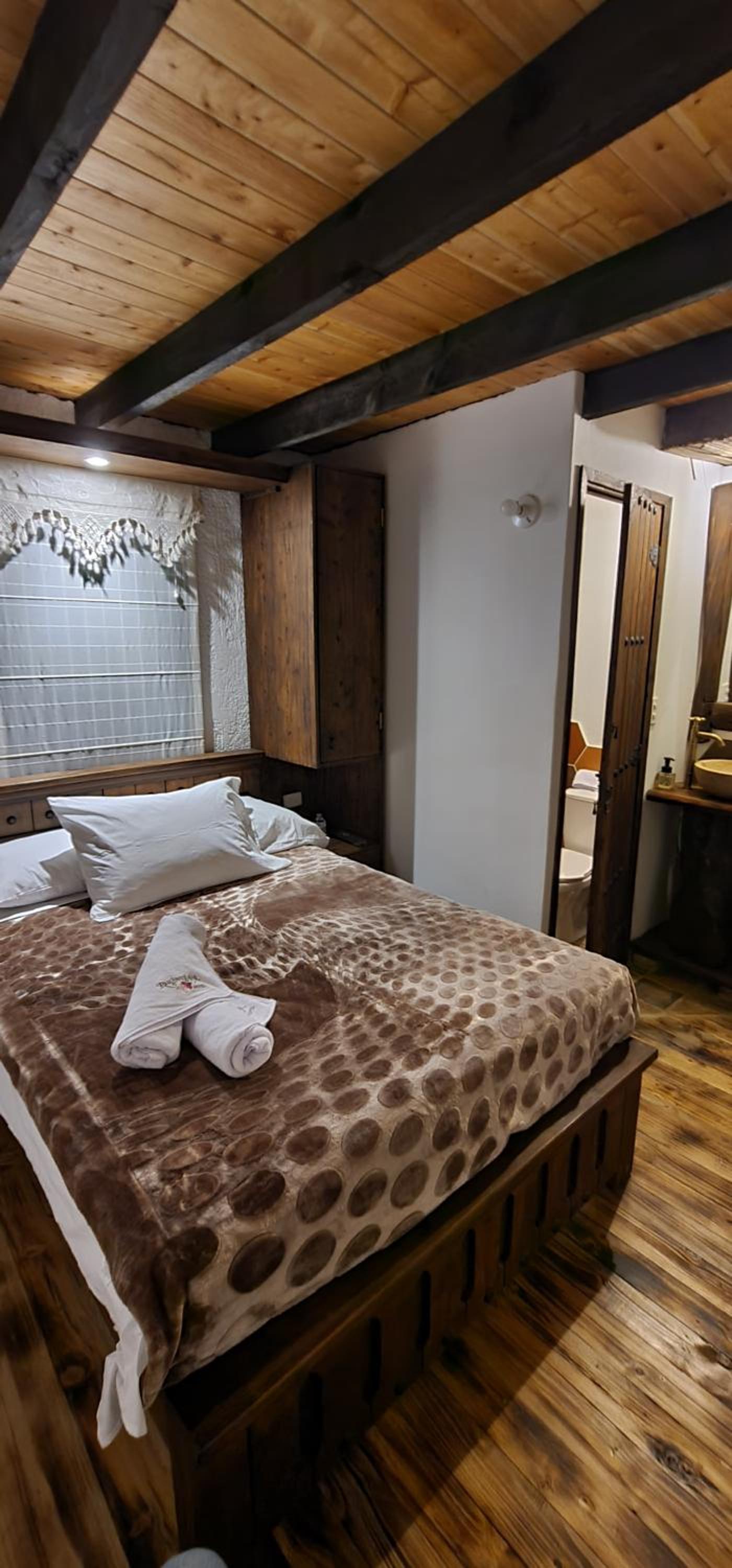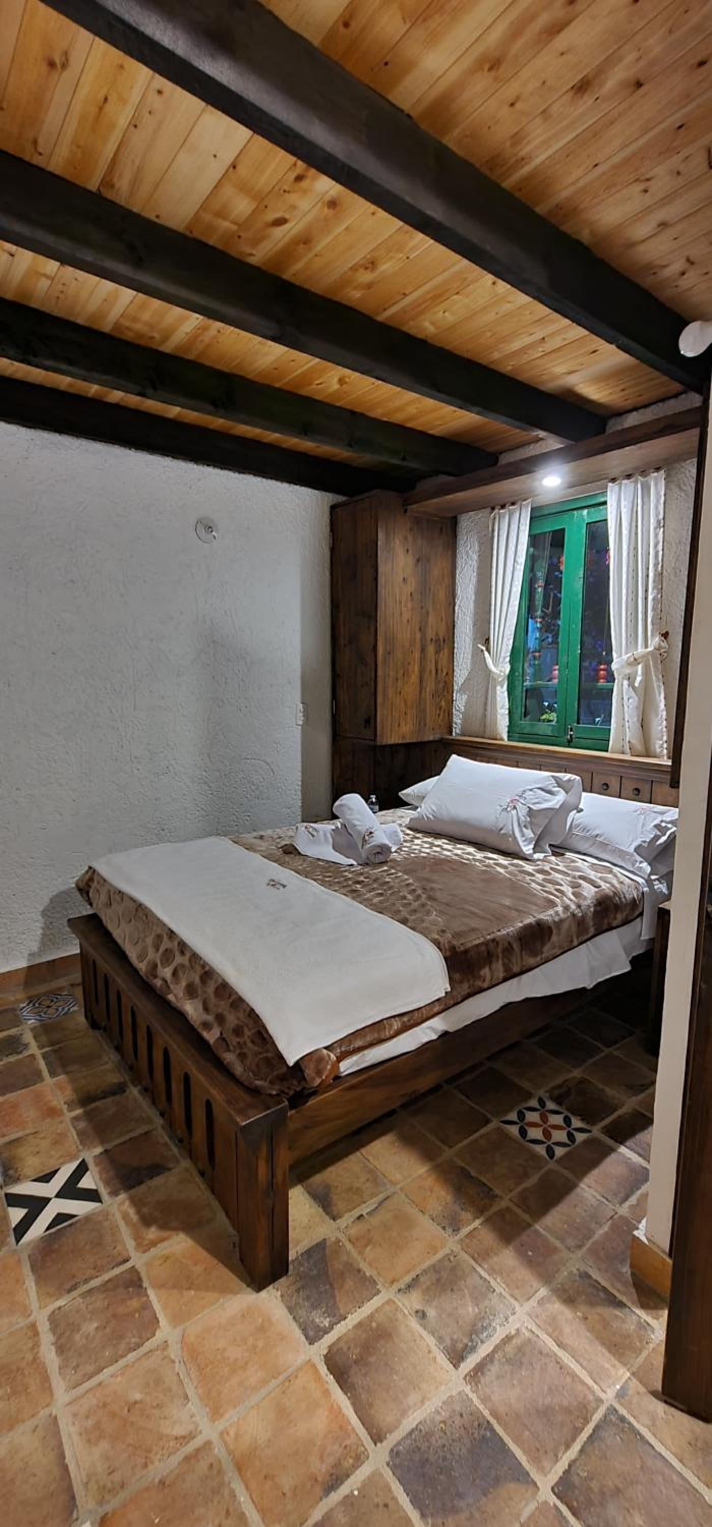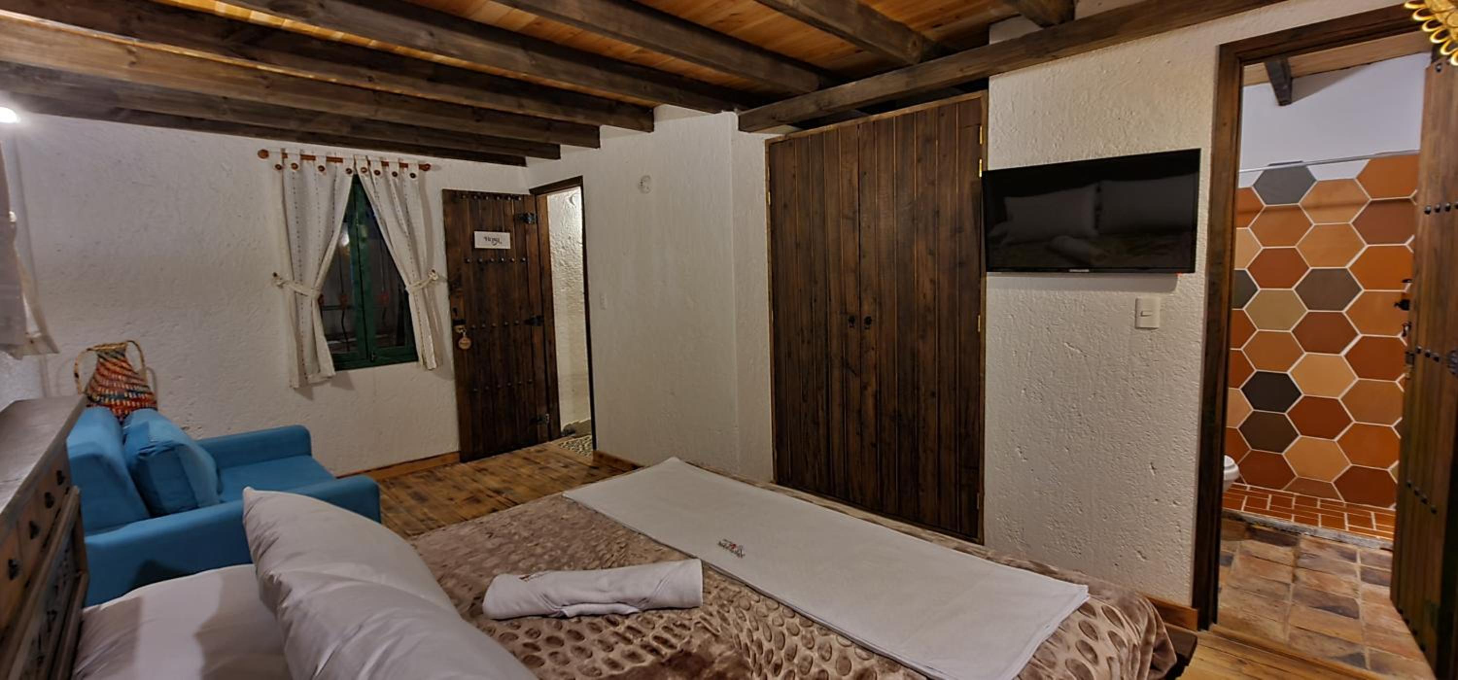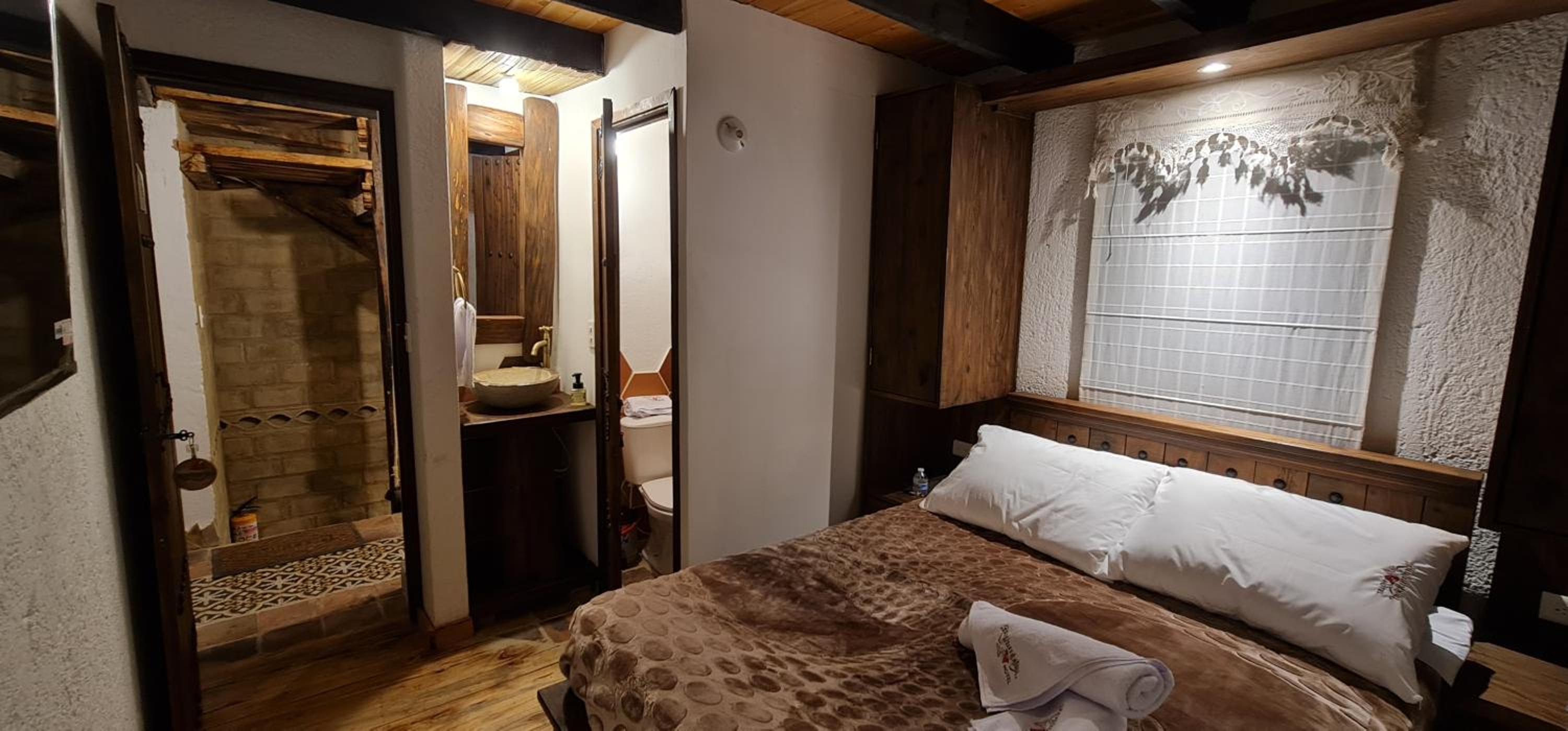 aunque el sitio es bien acogedor si seria bueno que mejoraran la privacidad de las puertas de las habitaciones ya que al ser de madera se podia mirar entre las divisiones de la madera y en ocaciones es incomodo para los otros huespedes y podria mejorar un poco el ruido entre habitaciones, tambien mejorar la variedad del desayuno incluir fruta, jugo de naranaj u otras opciones porque aunque fue bueno si podria mejorar, seria bueno que el parqueadero se puediera reservar dentro del pueblito boyacense y no por fuera en parqueaderos particulares.