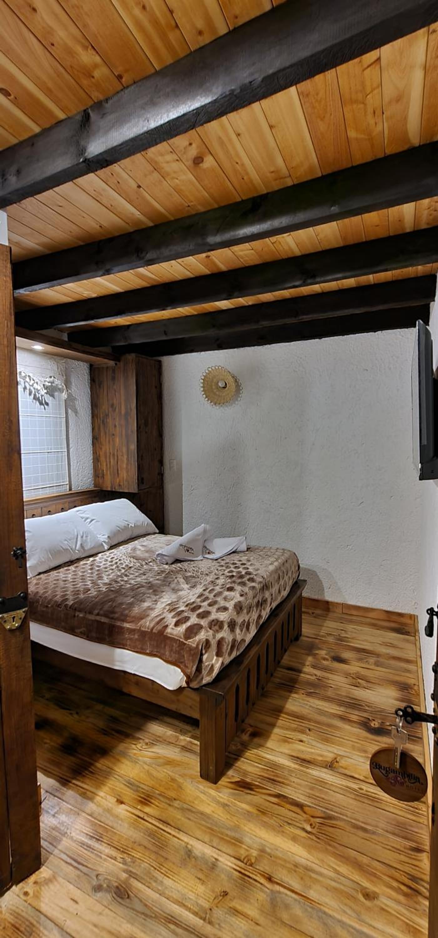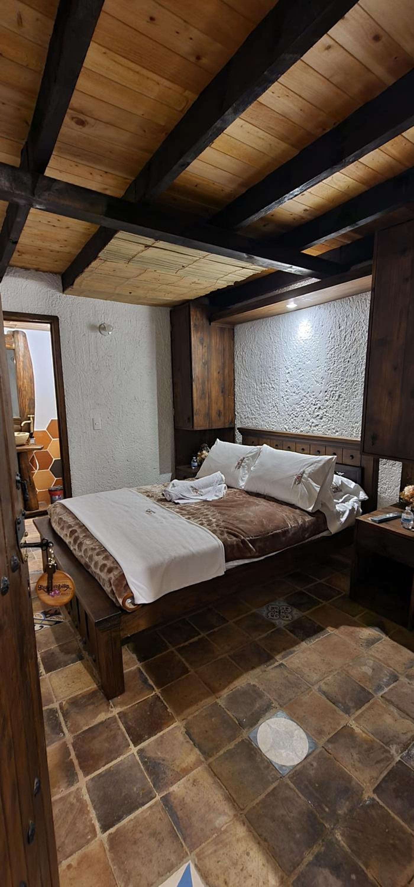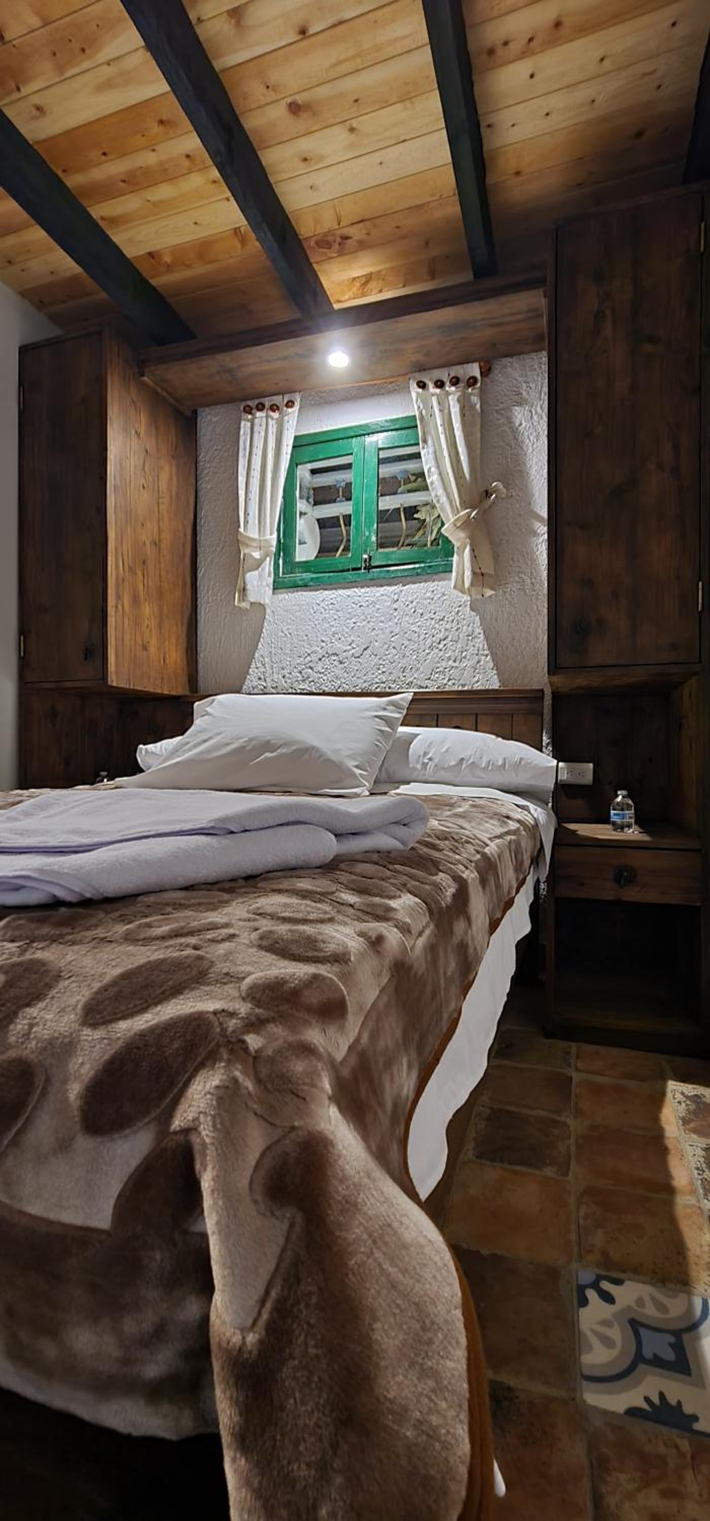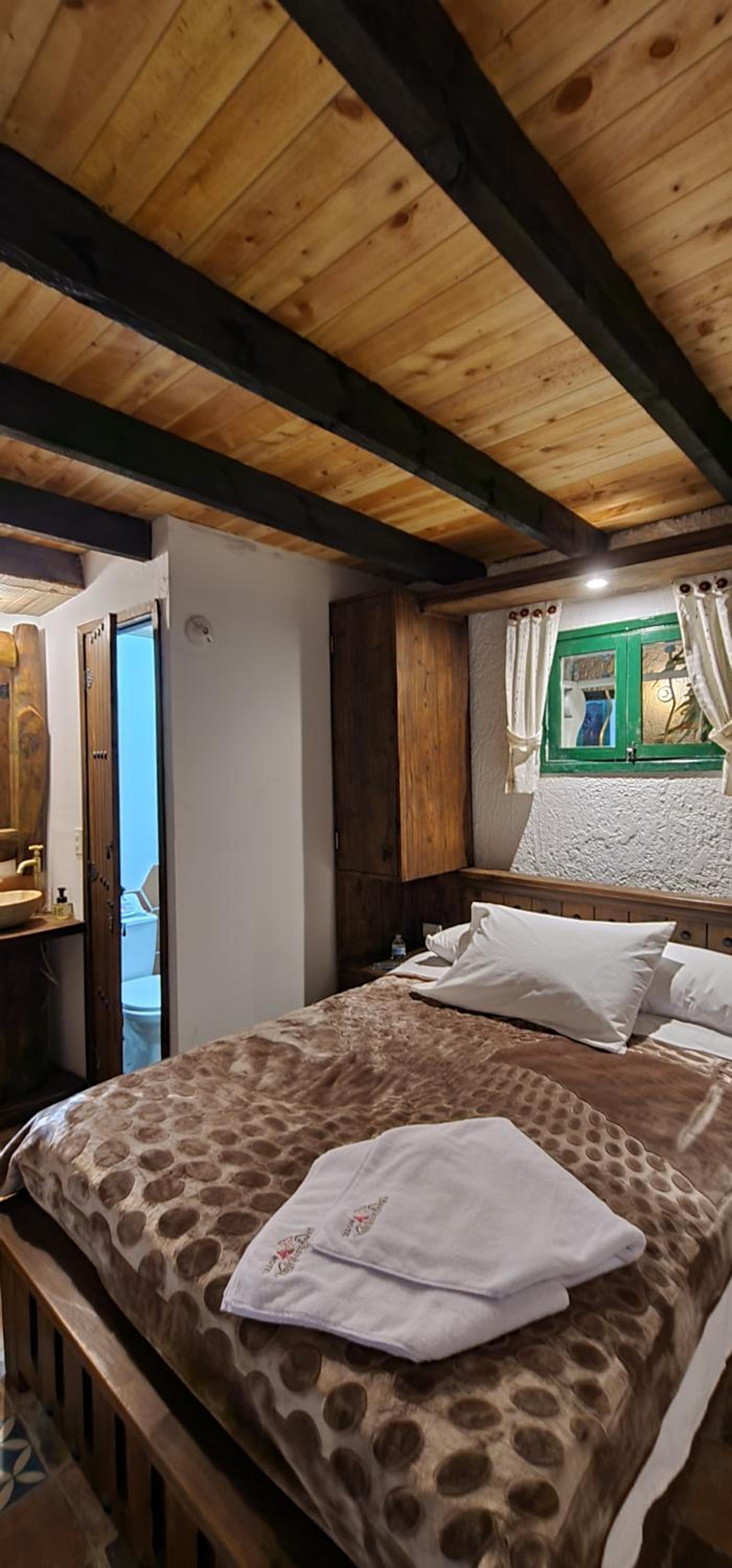 aunque el sitio es bien acogedor si seria bueno que mejoraran la privacidad de las puertas de las habitaciones ya que al ser de madera se podia mirar entre las divisiones de la madera y en ocaciones es incomodo para los otros huespedes y podria mejorar un poco el ruido entre habitaciones, tambien mejorar la variedad del desayuno incluir fruta, jugo de naranaj u otras opciones porque aunque fue bueno si podria mejorar, seria bueno que el parqueadero se puediera reservar dentro del pueblito boyacense y no por fuera en parqueaderos particulares.
