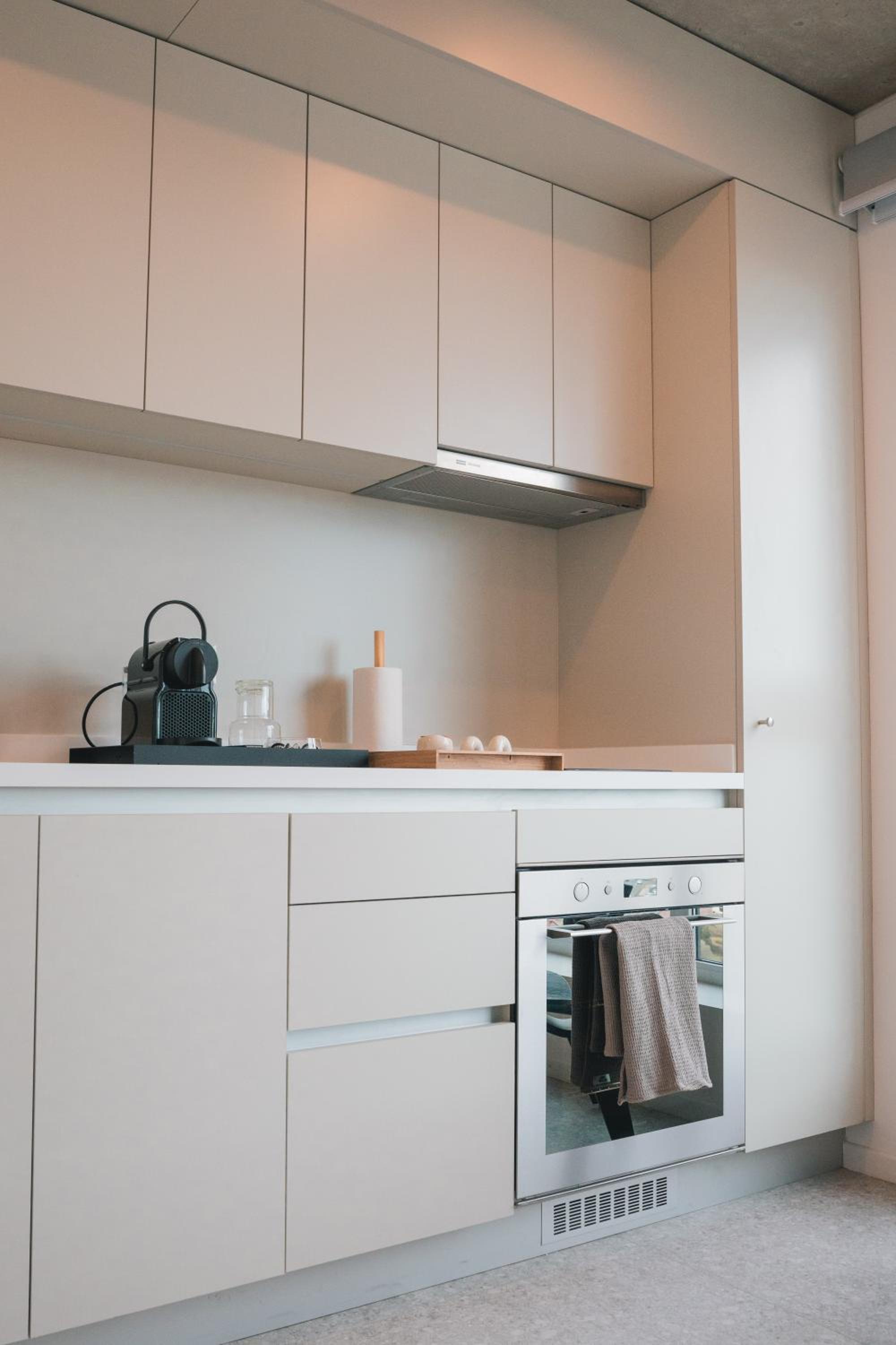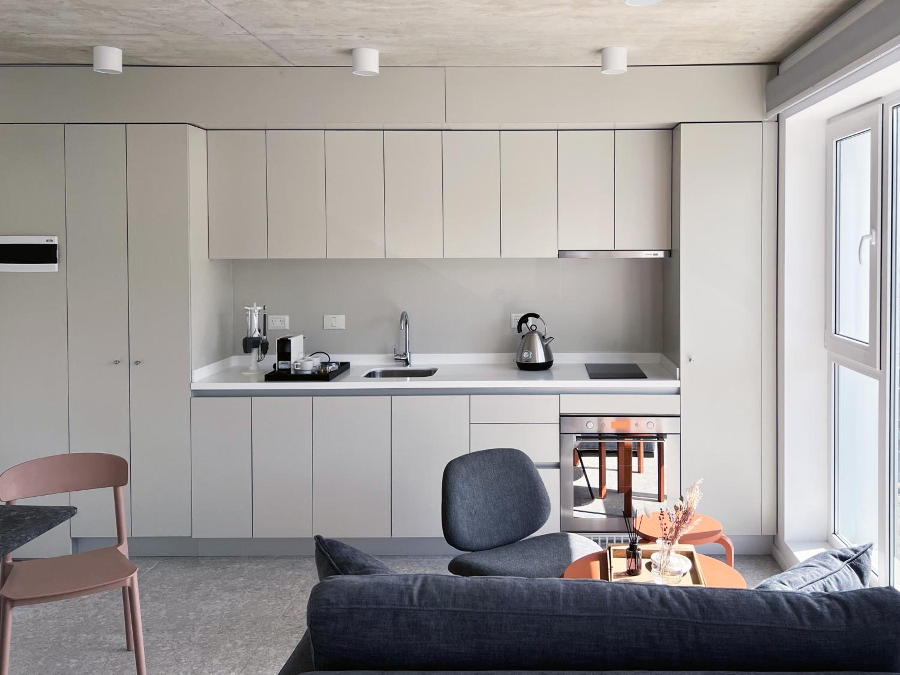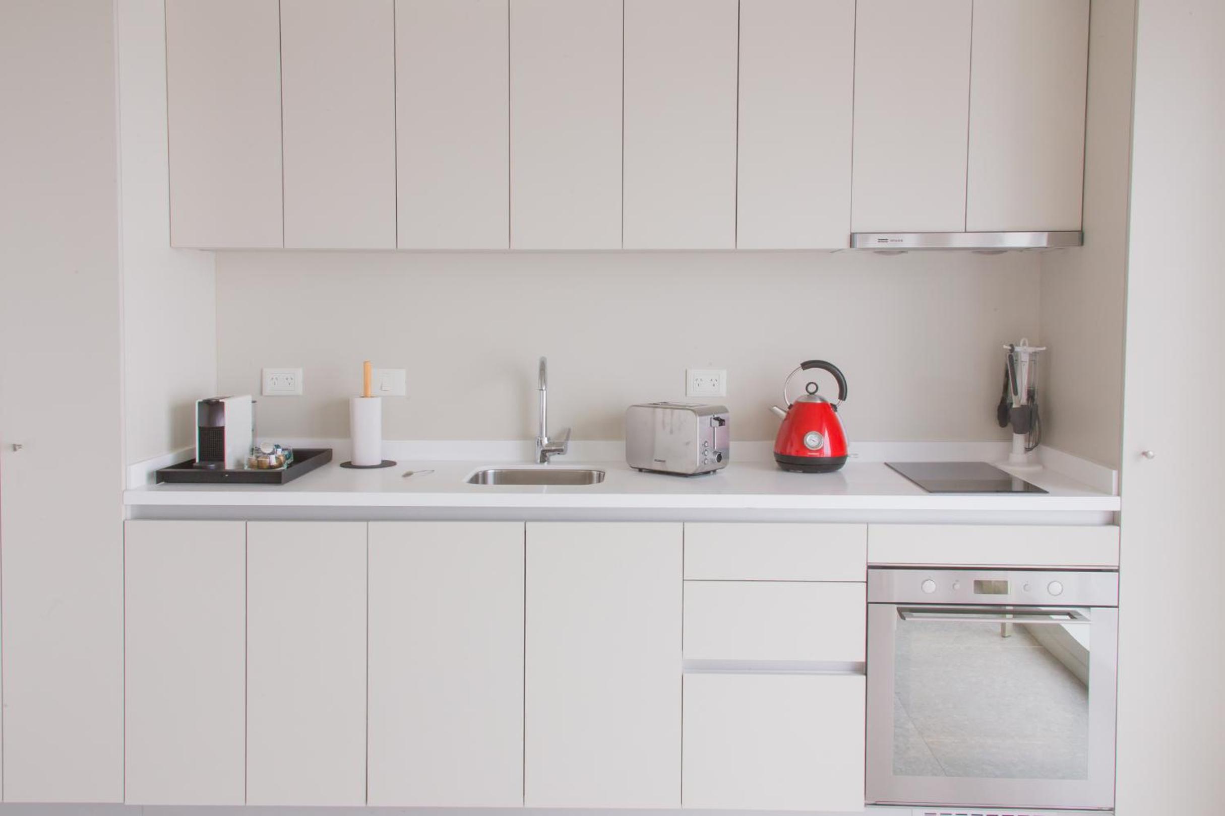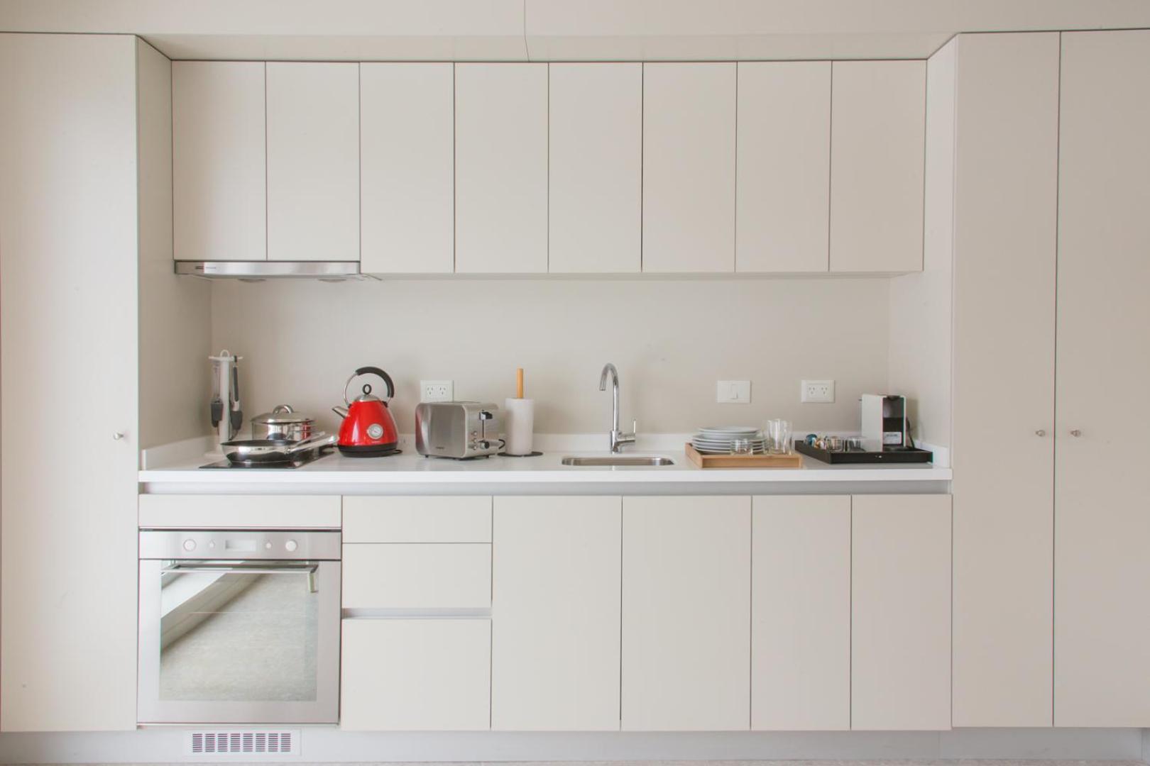 El mueble de la cocina totalmente equipado. no hay que interactuar con nadie es todo digital