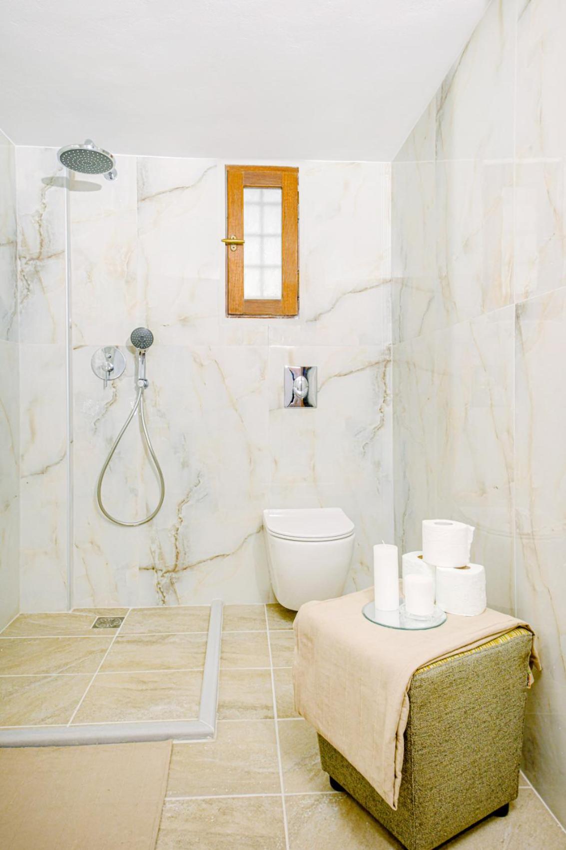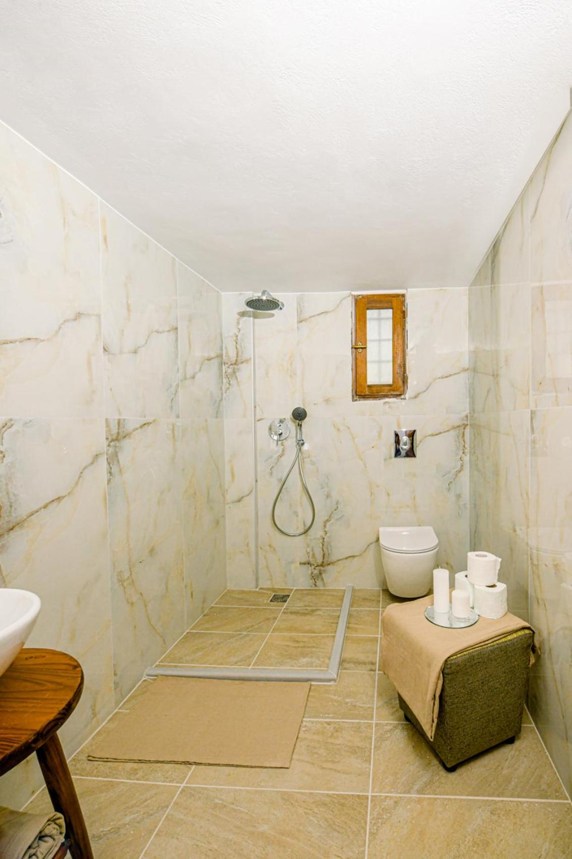 Doccia senza porta né tenda (molto comune a Creta), si allaga il pavimento del bagno ad ogni utilizzo.