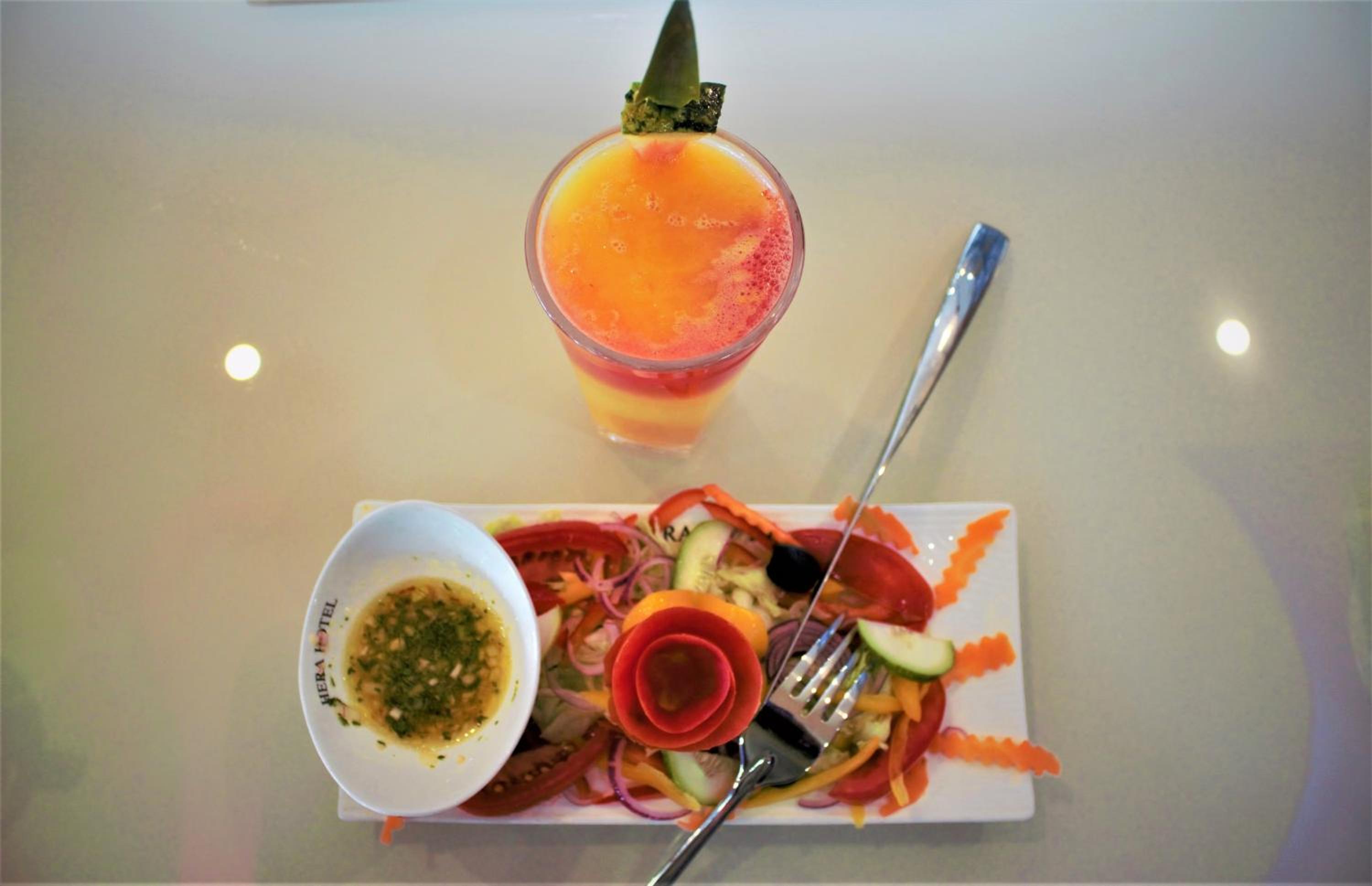 Good breakfast hot food and cold juice