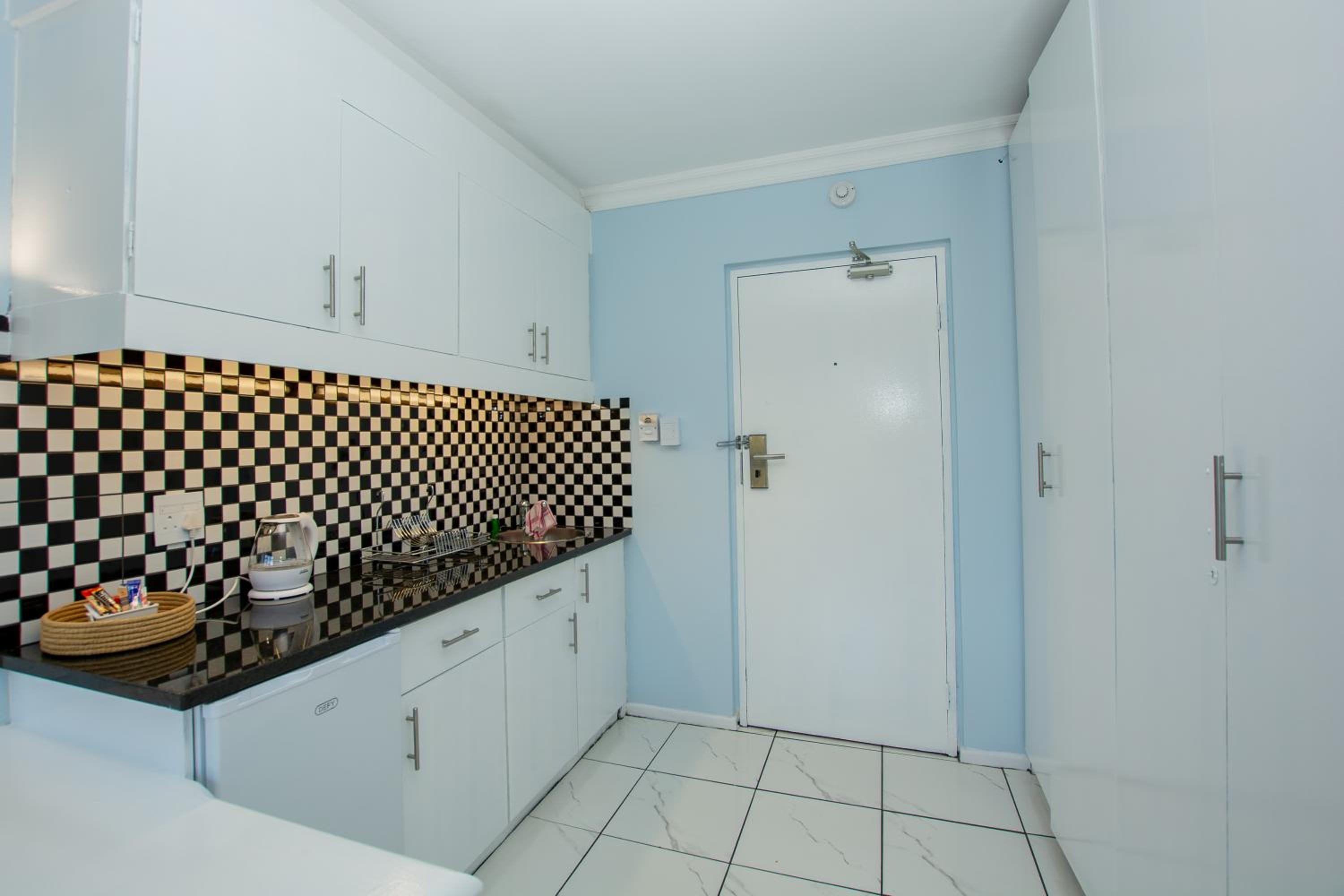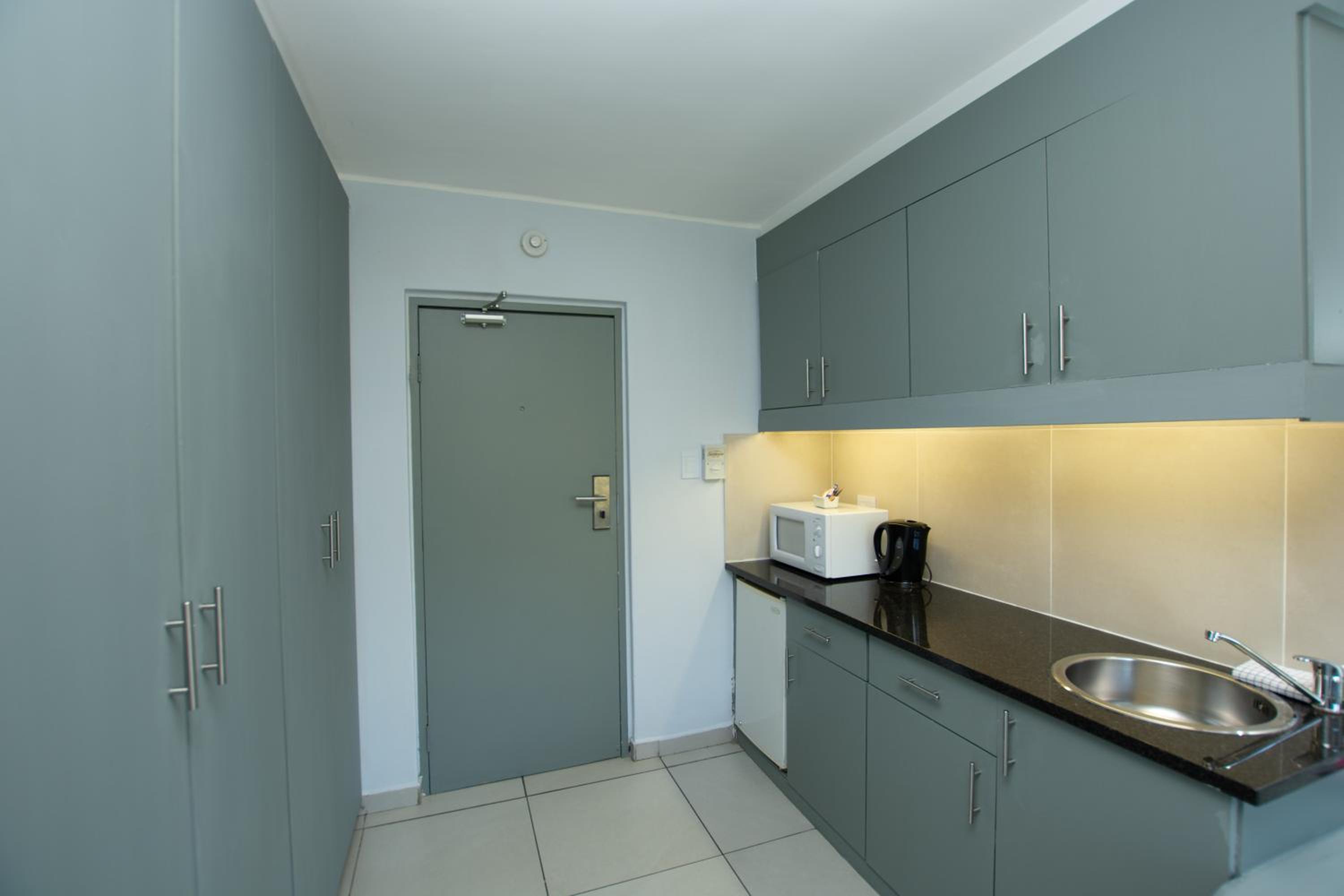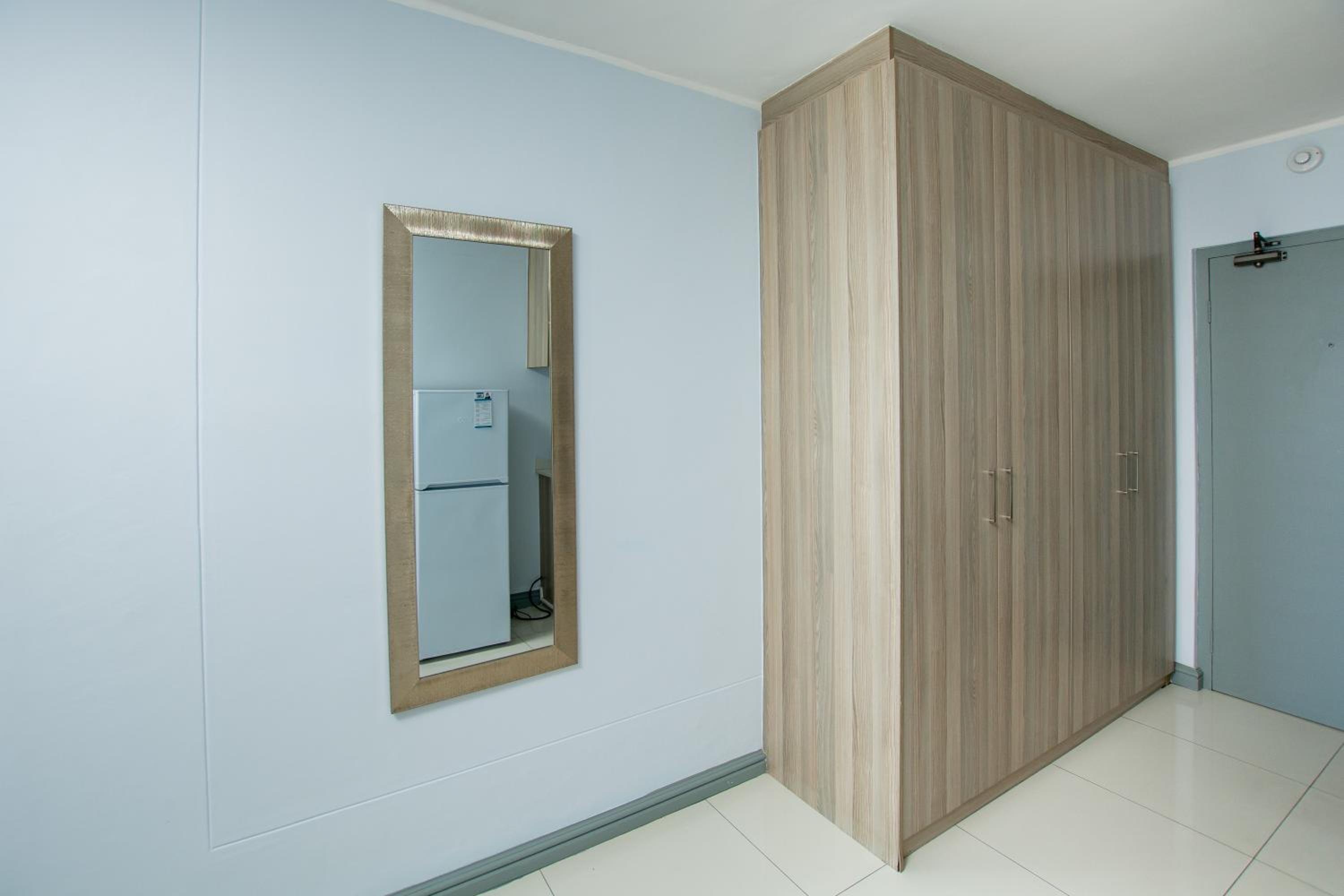 Foyer looked smart, but lift, passage to room and room are not maintained. Broken hinges on cupboard doors for instance. Everything looks old and not kept in good condition.