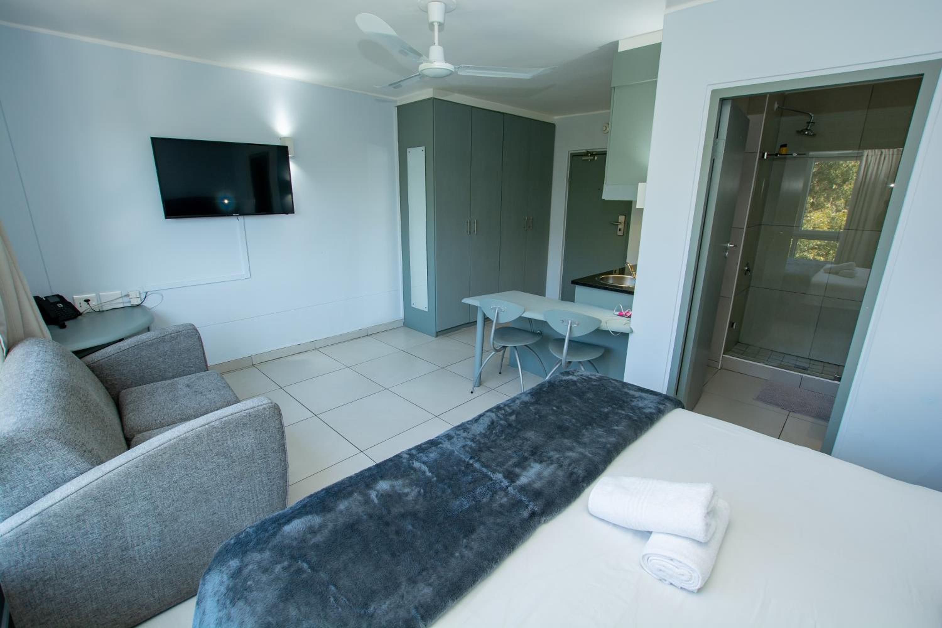 Enjoy comfortable rooms equipped with TV, kitchen facilities, and private bathrooms. Choose from studios, family rooms, or apartments for your perfect stay.