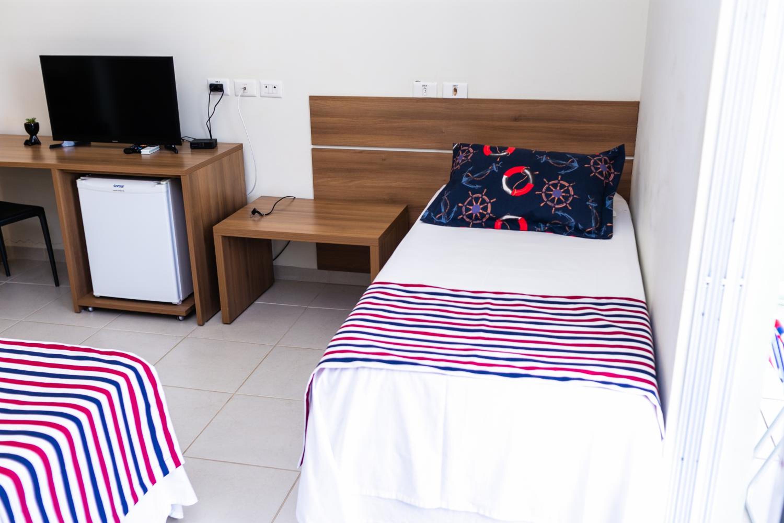 Os funcionários são muito educados e atenciosos. Café da manhã bom. Hotel pé na areia Quarto limpo e cama confortável.