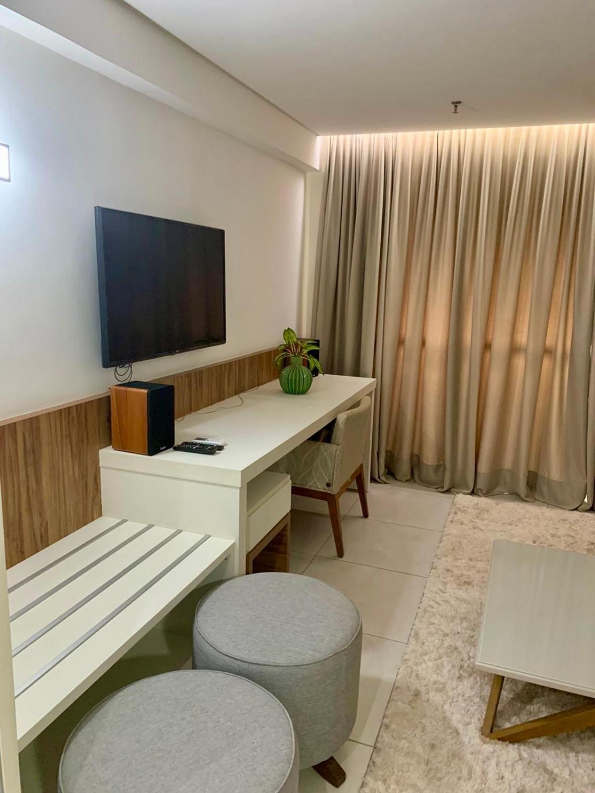 Experience superior comfort in a fully equipped apartment with a separate bedroom, bathroom, and a cozy living room at INOVA FLAT conforto no Condominio Cosmopolitan.
