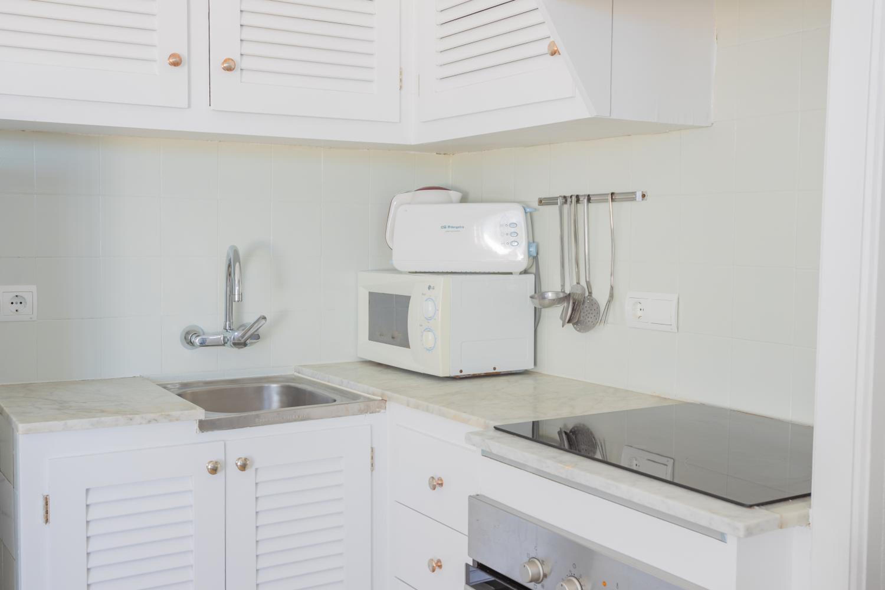 Apartma v katerem smo bili nastanjeni, bi potreboval samo malo obnove in malenkostnih popravil. V kuhinji imaš sicer vse pripomočke, vendar bi za lažje kuhanje potrebovali večji pult.