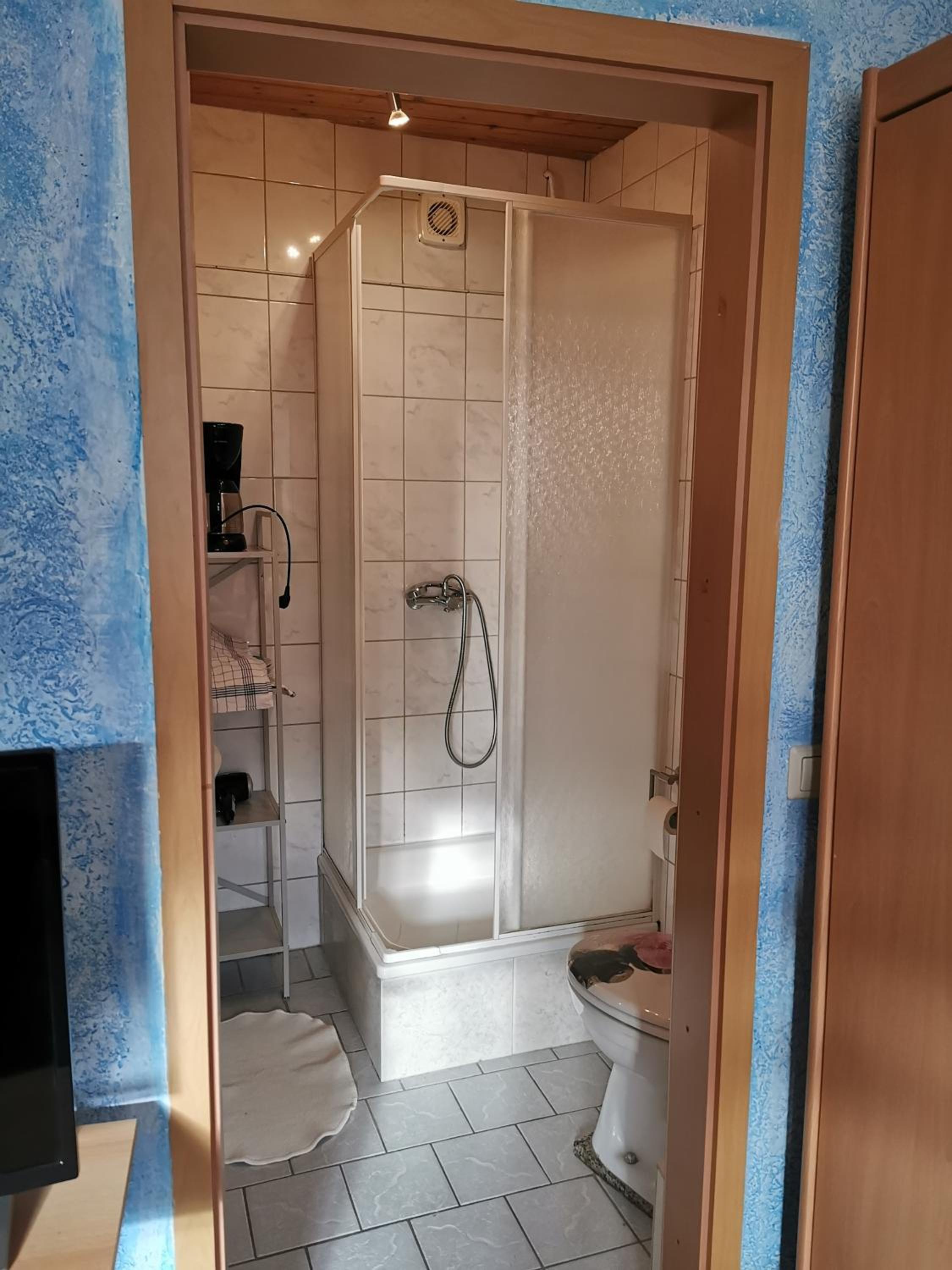 Dusche mit Drücker ungewöhnlich.