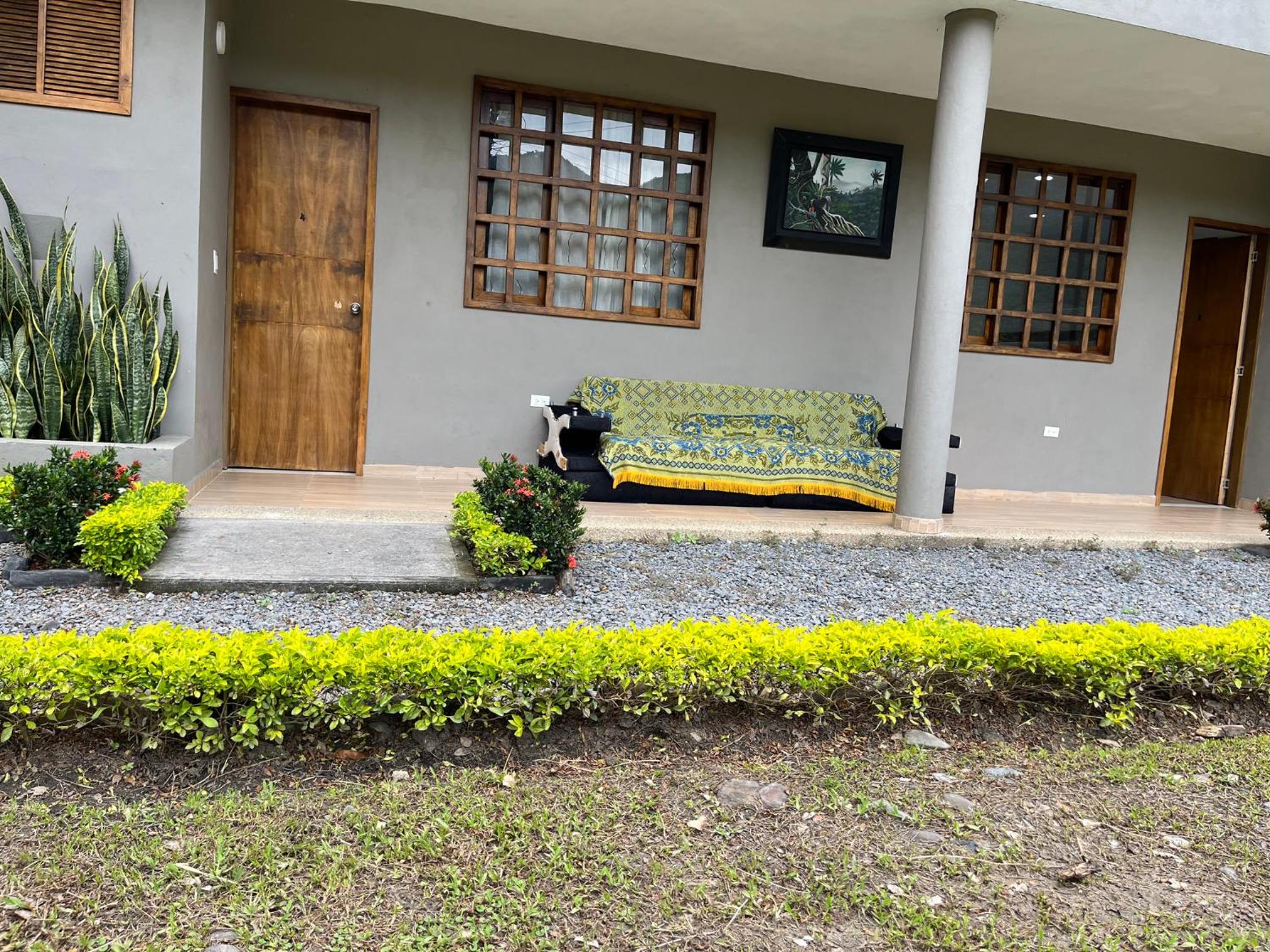 Escape to a tranquil oasis at Hotel Campestre Super Piscina Villeta surrounded by lush gardens and a serene terrace.