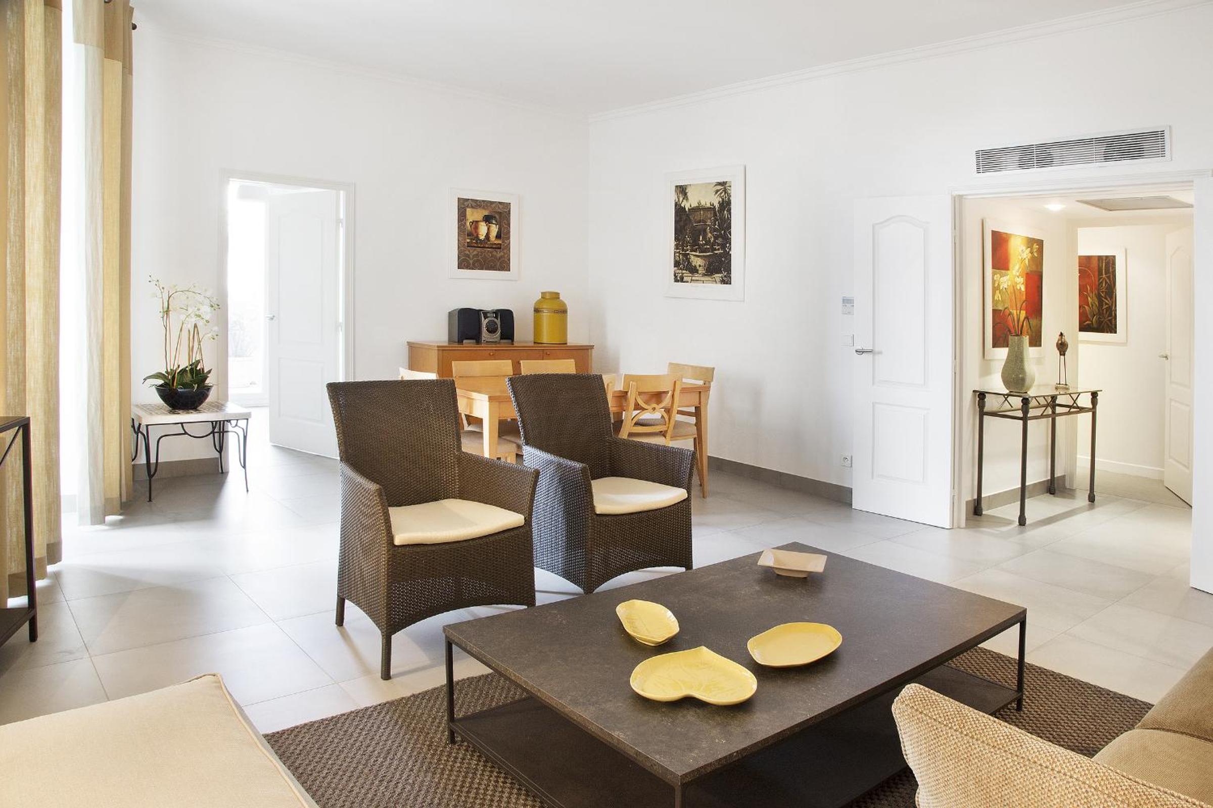 Spacious Apartments: Enjoy the comfort of spacious apartments with free Wi-Fi, some with terraces or balconies.