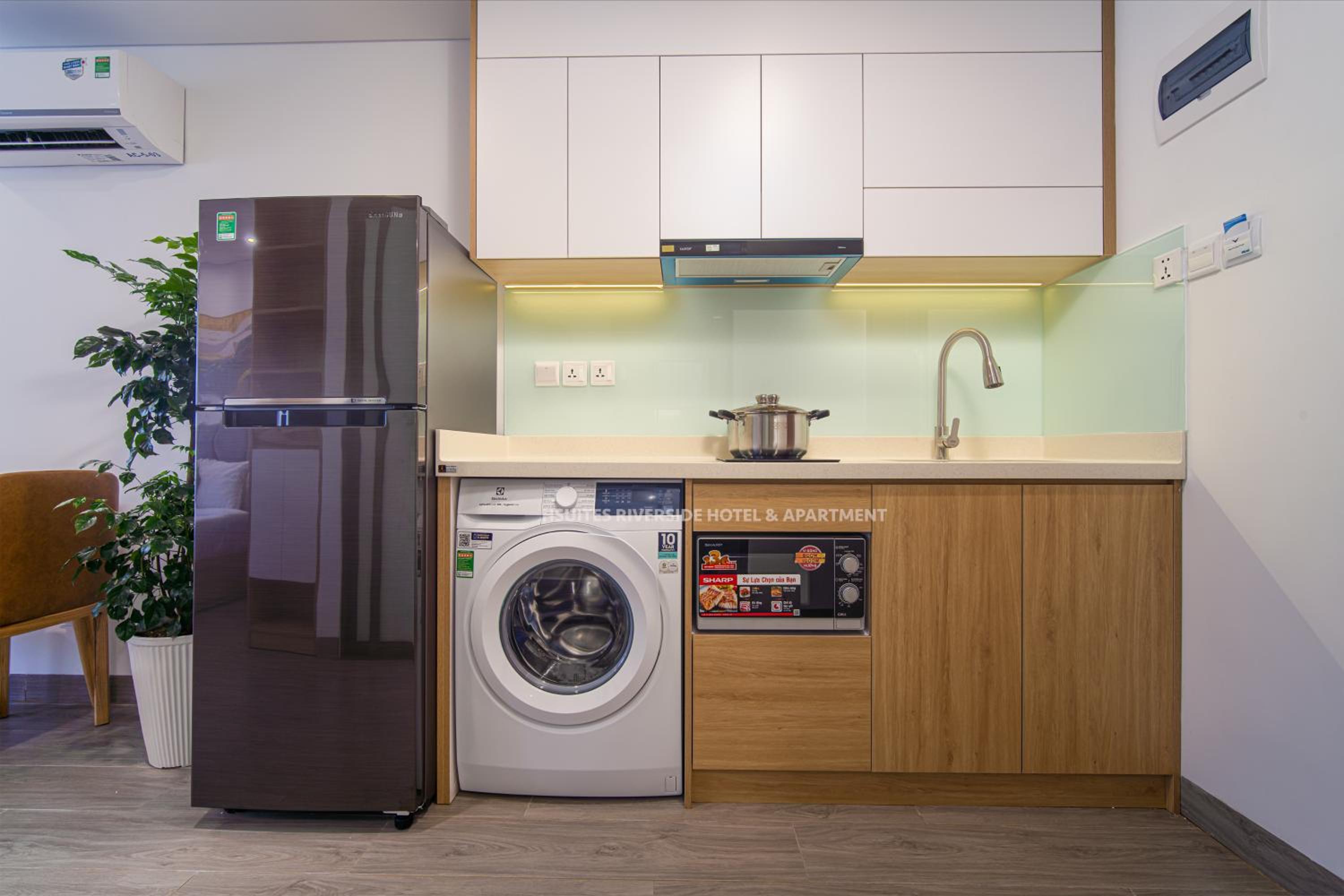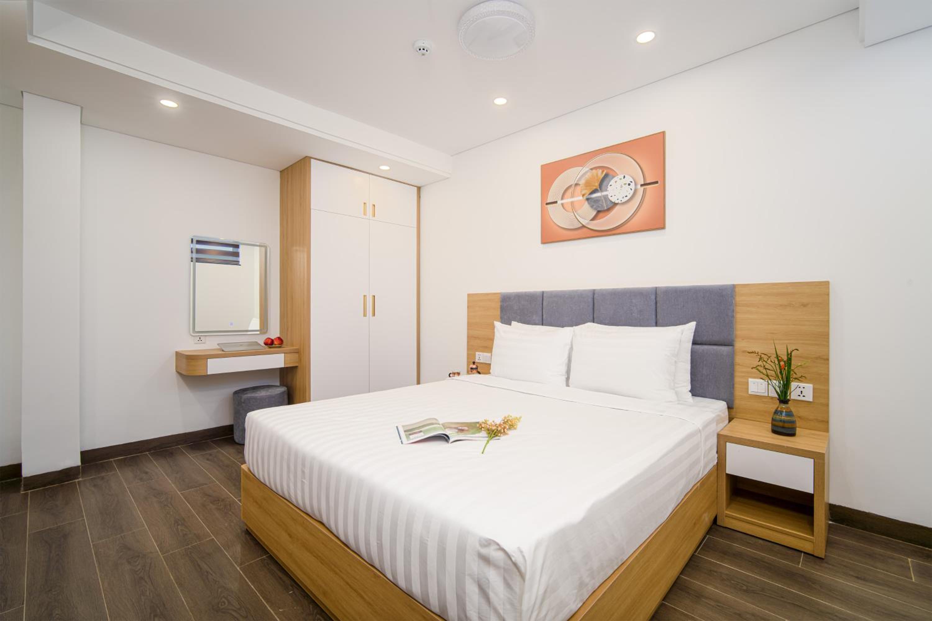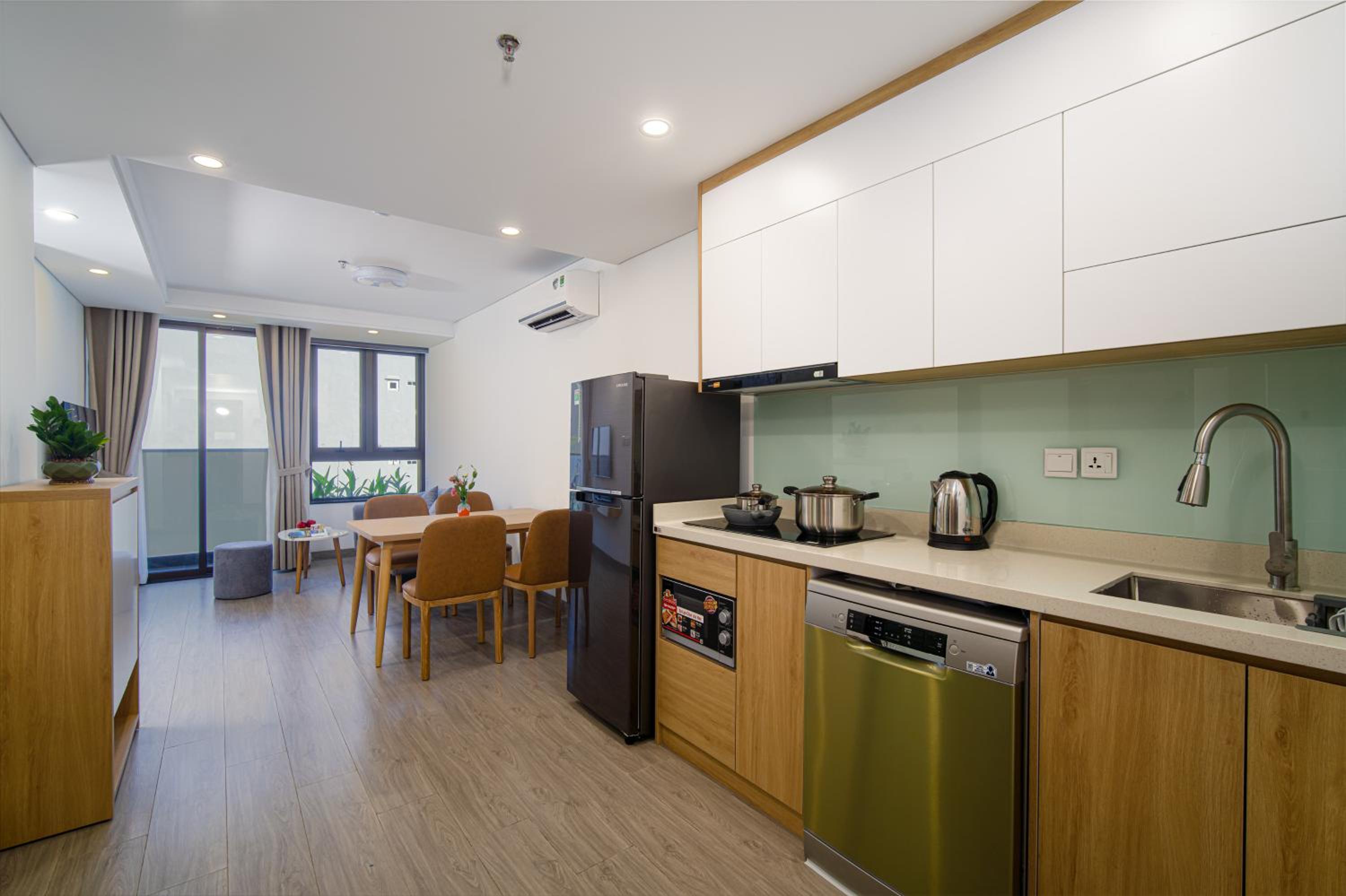 Hsuites seemed newly remodeled. They did a really good job of making the room very comfortable for longer stays. The Kitchenette is great. The hotel/apartments are close to the river, so the river walk is near with lots of restaurants. I booked it specifically because I wanted to be near the Dragon Bridge for the weekend show.