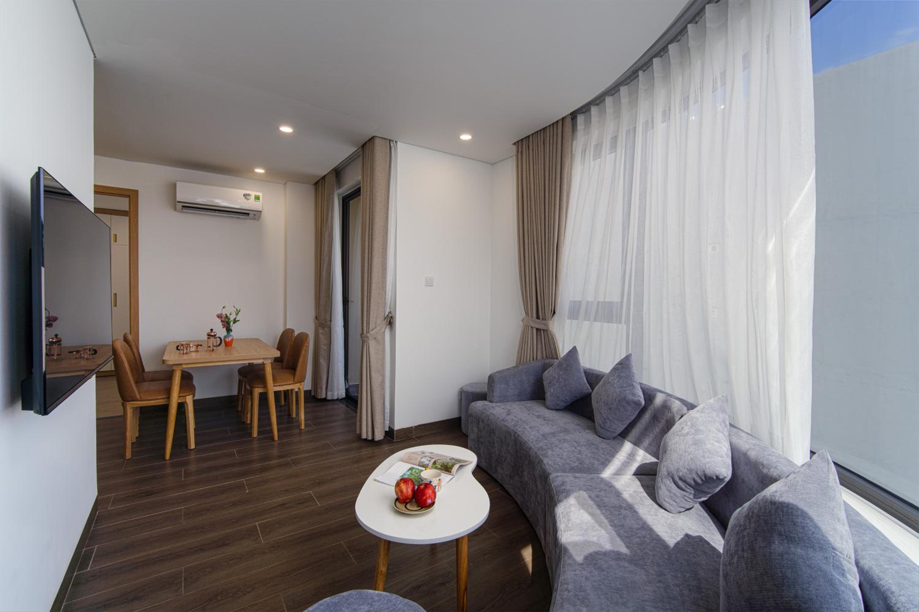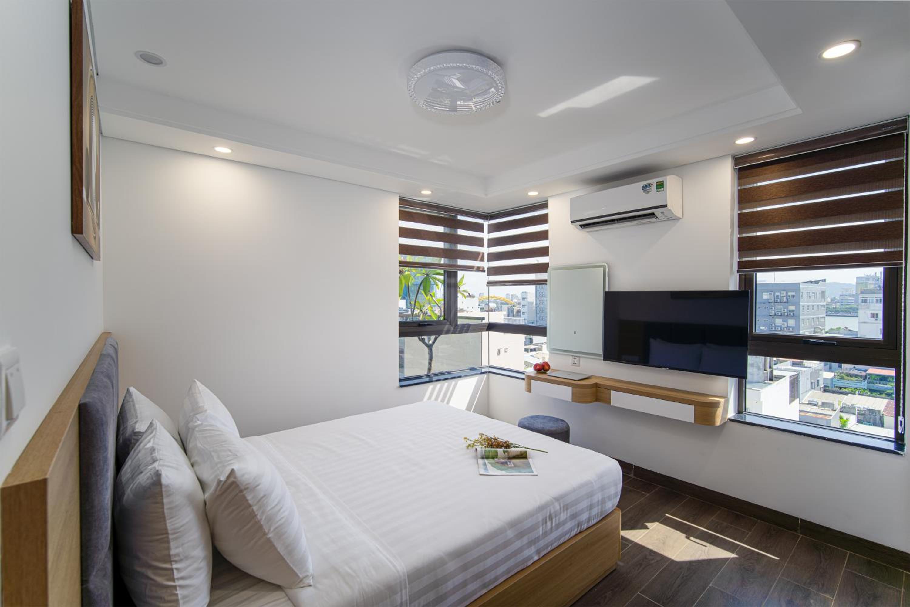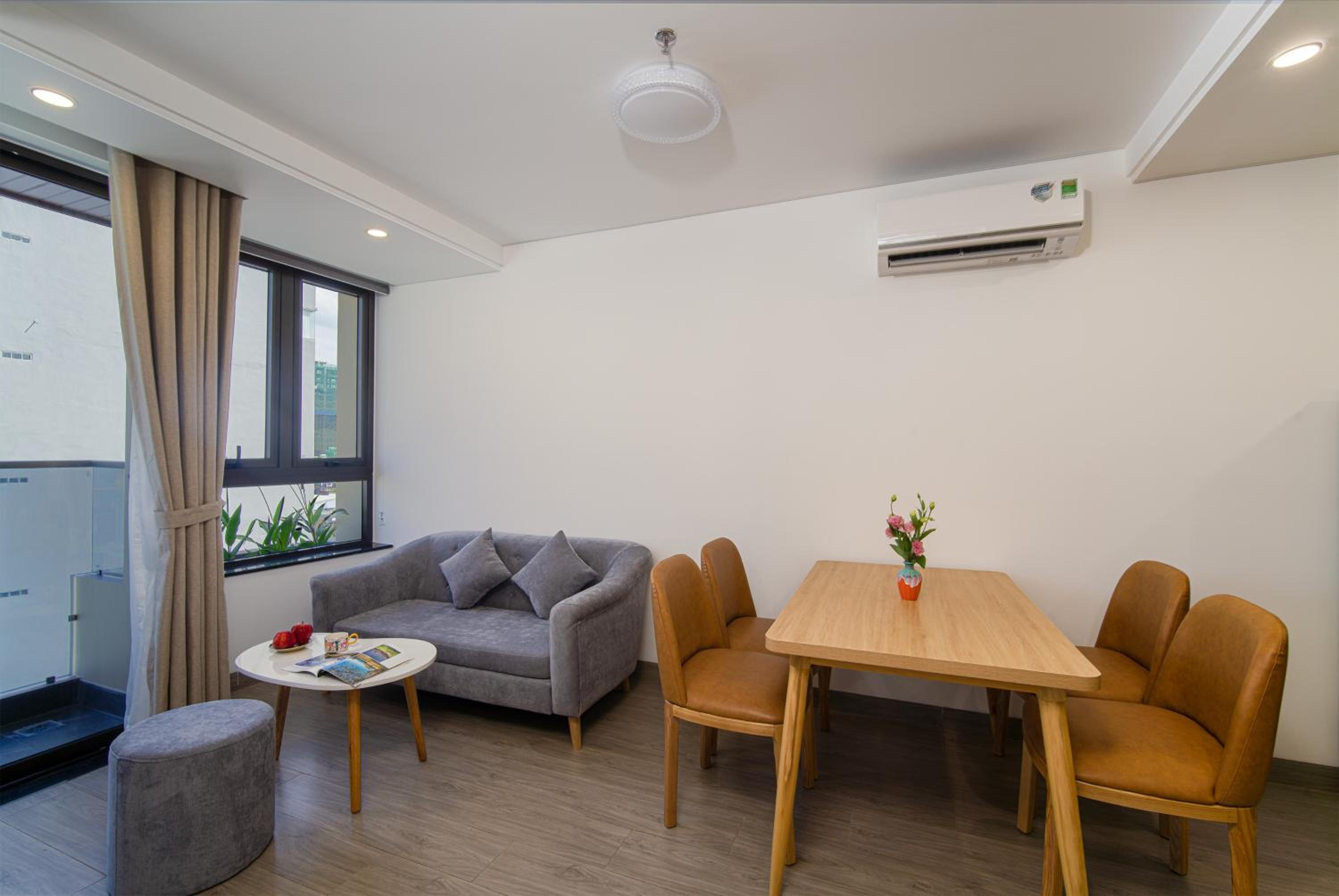 Hsuites seemed newly remodeled. They did a really good job of making the room very comfortable for longer stays. The Kitchenette is great. The hotel/apartments are close to the river, so the river walk is near with lots of restaurants. I booked it specifically because I wanted to be near the Dragon Bridge for the weekend show.