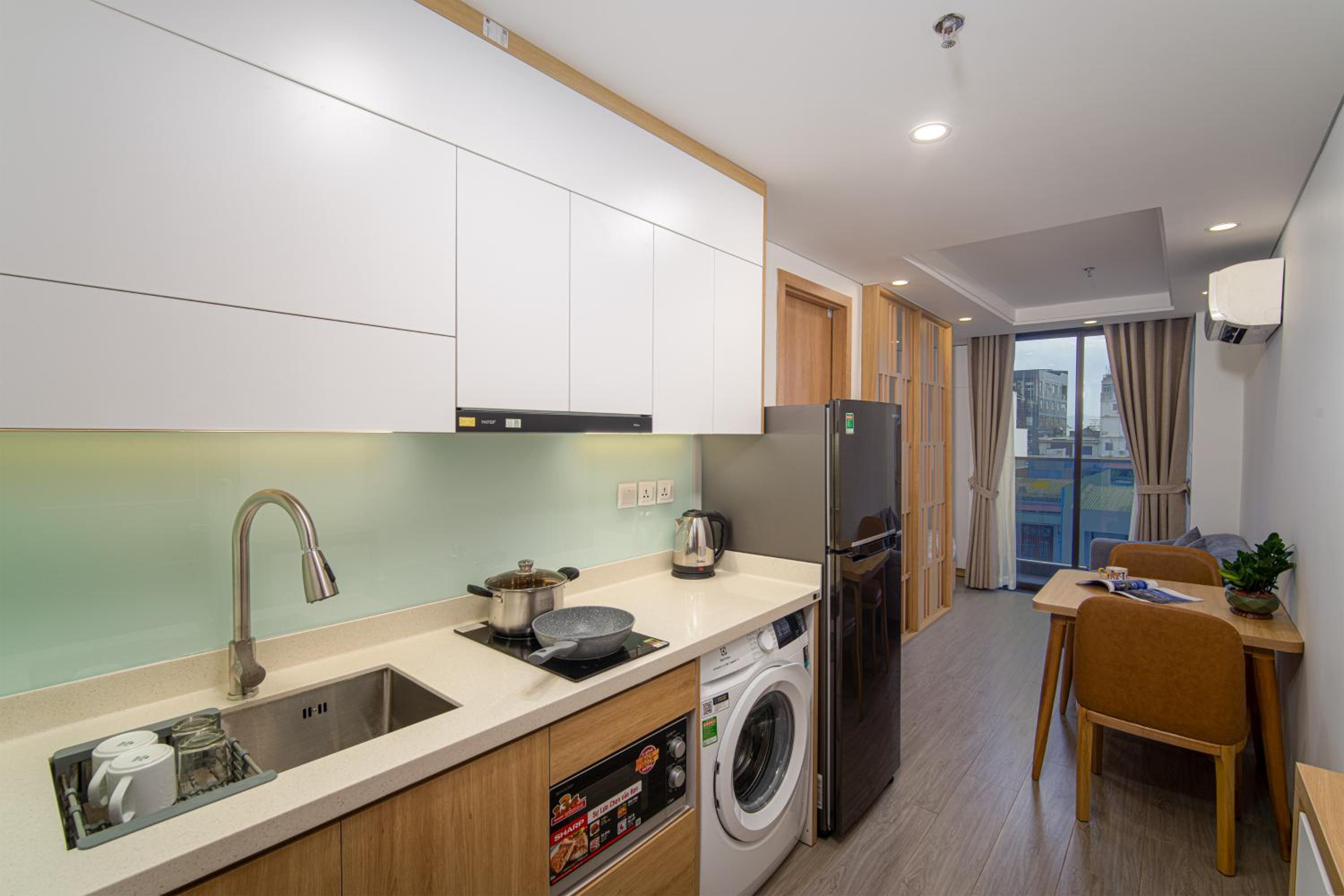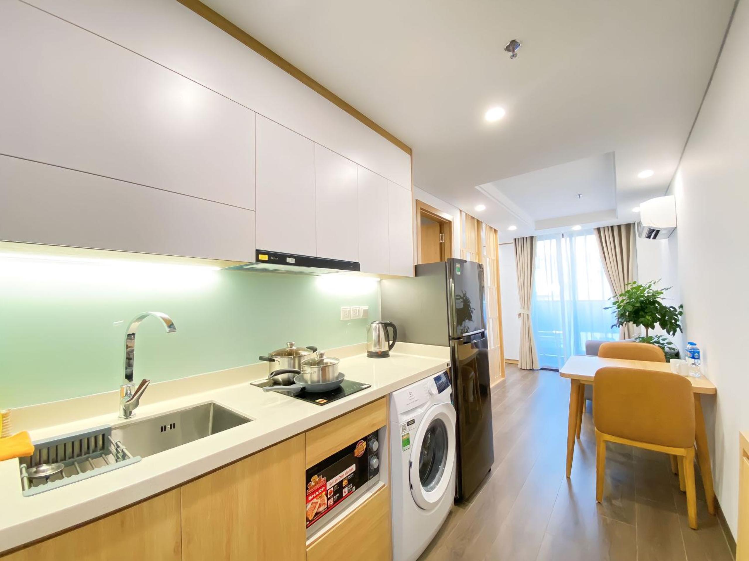 Very clean, modern and spacious room with a reasonably well equipped kitchen. A short walk from the dragon bridge.