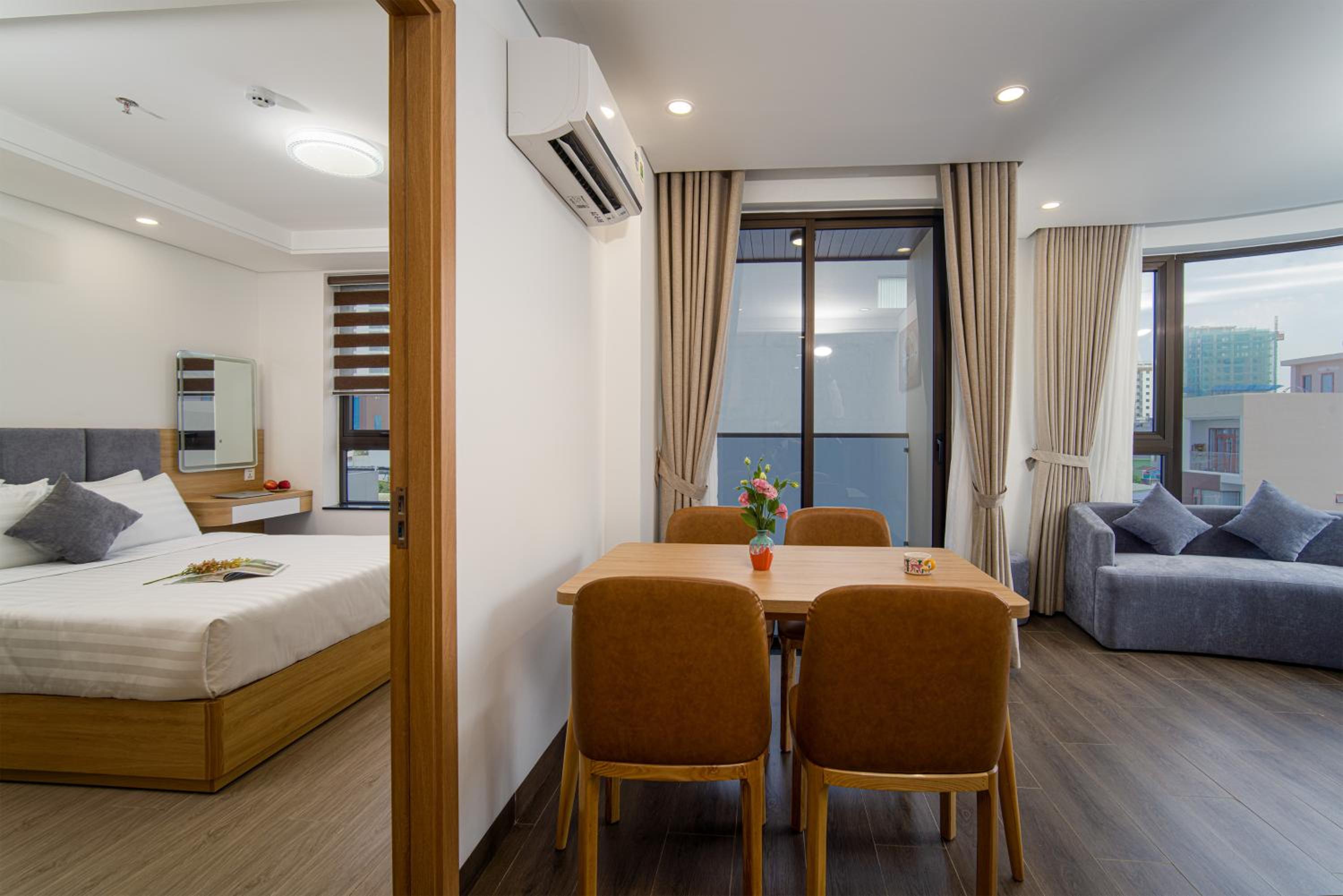 Home Away from Home: Our spacious units feature balconies, well-equipped kitchens, and cozy living areas for a comfortable stay.
