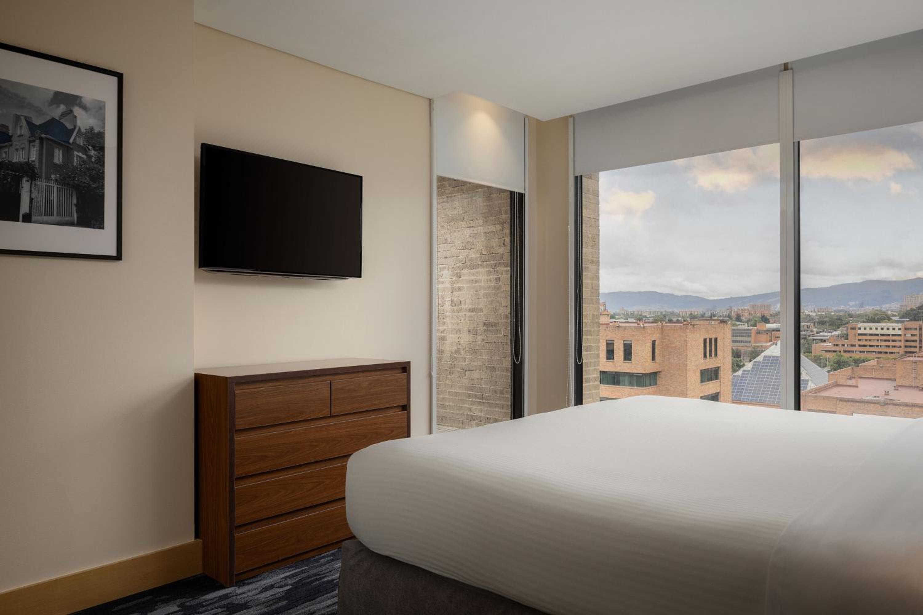 Featuring a fitness centre, a sports bar, and a restaurant, Fairfield by Marriott Bogota Embajada offers rooms with free Wi-Fi and air conditioning. The fully carpeted rooms with large windows provide a bright and comfortable stay, complemented by cable TV for entertainment.