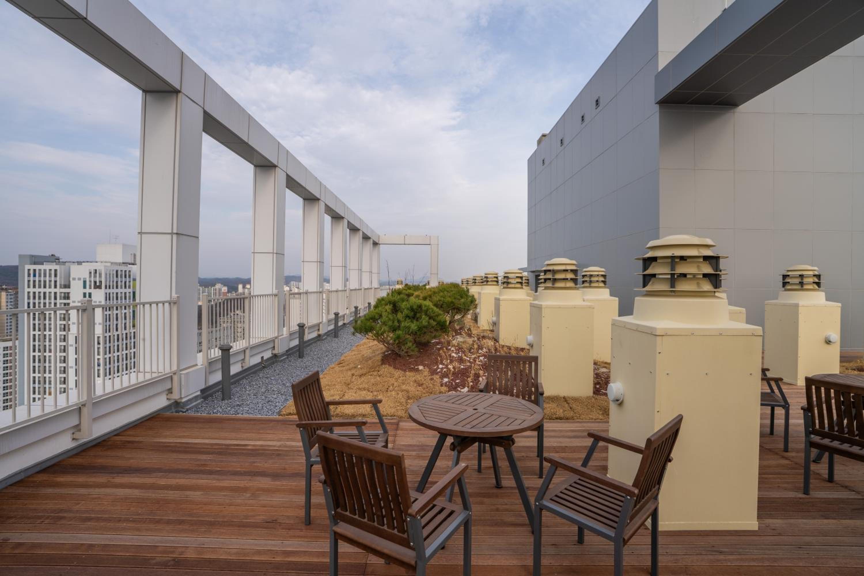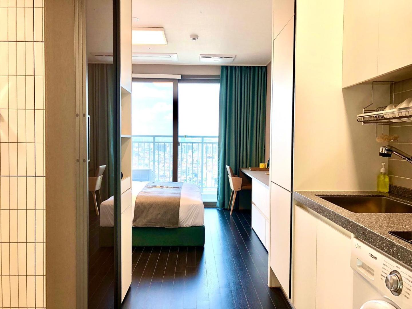 New building. Neat design. Lots of space for storage, so I guess comfortable for a very long stay. Heated floors. Kitchenette, fridge, freezer and washing machine, perfect for solo traveller. Very good bedding. Not noisy. Great value for price. Good top view. Staff spoke ok English and was super friendly, so kudos! My aircon disfuncioned and I was quickly moved to a new room.
