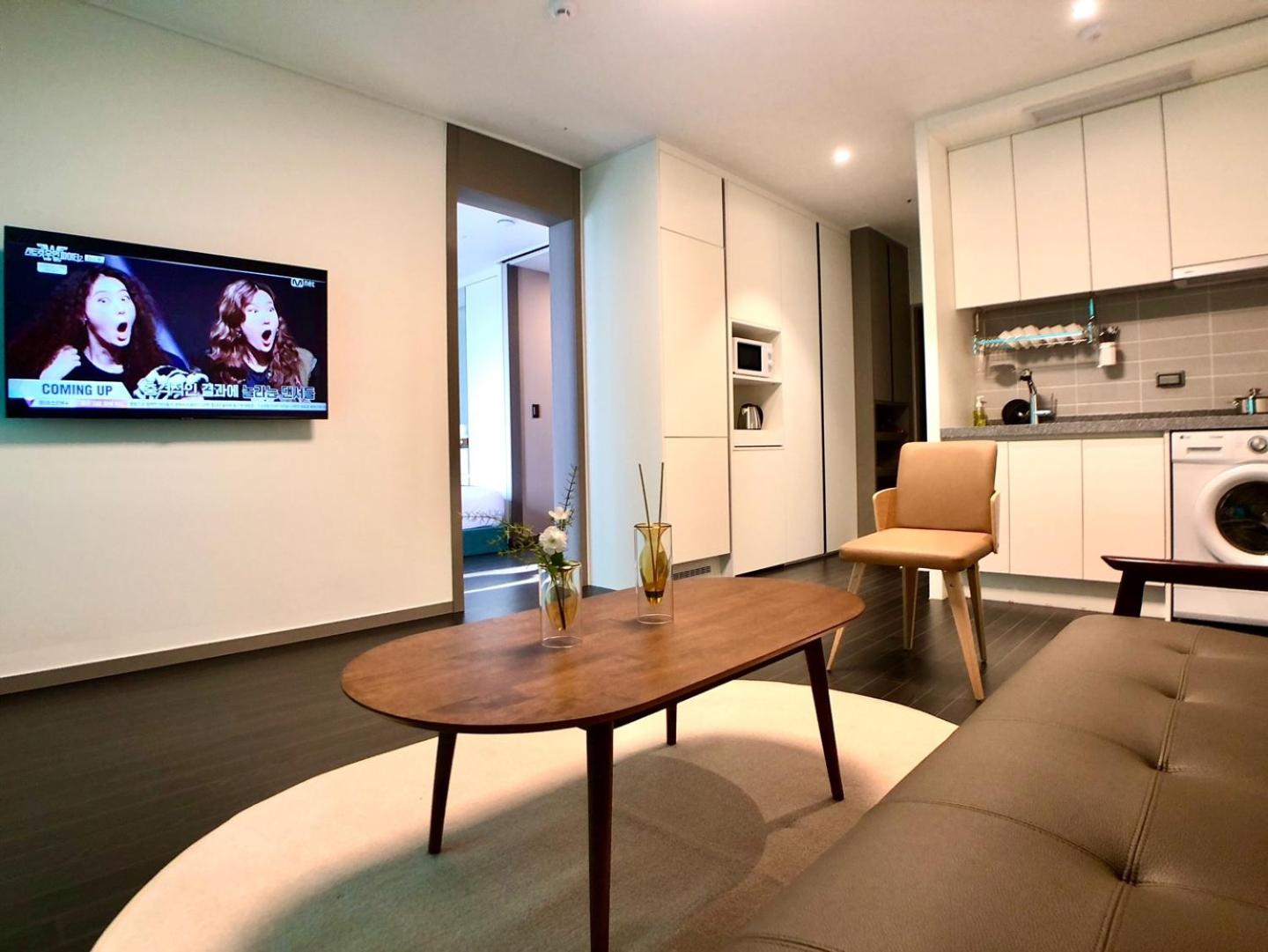 Comfortable and modern, yet cozy room with everything you could possibly need including a washing machine and a stove. The stuff was very nice and accomodating. The room has a huge window and a balcony and since it was a cherry blossom season, the view was really nice. You wont find anything better within this price range in this location. You can watch both Netflix and Youtube on TV.
