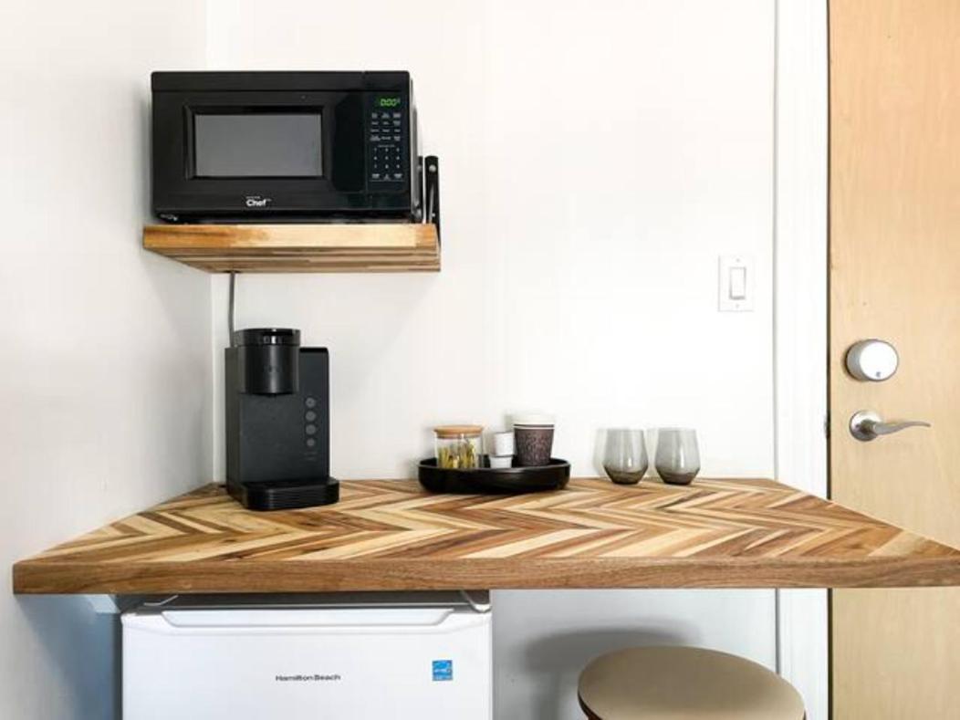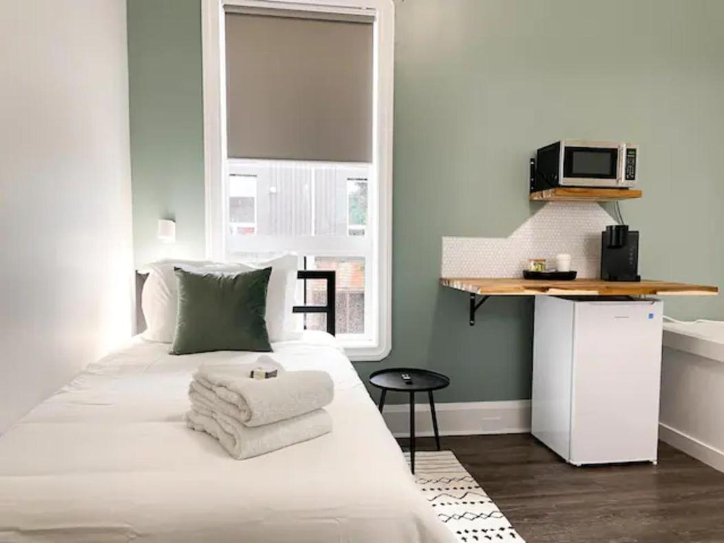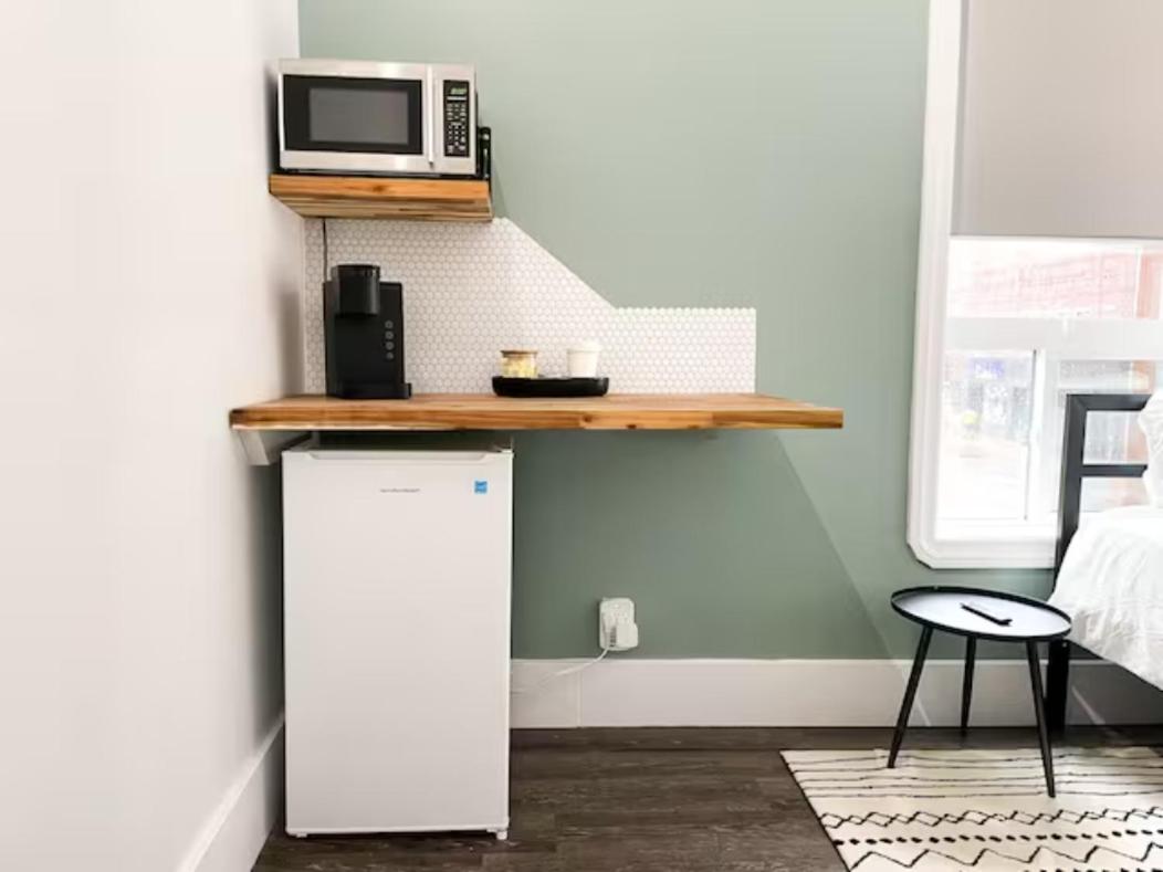 Cute minimalist decor. Comfy bed and pillow. Place was pretty clean just the odd mark on the wall. The floor boards come up and move. Had heater and air condition and microwave and Keurig. Wish there was a Humidifier it was dry in there. Overall the room was a decent stay. The surrounding area had me on edge tho. Downtown, next to casino. You can hear people partying or yelling or sirens and honking. One night there was some scary banging on the building like someone really wanted in; I felt secure in the room though. Homeless and intoxicated people outside made me nervous. Some ask for money. Housekeeping girl was so sweet. Had to park a block away in parkade $5 everytime you leave the parkade but you have that no matter what downtown