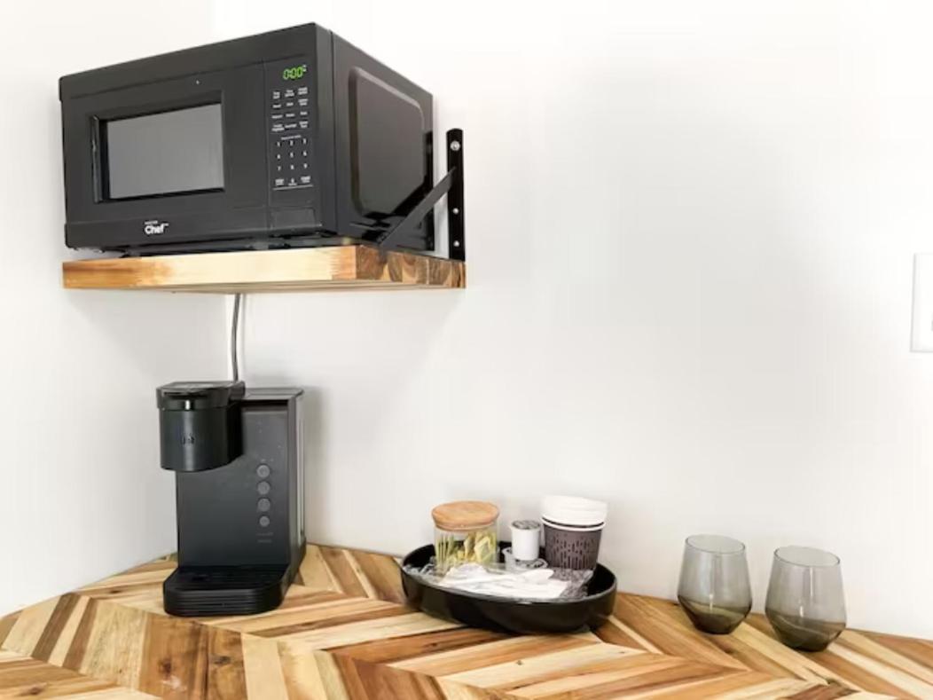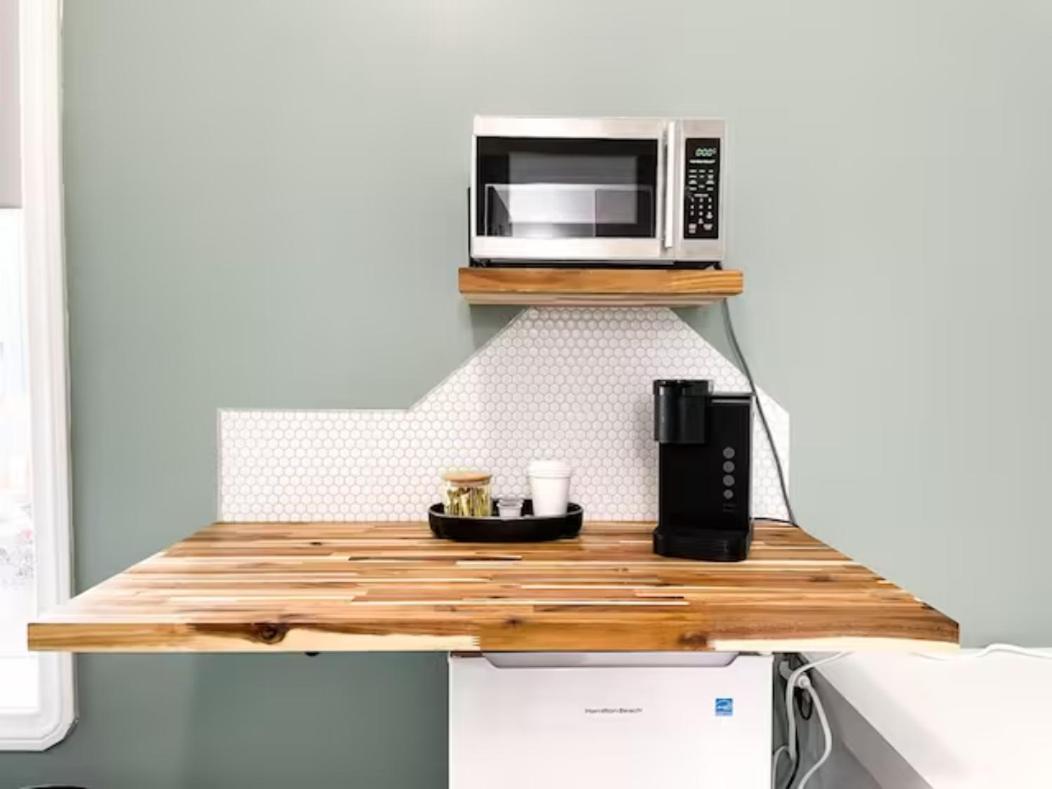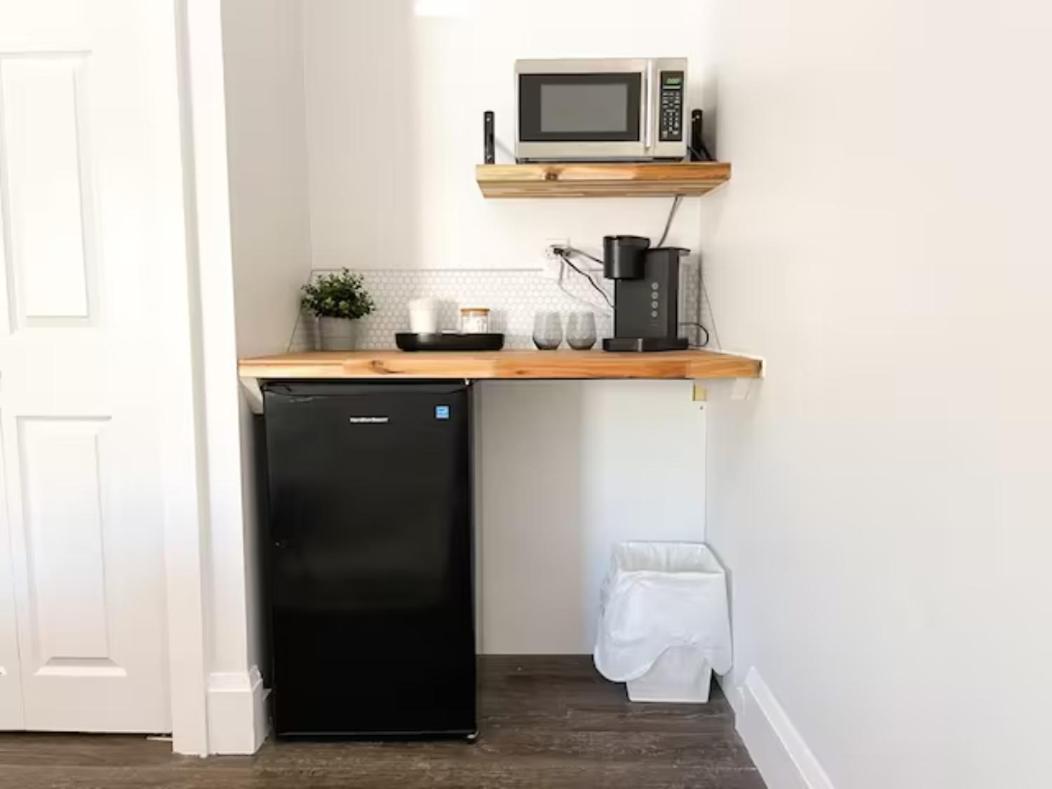 Clean room with microwave, refrigerator, very comfortable king bed
