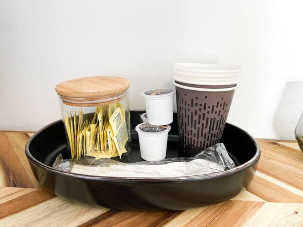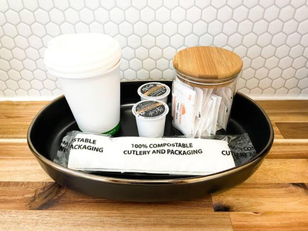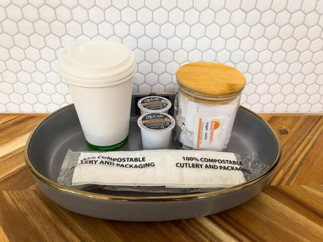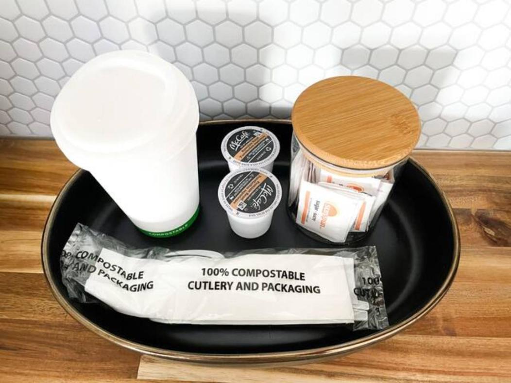 It would have been nice to have a blue recycling box in the room.