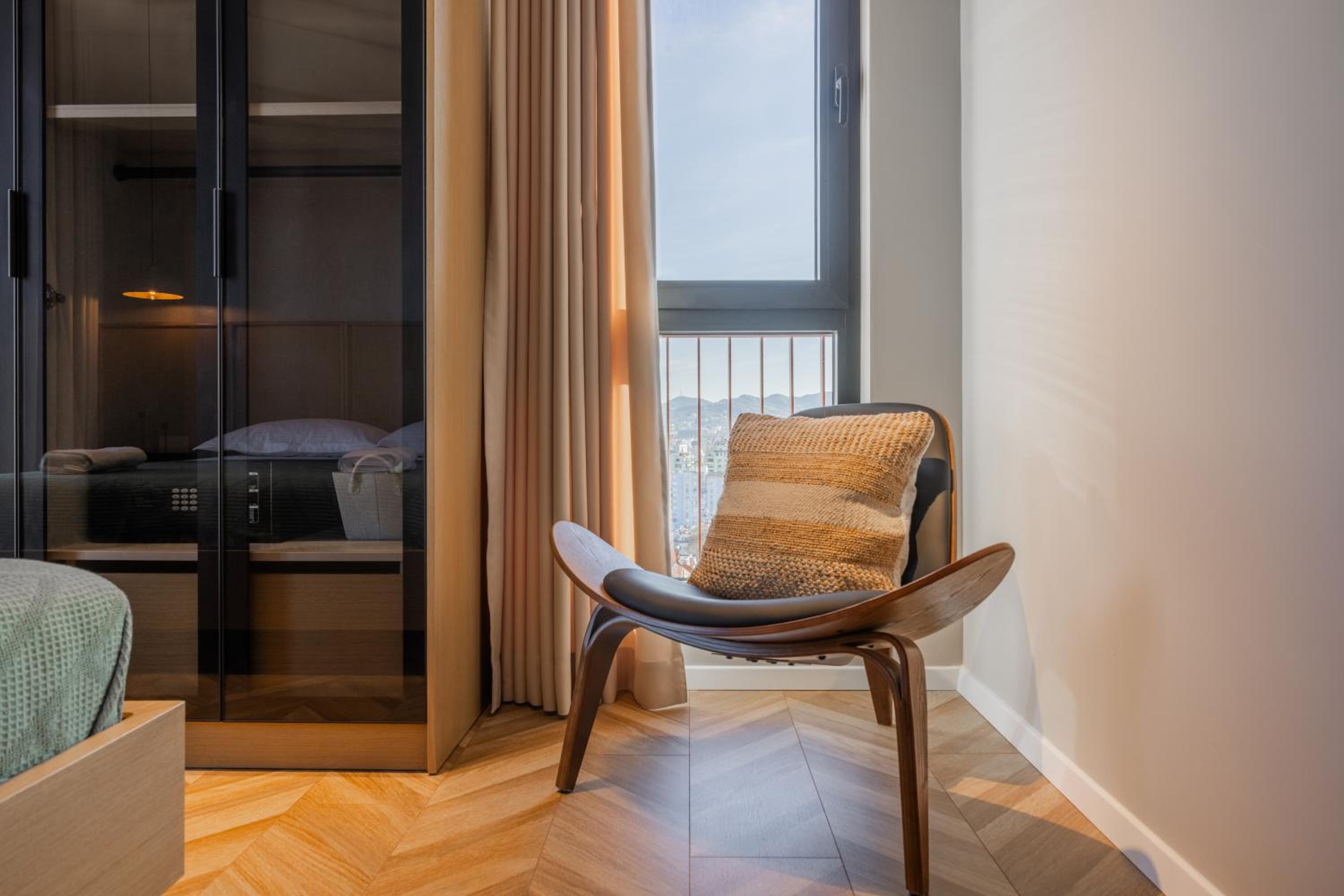 The room was spacious and was on the top floor. It was a good room with a living room with balcony and also had a bedroom and bathroom and a kitchen. The view from the room was wonderful for a traveller. The location was good enough as it's in the city centre. We are happy only for the view of the beautiful mountains and the city as the location was good enough.
