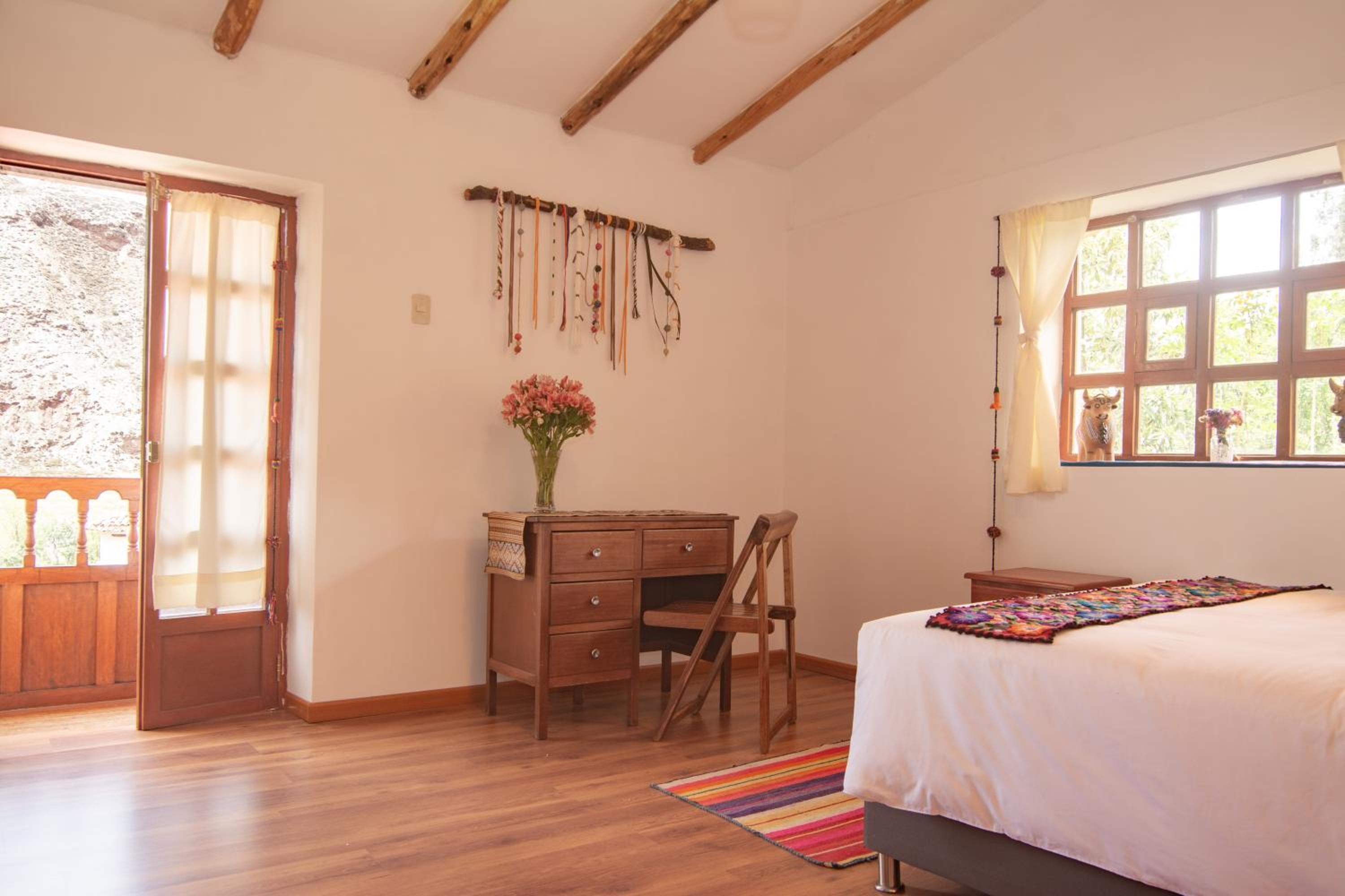 Location: The lodge sits near the river, surrounded by lush greenery, wildflowers, and hidden spots to explore along the riverbanks and train tracks. A small creek runs nearby too. We specifically wanted to be outside the more touristy and gentrified areas of Pisac and Ollantaytambo while still having easy access to both for day trips. Urubamba offers a more local vibe but still has great restaurants, a market, and cute cafés. It also has some lesser-known ruins and hiking trails. Collectivos to Urubamba or Ollantaytambo cost just 1.50 soles, and a ride to Pisac is 5 soles.