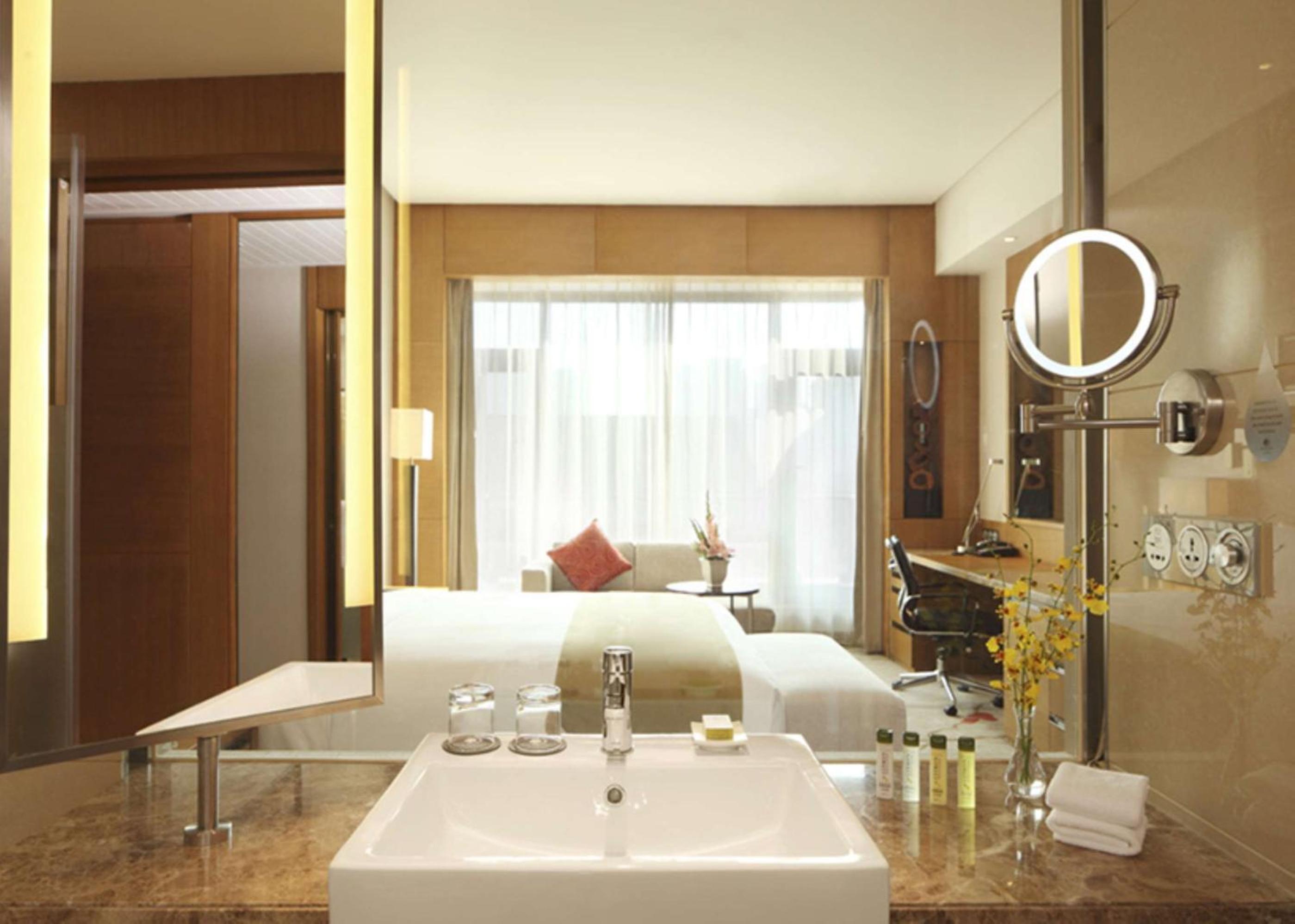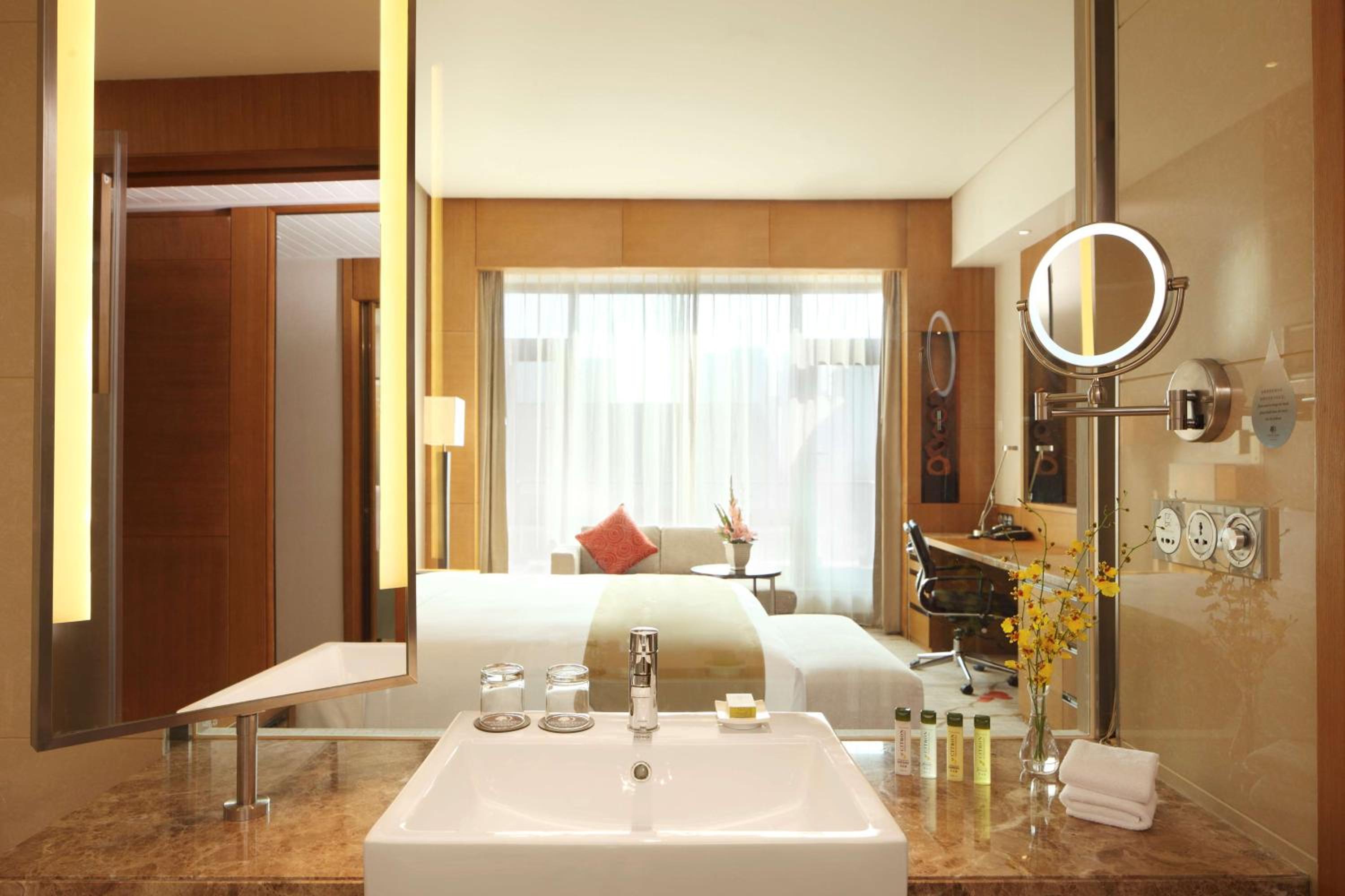 The stylish rooms and suites at Doubletree by Hilton Jiaxing offer modern amenities including work areas, WiFi, and LCD TVs. The en suite bathrooms are equipped with free toiletries, a bathtub, and shower facilities, ensuring a comfortable stay for guests.