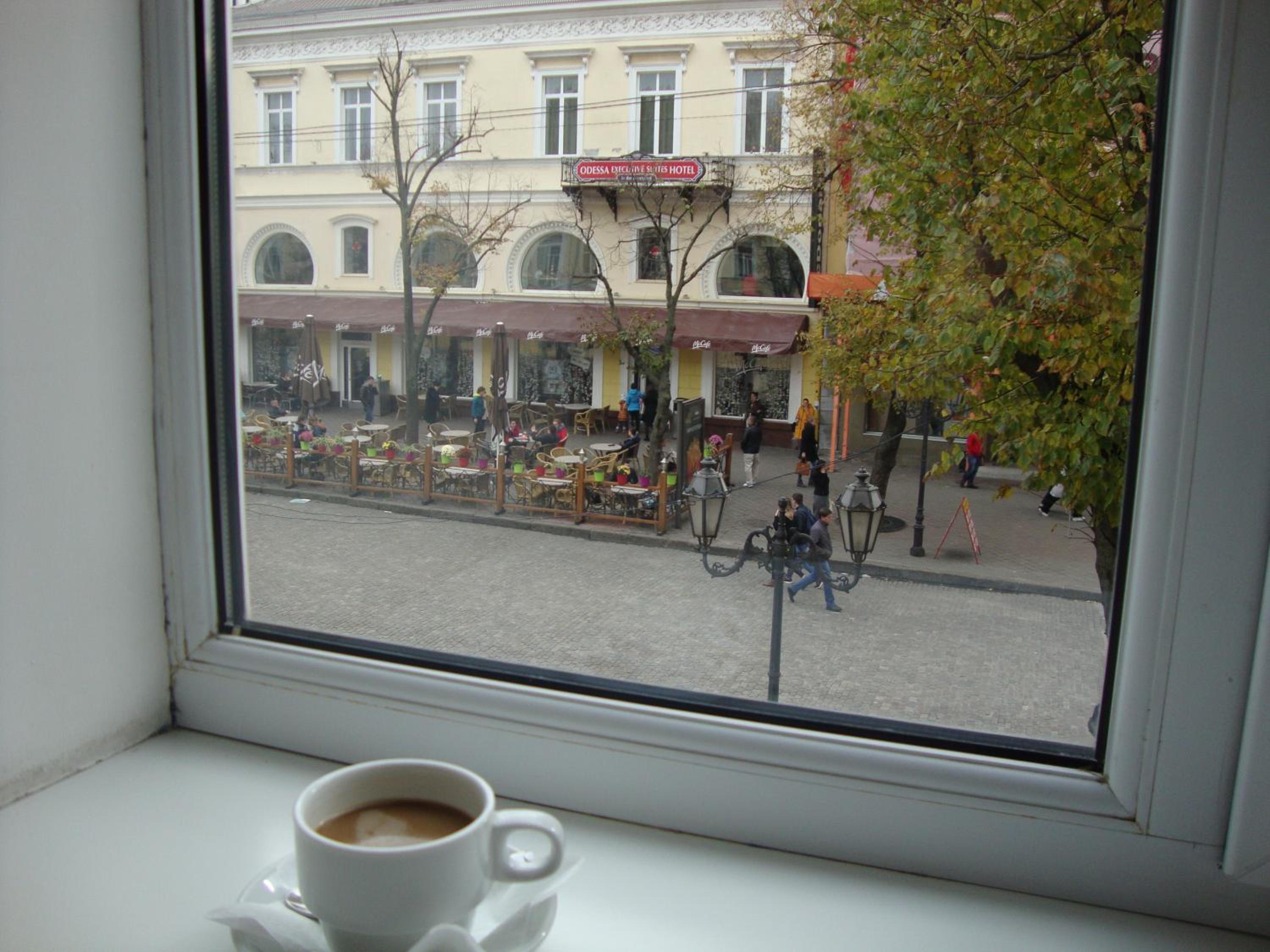 Все сподобалось, привітний персонал. Затишний дворик, по теплій погоді можна почілити. Вид з вікна на Дерибасівську. В коментах писали про шум, але ми не відчули його, після 22-23 повна тиша.