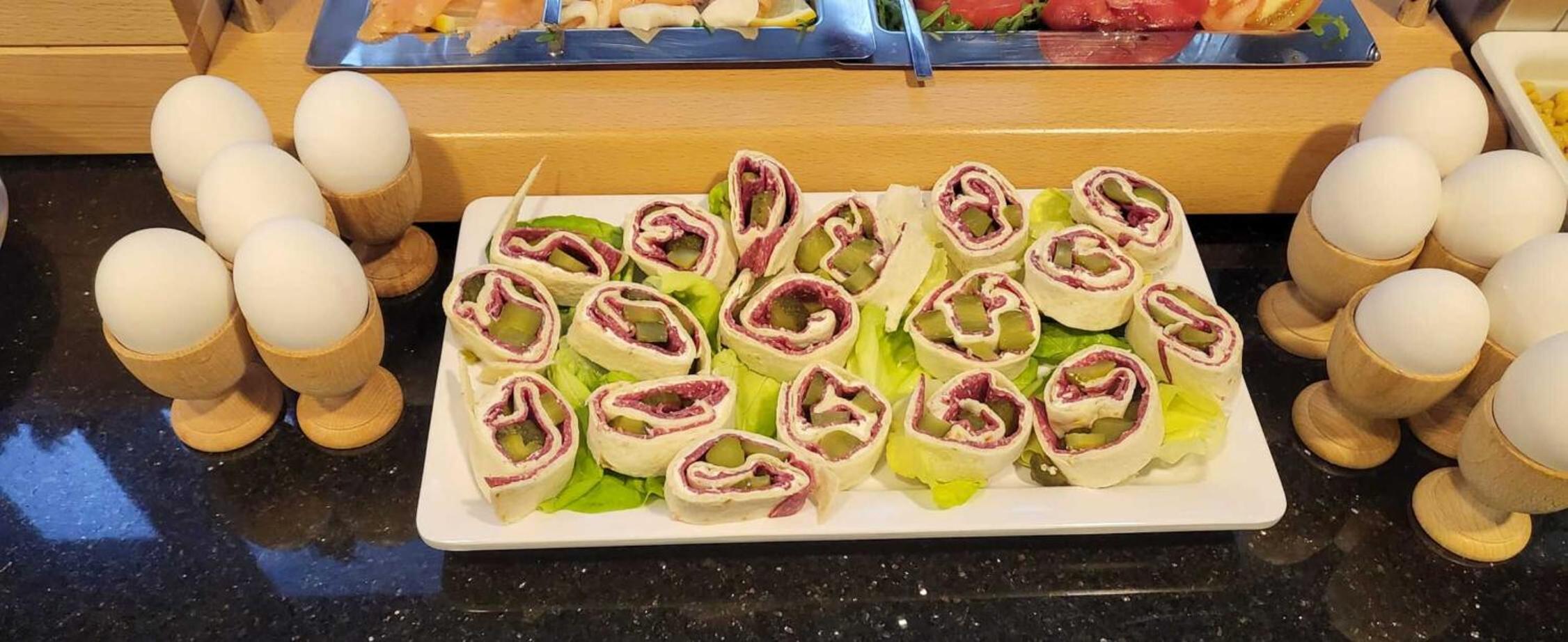 Na śniadaniu były gorąco i duszno, a sala była tylko w połowie pełna. Można by lekko uchylić okno albo włączać klimatyzację.