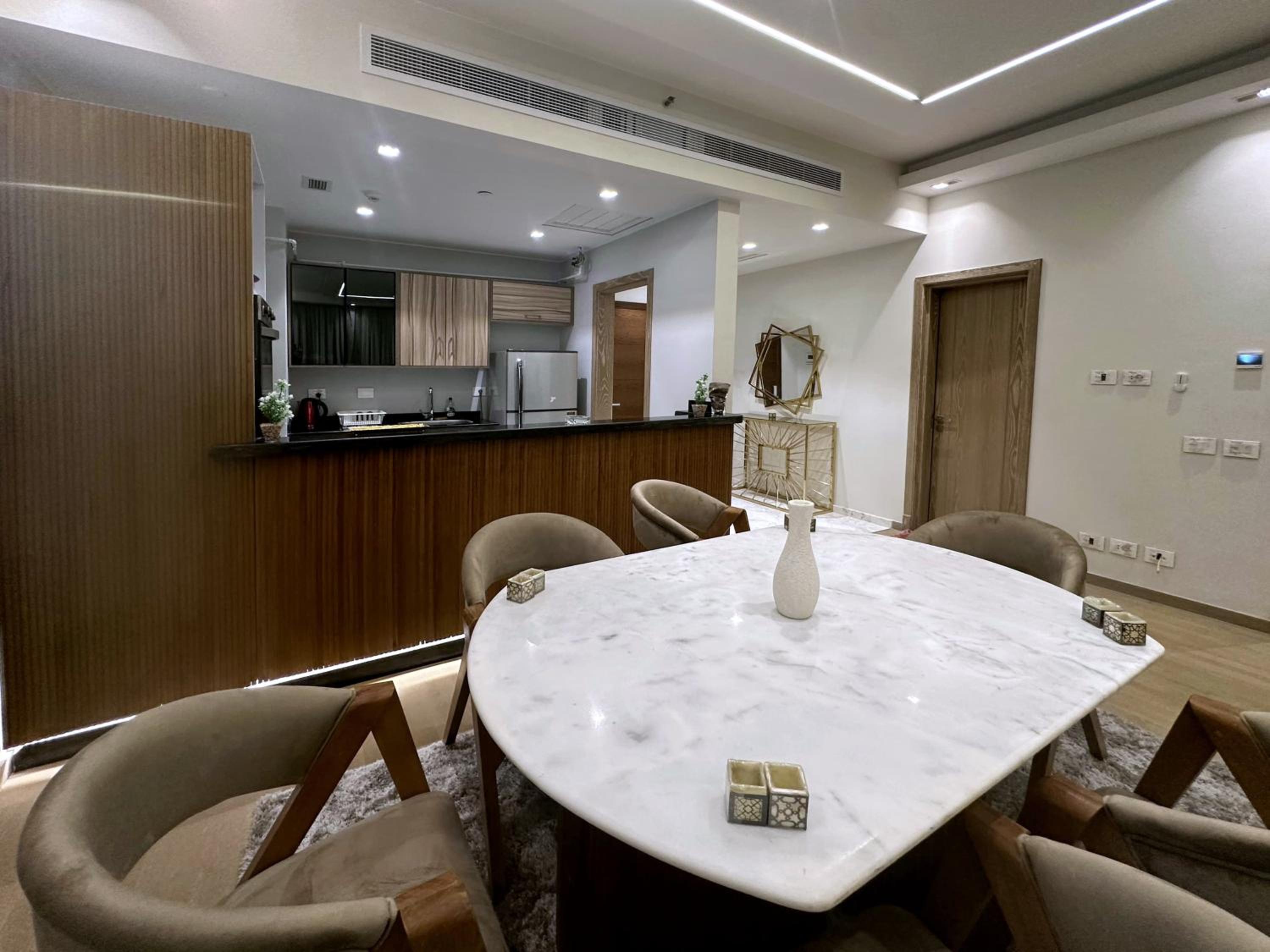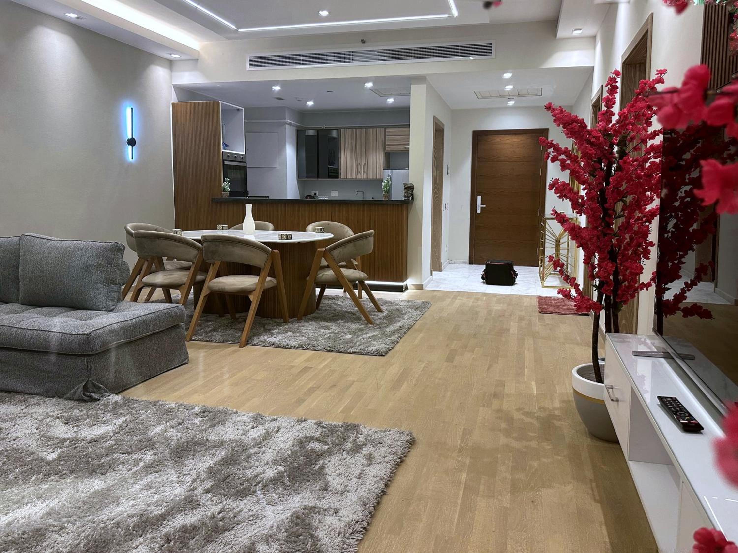 الاقامة في هذه الشقة ممتازة و مناسبة للعائلات و قريبة جدا لمجمع مول العرب