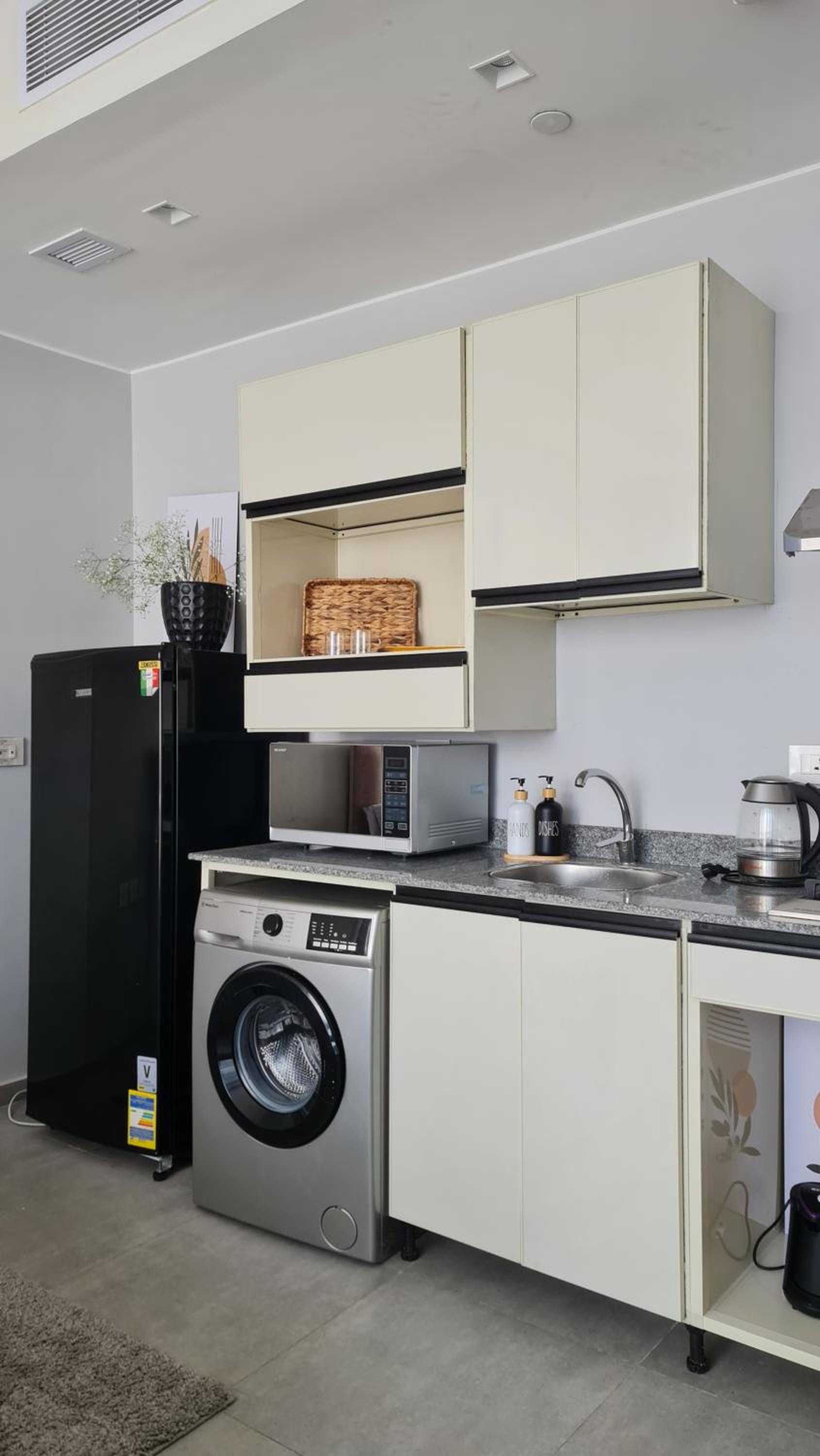 المياه كانت مقطوعه بلشقه وبلحمام فقط الماء الساخن موجود ولا تستطيع استخدامه من حرارته...ومياه الشطاف مقطوعه ومياه السيفون...لاكثرمن 18ساعه قمت بلتواصل مع الشخص المسؤل ولم يأتي احد لحل المشكله...لن اكرر الزياره ابدا ...من اسؤالتجارب