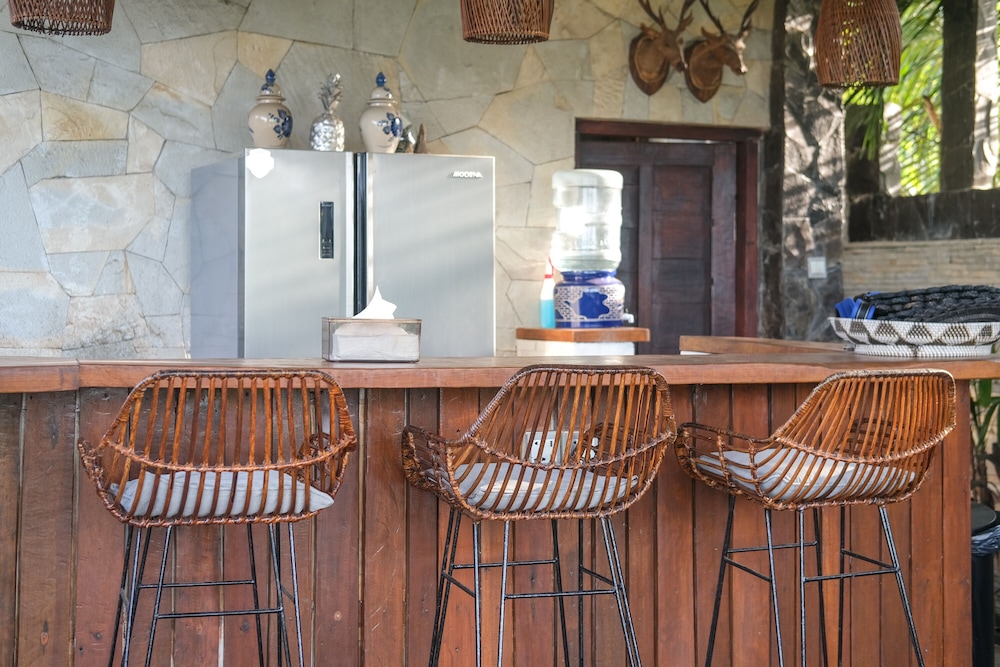 Enjoy a refreshing dip in the outdoor pool, admire the scenic views from the terrace, and stroll through the lush garden at Ocean Bay Boutique Bungalows.