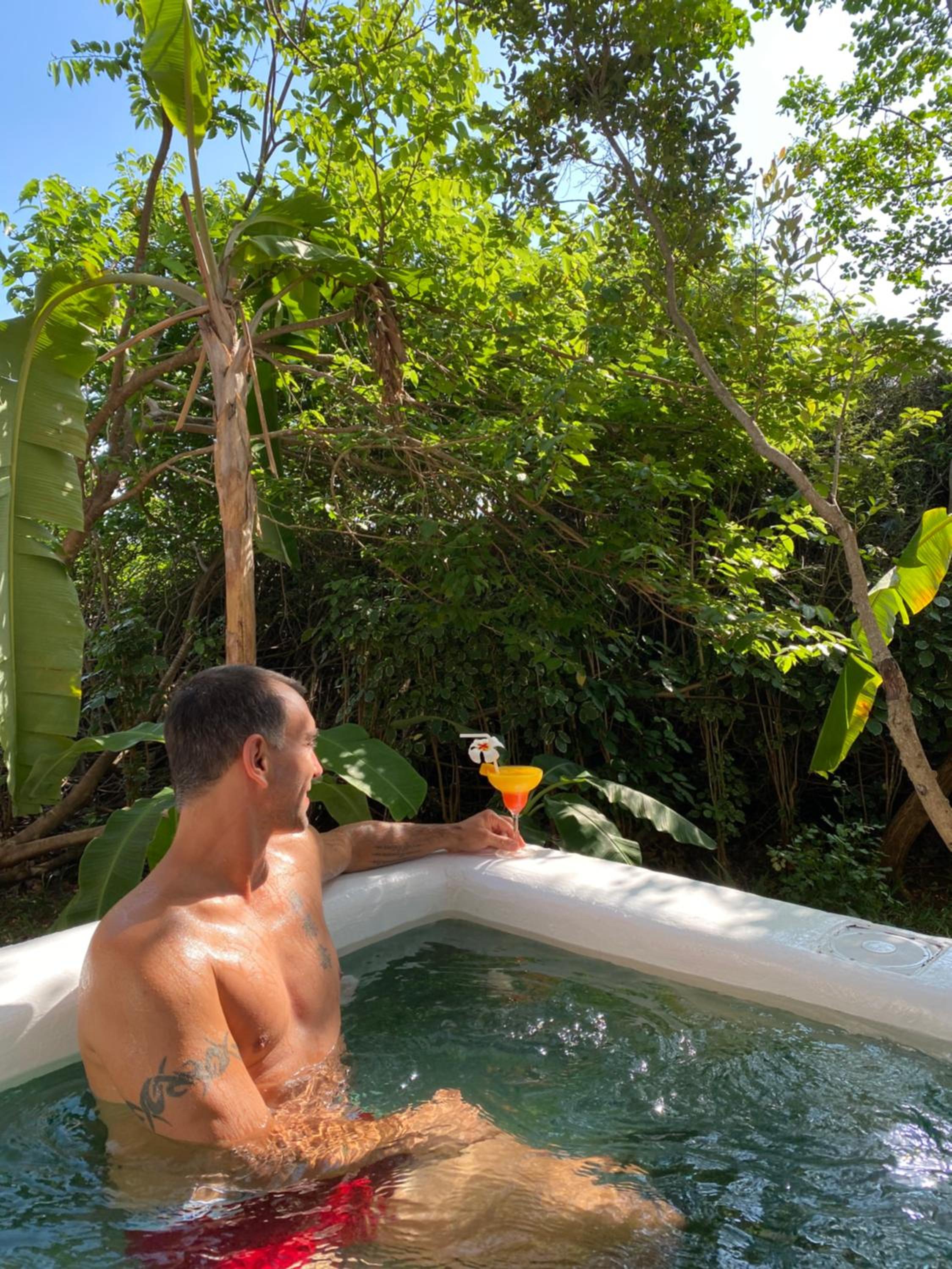 Our bungalow was very clean and spacious, with an outdoor bathroom, a private garden featuring a jacuzzi (cold water only) and 2 sunbeds.