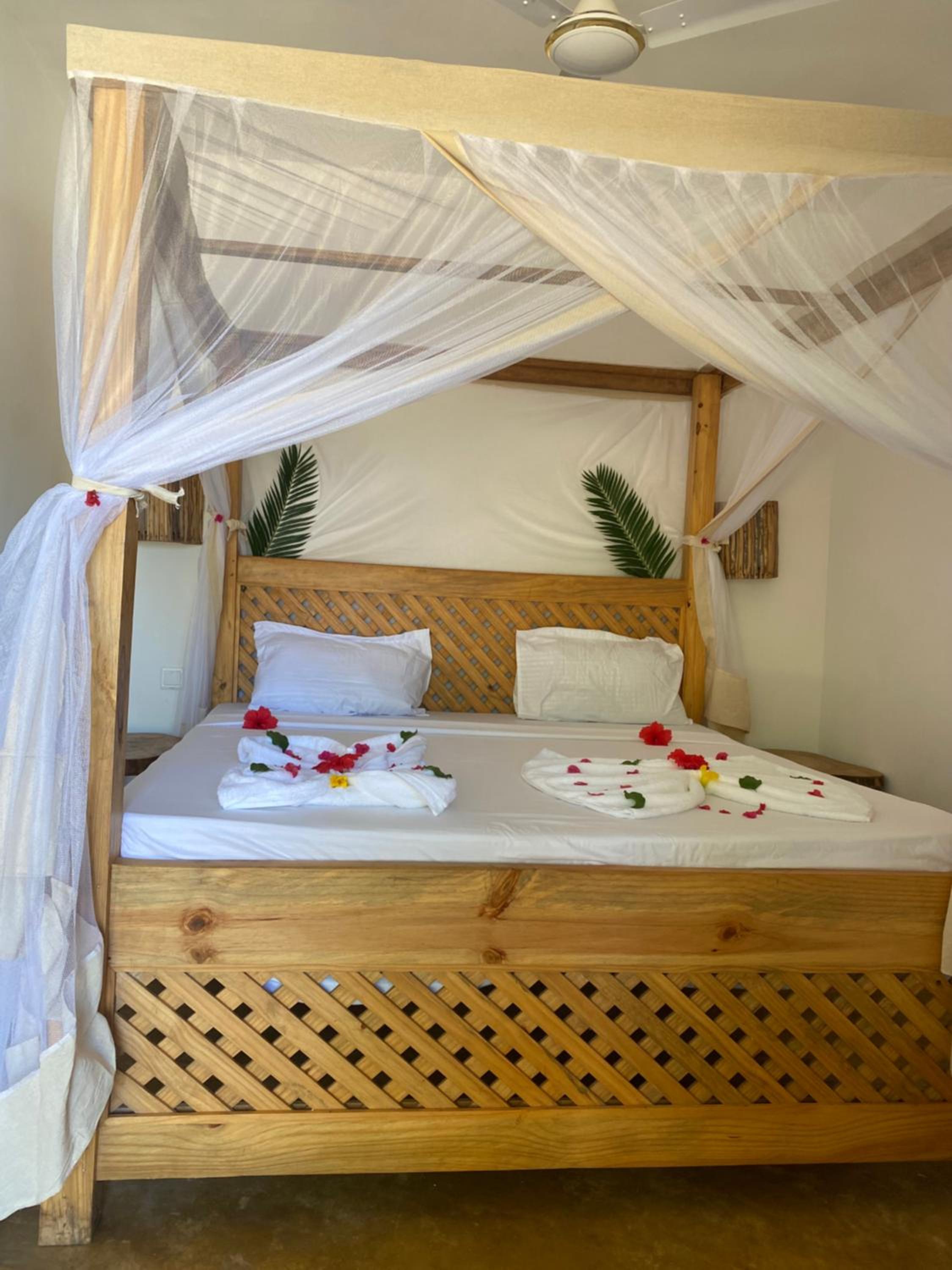 Toto ubytovanie zaujímavé tým ze reštaurácia je na strome baobab. Jedlo bolo výborné, chutné hlavne carbonara.🥰 Prostredie je kľudné na oddych a obklopené zeleňou. Personál je milý a pohotový. Masajovia strážia hotel tak sa cítite bezpečné. Posteľ bola krásne vyzdobená čo bolo milé privítanie. Prijemne posedenie v bare, pohodlné pohovky. Maju tam výbornú maserku, ktorá úžasné odborné masíruje. Určite si doprajte masáž nebudete ľutovať. Večer vám pripravia izbu na spánok a striedajú proti komárom, to sa mi veľmi páčilo. Izba je pohodlná, priestranná a čistá. Určite hotel odporúčam.🥰