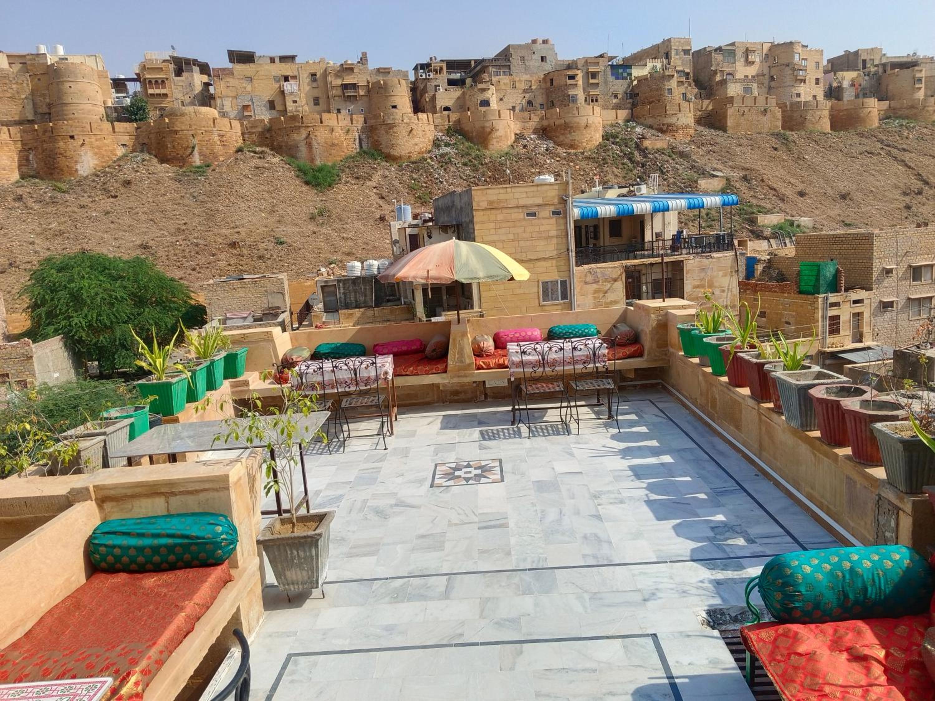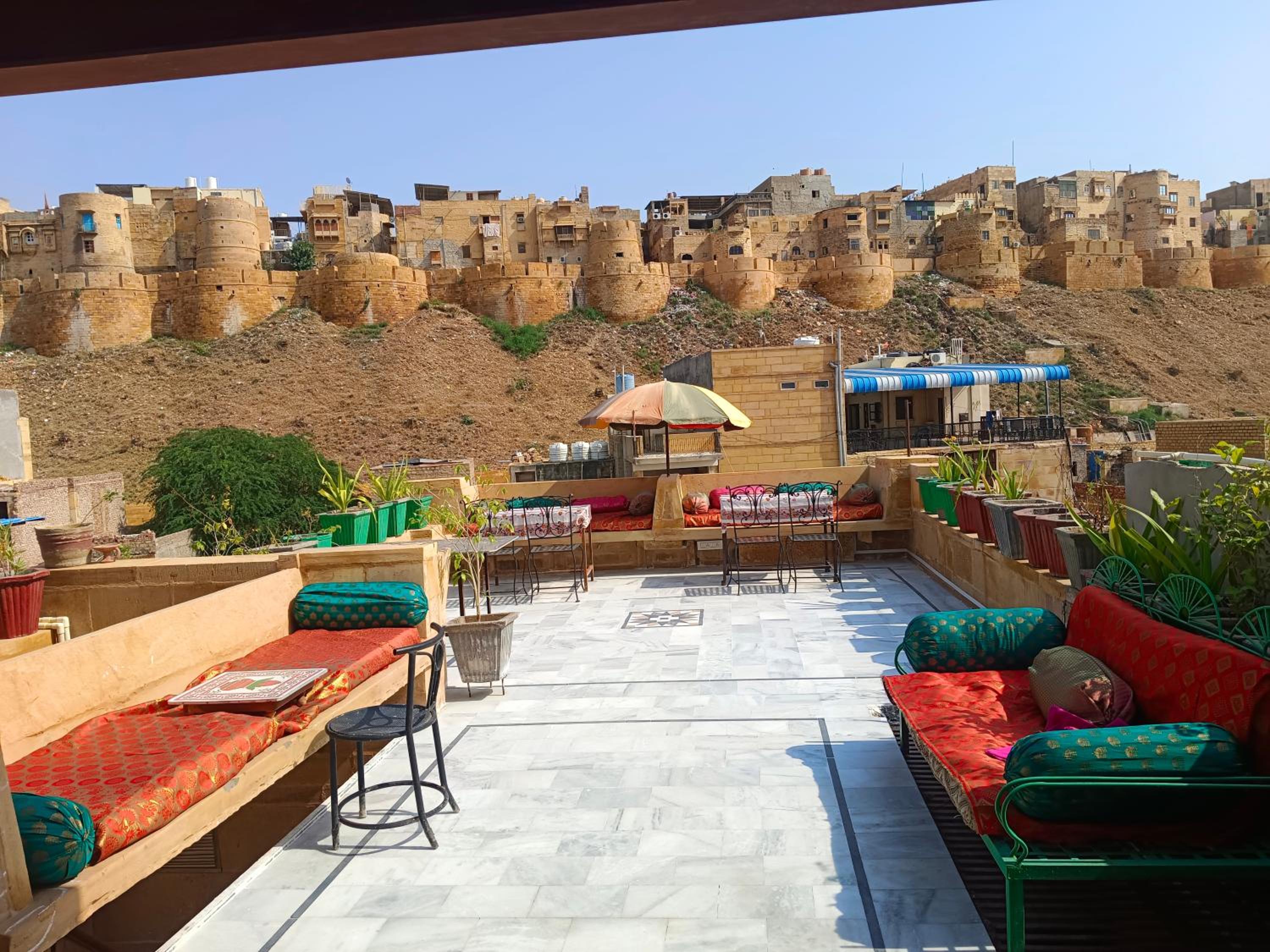 Nous avons passé un excellent séjour: l'hôtel est très bien situé, à quelques minutes à pied de la forteresse , la vue depuis le restaurant roof top est imprenable .Personnel aux petits soins et patron très aidant : il s'est occupé de nous reserver notre transport jusqu'à Jodhpur en voiture , il a des contacts sérieux pour les déplacements dans tout le rajasthan, c'est très pratique, ainsi en un whasapp depuis jodhpur il nous a réservé notre trajet pour Udaipur via Ranakpur.
