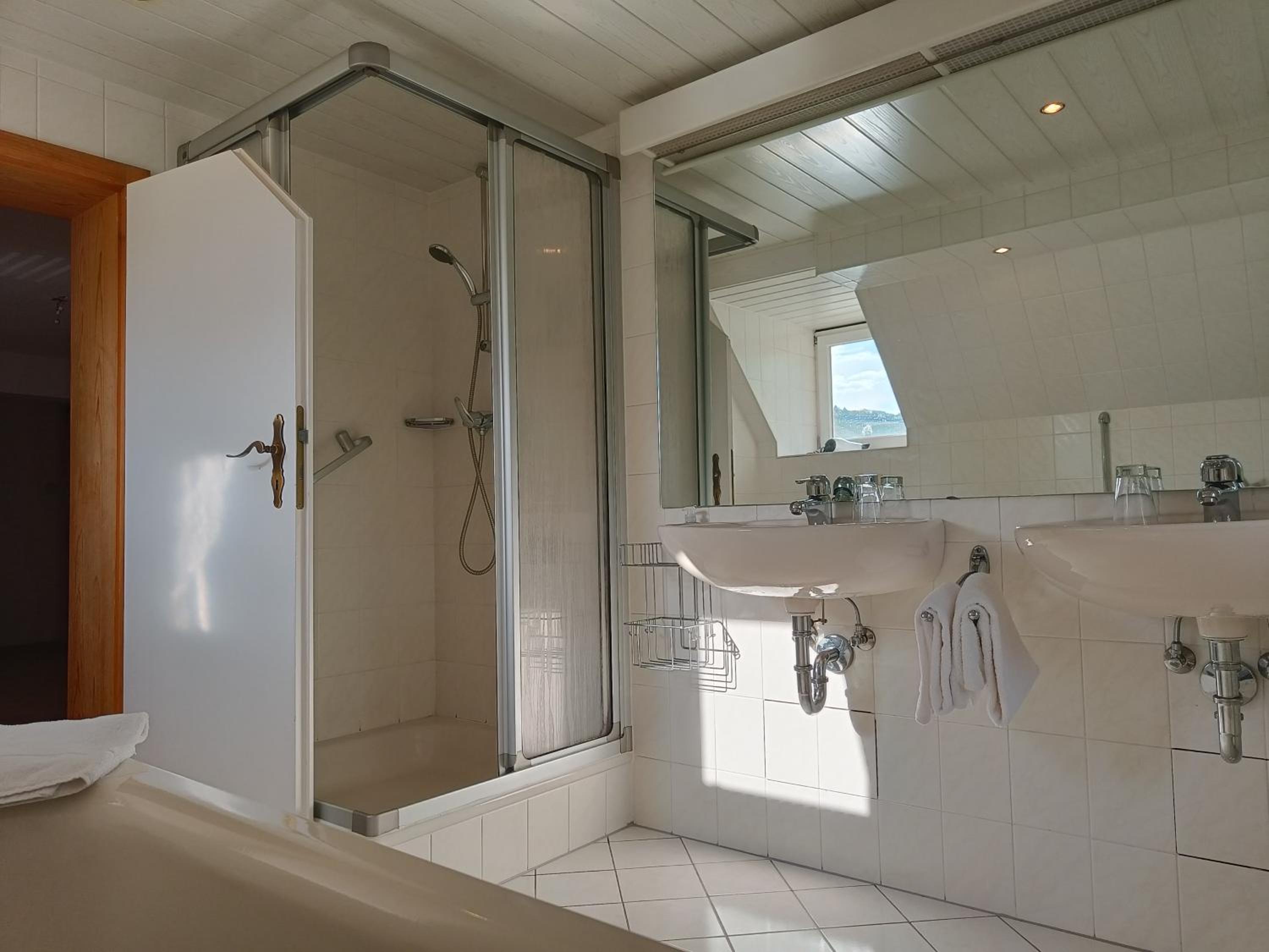 De kamer was klein oud en de douchekop hing slap houder was defect,krappe douche en de afvoer van het water was slecht .