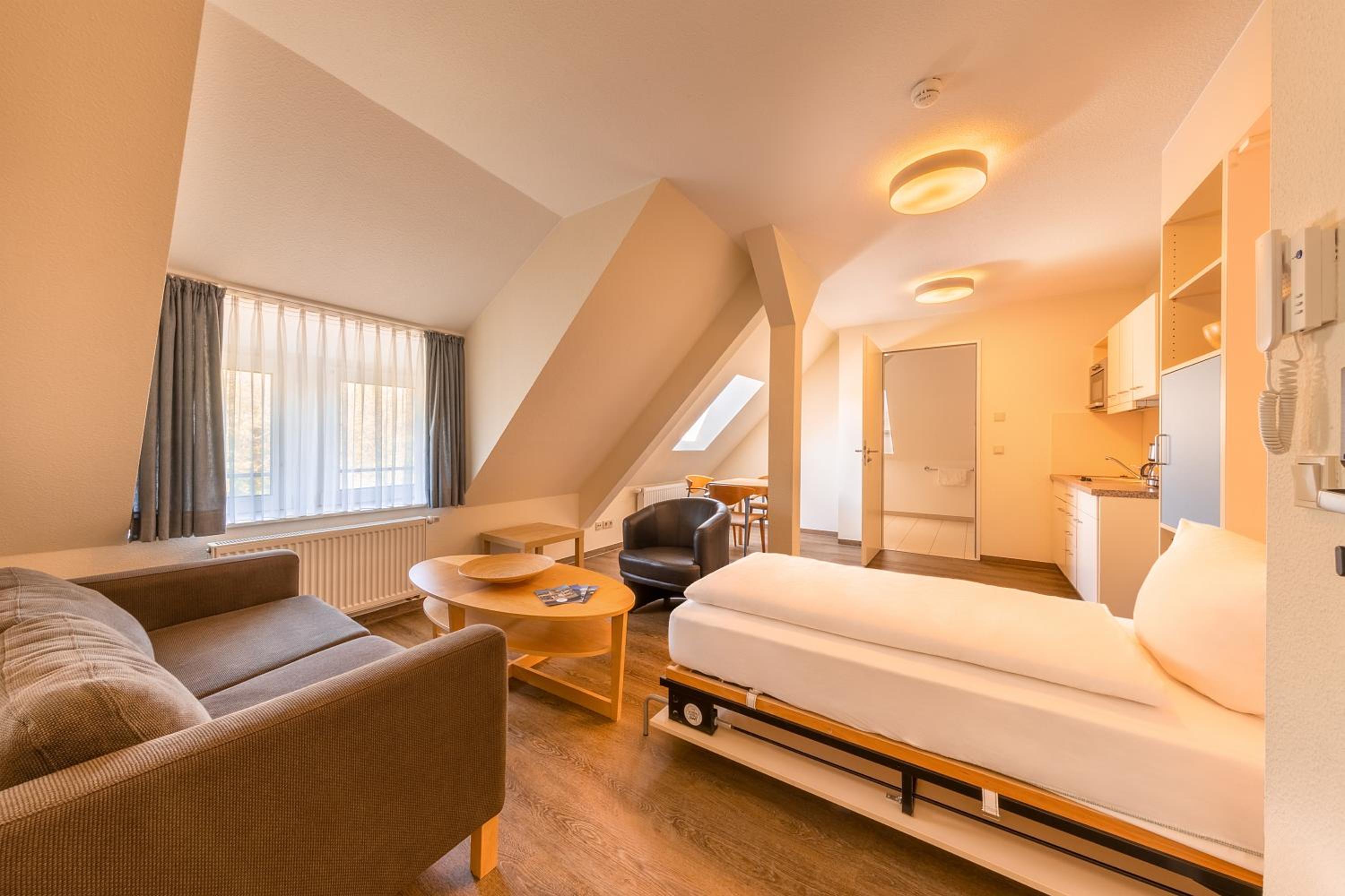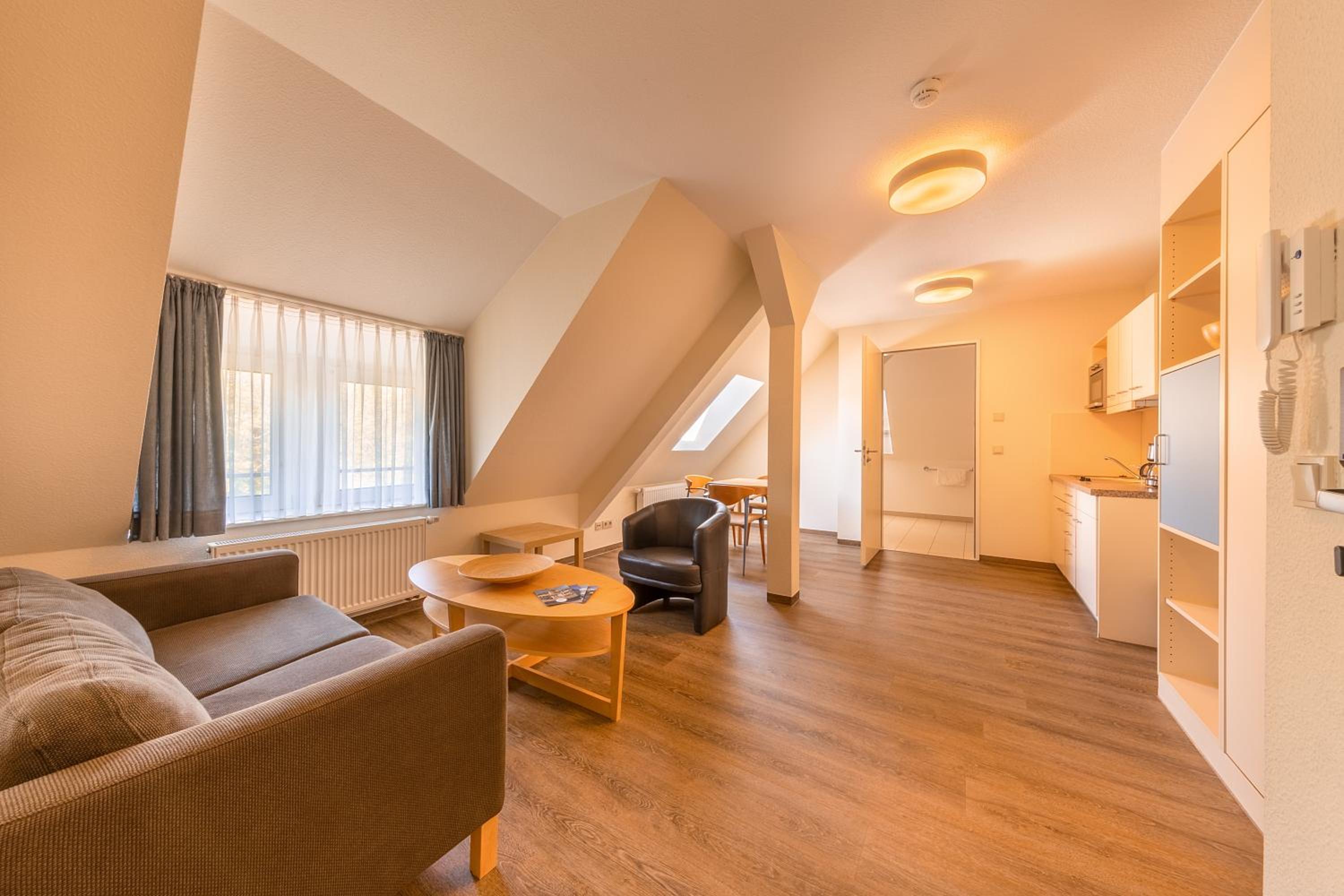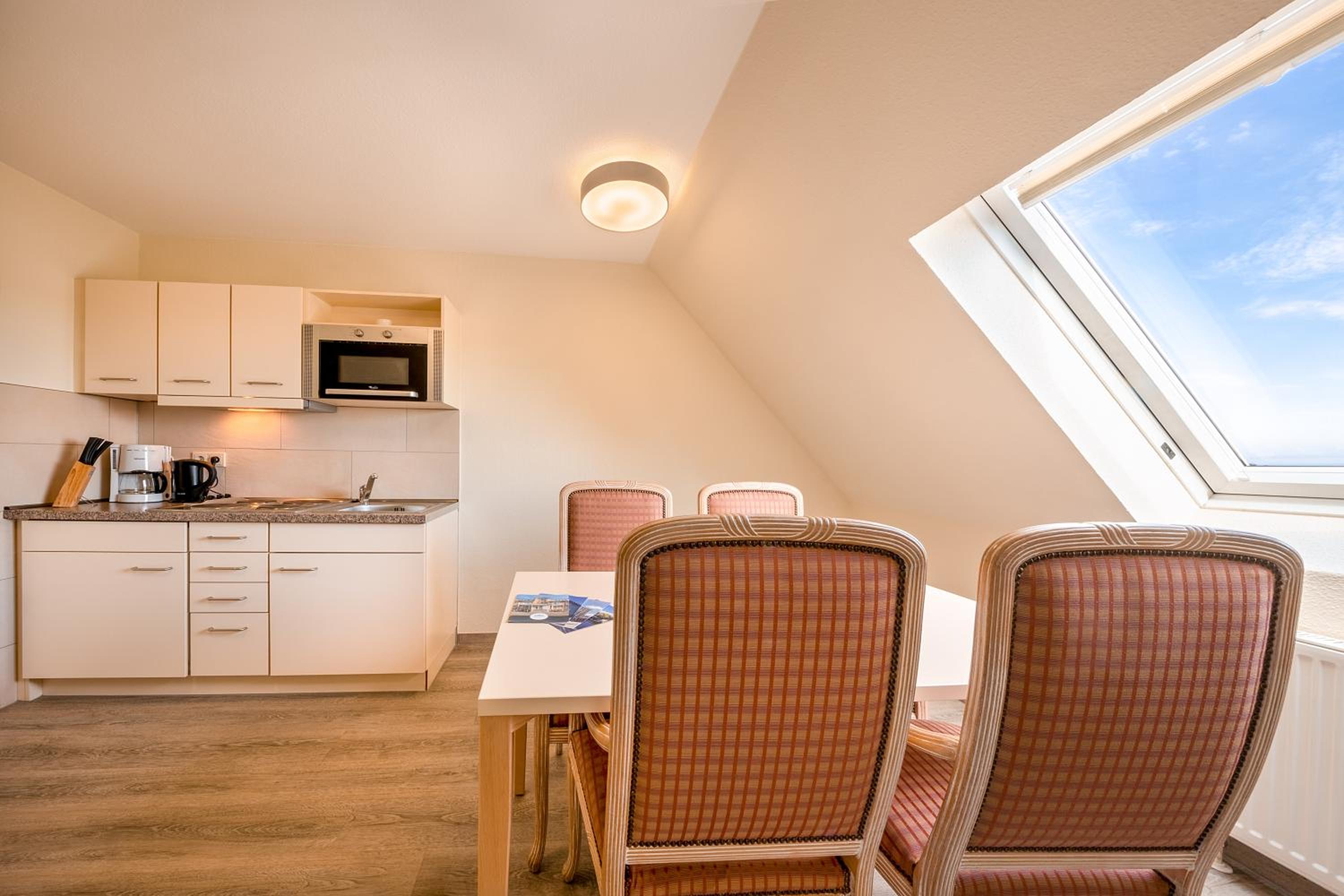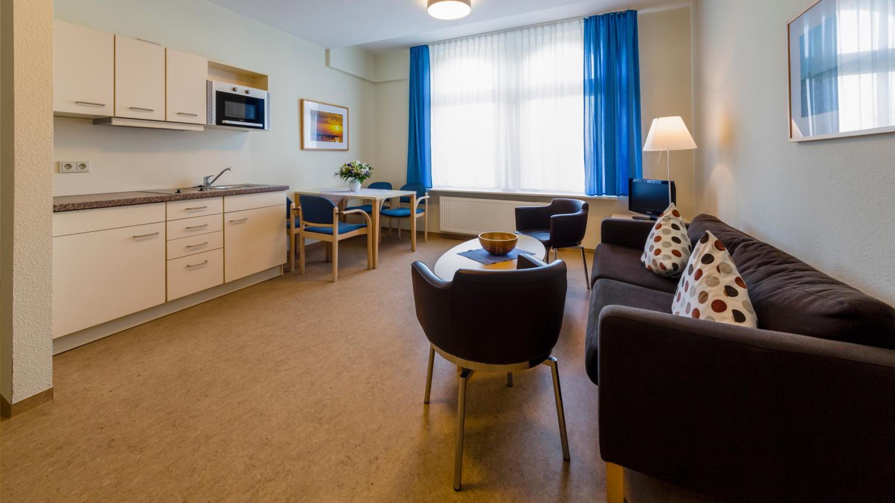 Michels Haus Wilhelm-Augusta in Norderney offers garden views and family rooms for a comfortable stay. Enjoy the convenience of a fully equipped kitchen, including a microwave, fridge, and stovetop.
