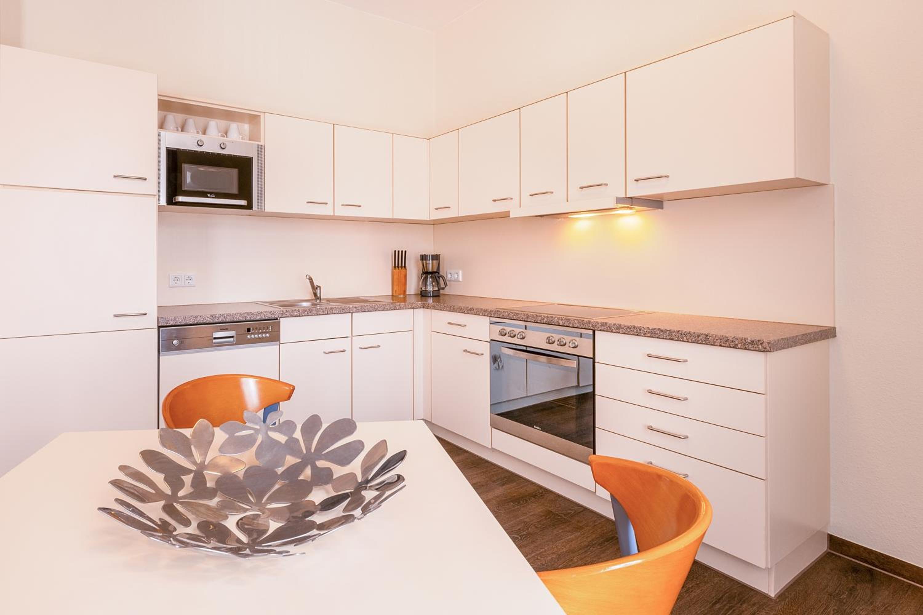 Die Küche war zwar mit Spülmaschine ausgestattet hatte aber nur 3 kleine Löffel und 4 Messer so das man doch spülen musste bei drei Personen etwas wenig