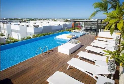 Enjoy stunning city views while lounging by the rooftop pool or stay fit in the on-site fitness centre during your stay at Condominios Meneses The City.