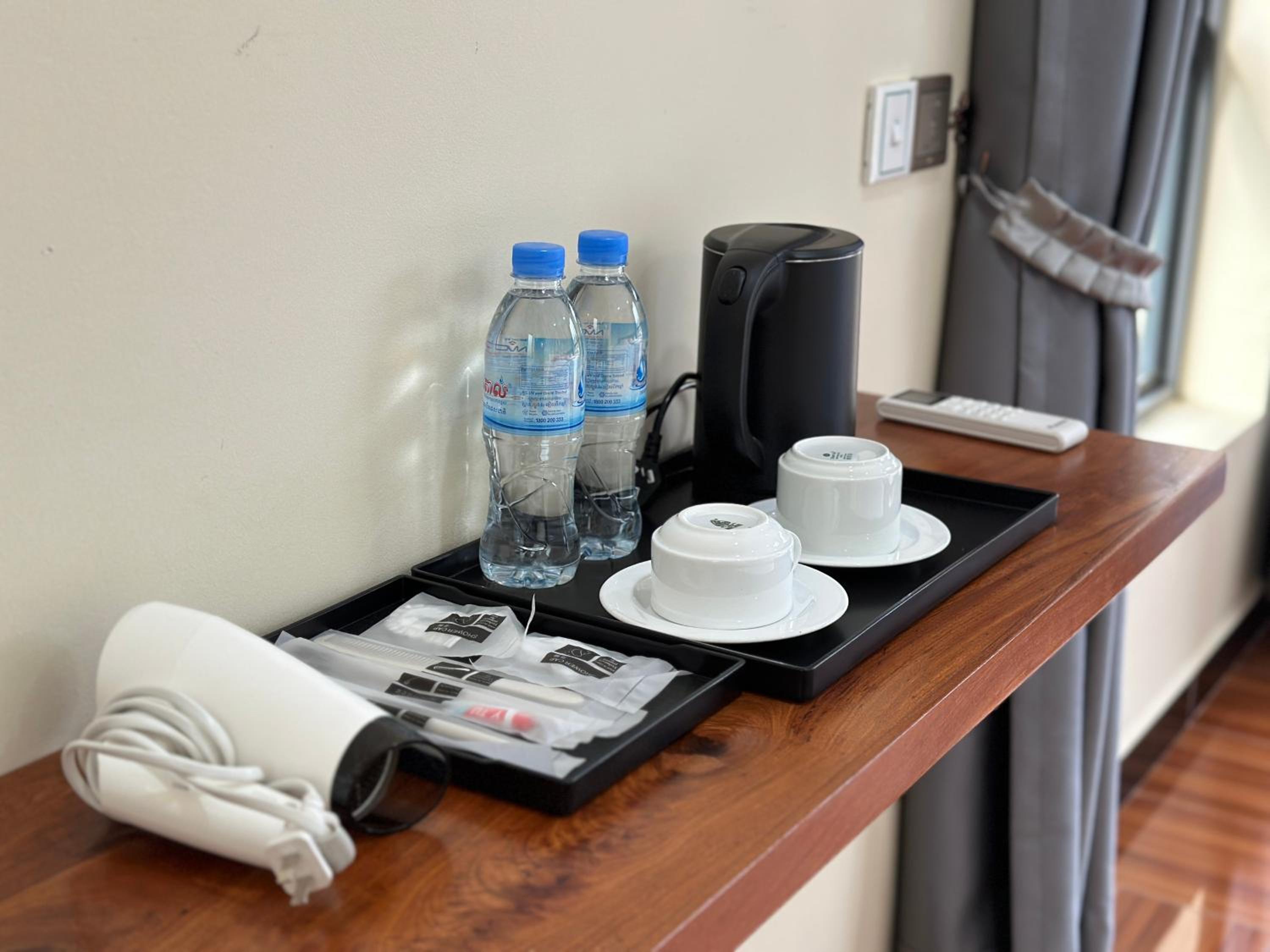 Each unit comes with a kettle for your beverage needs. The private bathroom includes a shower, hair dryer, and complimentary toiletries. Stay cool with air conditioning and store your belongings in the wardrobe provided.