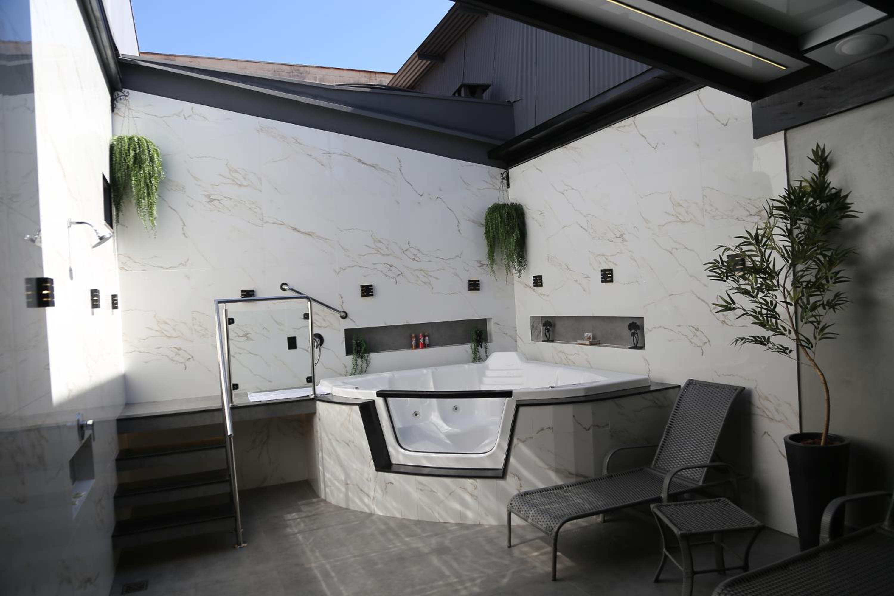Experience a romantic getaway with a hot tub in your room for added luxury.