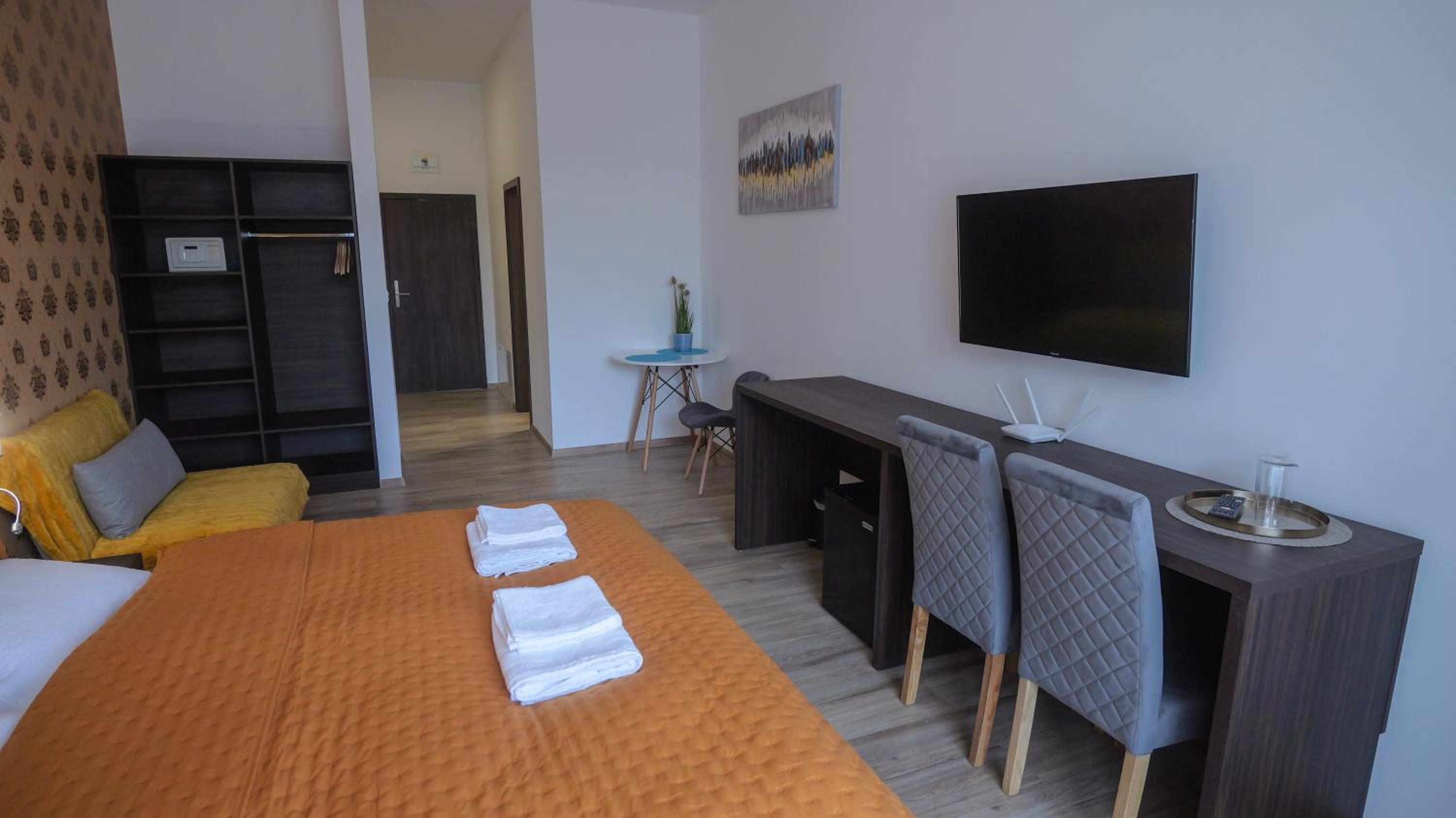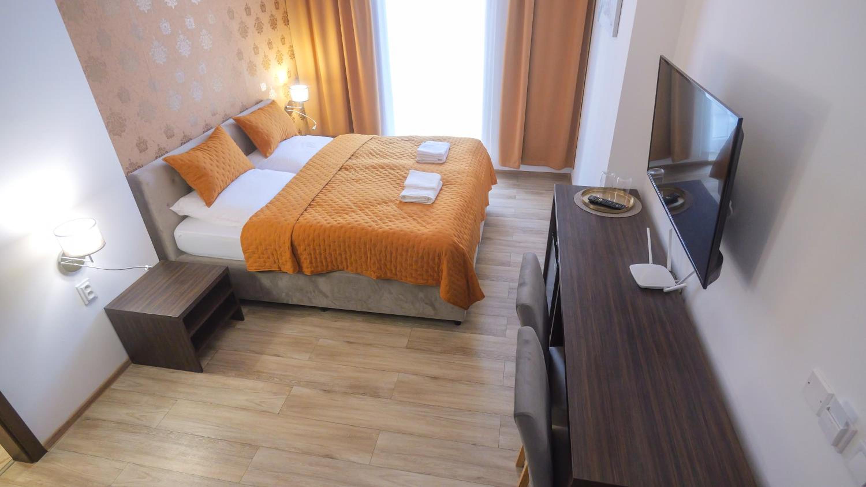 Located just 36 km from Kosice Train Station, Premium City Centre Bedrooms offers a terrace, free parking, and a bar. Modern Comforts: Enjoy free WiFi and a 24-hour front desk in our 4-star allergy-free property. Cozy Accommodations: Each room is equipped with a desk, flat-screen TV, private bathroom, and fridge. Explore the Area: Embark on outdoor adventures like hiking in the scenic surroundings. Don't miss out on nearby attractions such as Steel Arena and Spis Castle. Book your stay at Premium City Centre Bedrooms today for a memorable experience in Prešov.