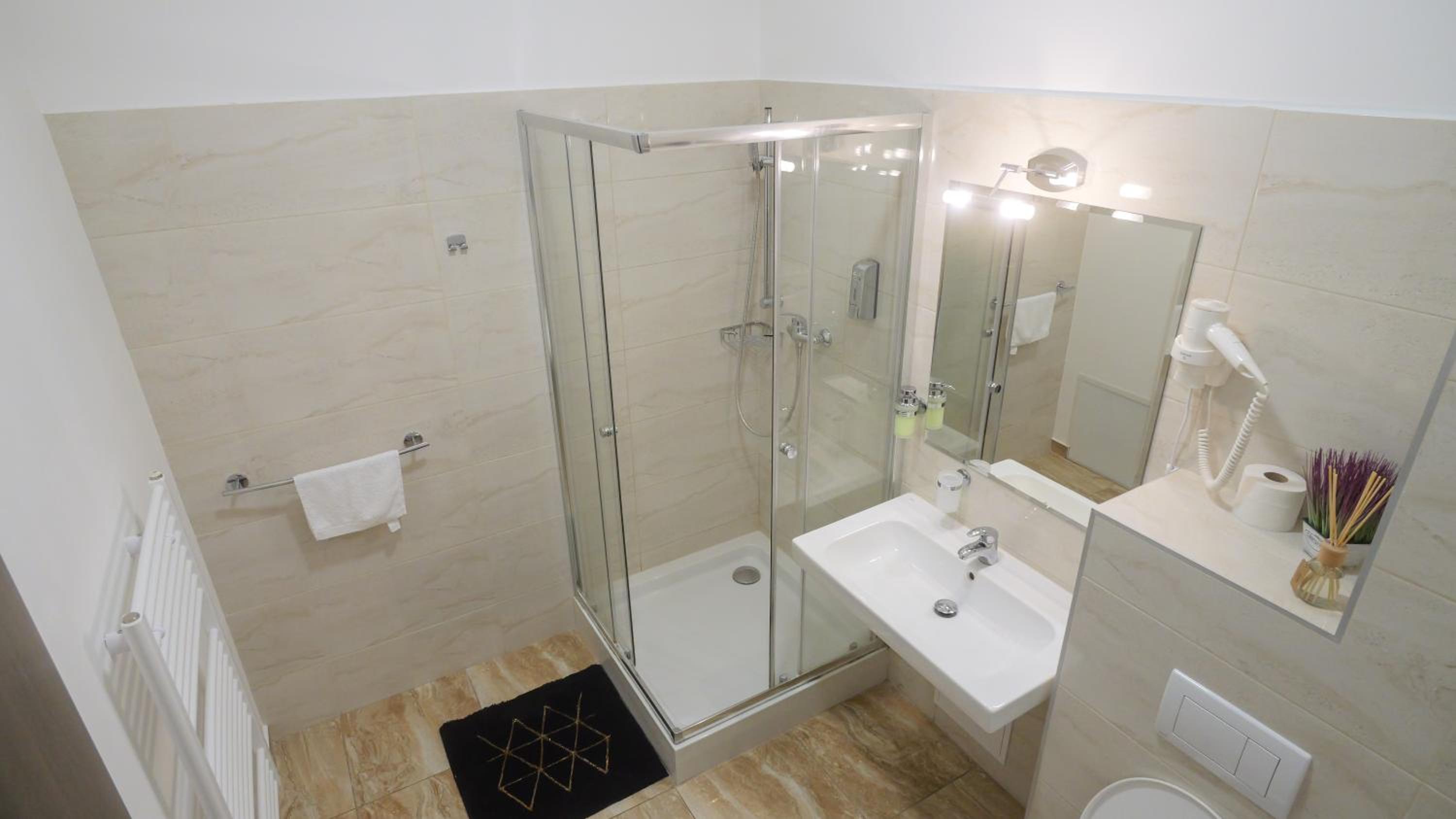 Čo sa týka ubytovania, tichá lokalita aj pokojný spánok, moderné izby a kúpeľňa nádherná. Všetko veľmi čisté . Odporúčam 👍🏼❤️