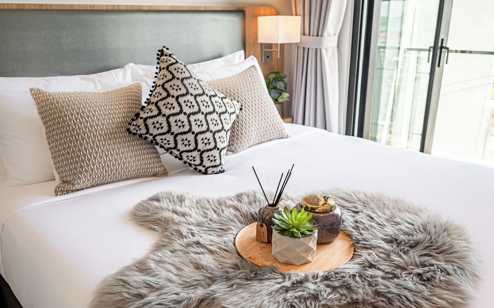 Relax in individually decorated guestrooms with fully-equipped kitchens. Enjoy Select Comfort beds with down comforters and Frette Italian sheets. Watch entertainment on 65-inch Smart TVs with cable programming.