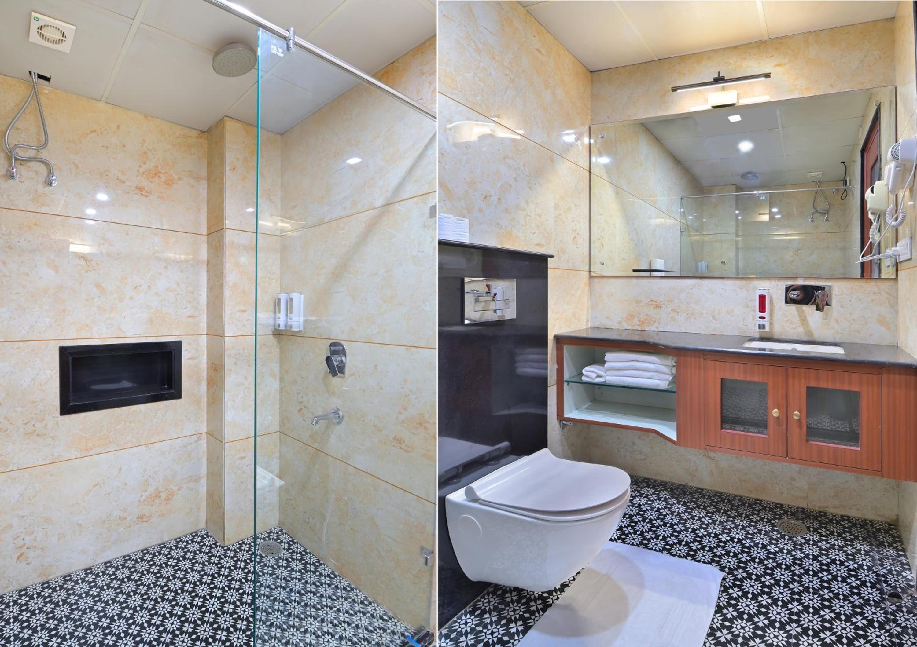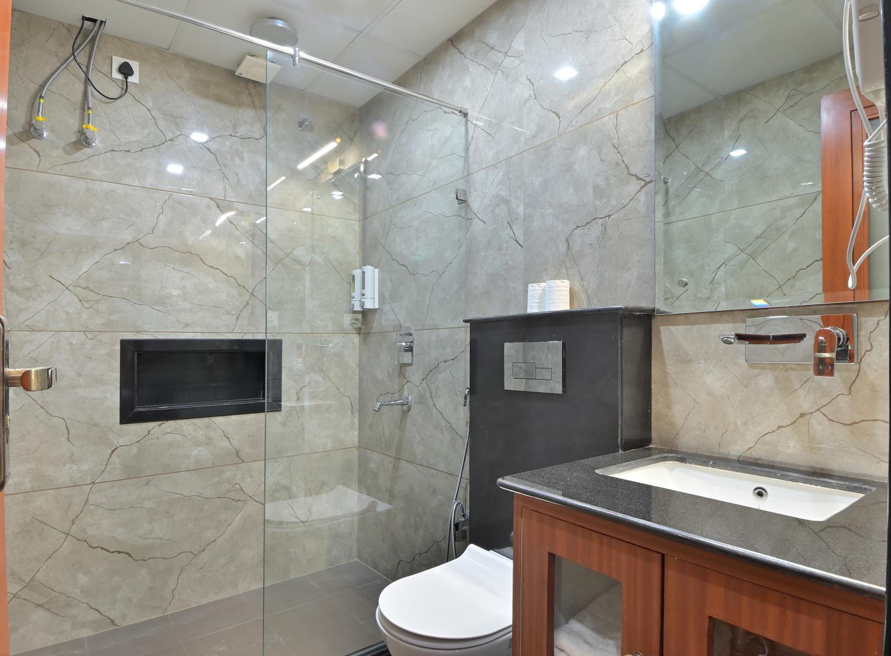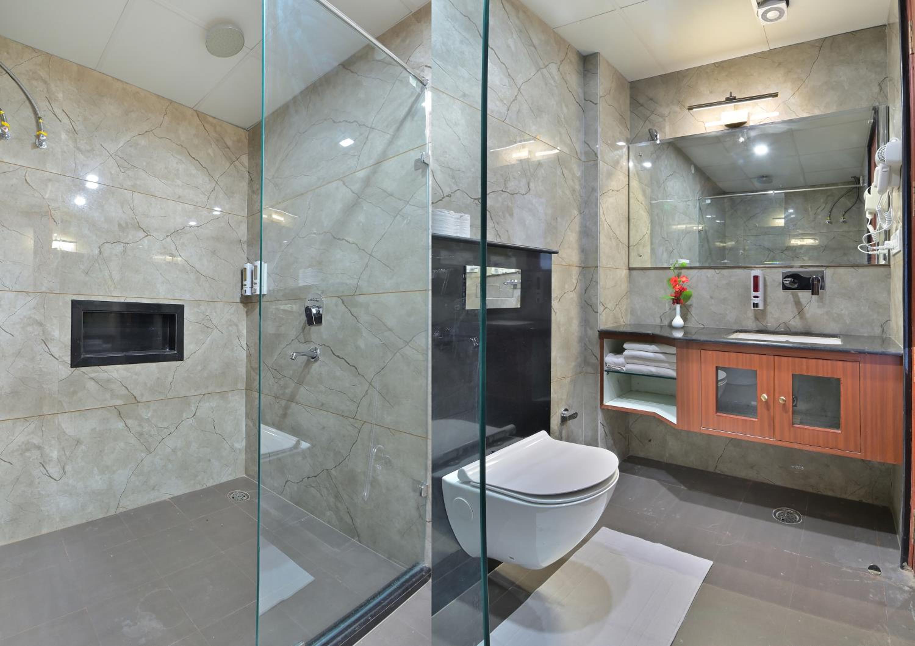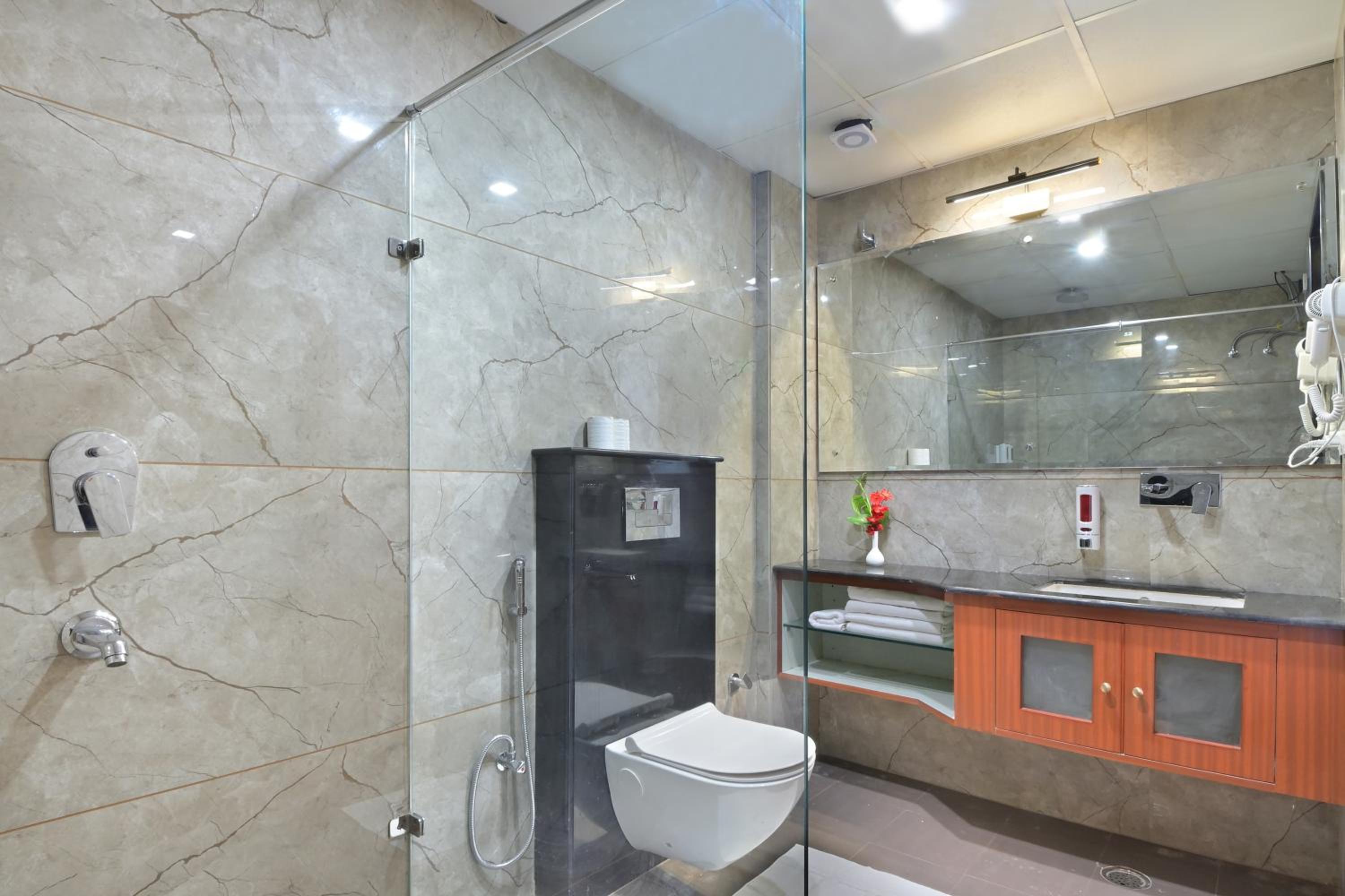 The only thing I didn't like was this glass on the bathroom door which is translucent. So whenever someone is using the washroom, they are partially visible. I'd suggest they put some kind of pull down blinds on the door. That is the only thing I didn't like. The hotel and their hospitality is amazing!