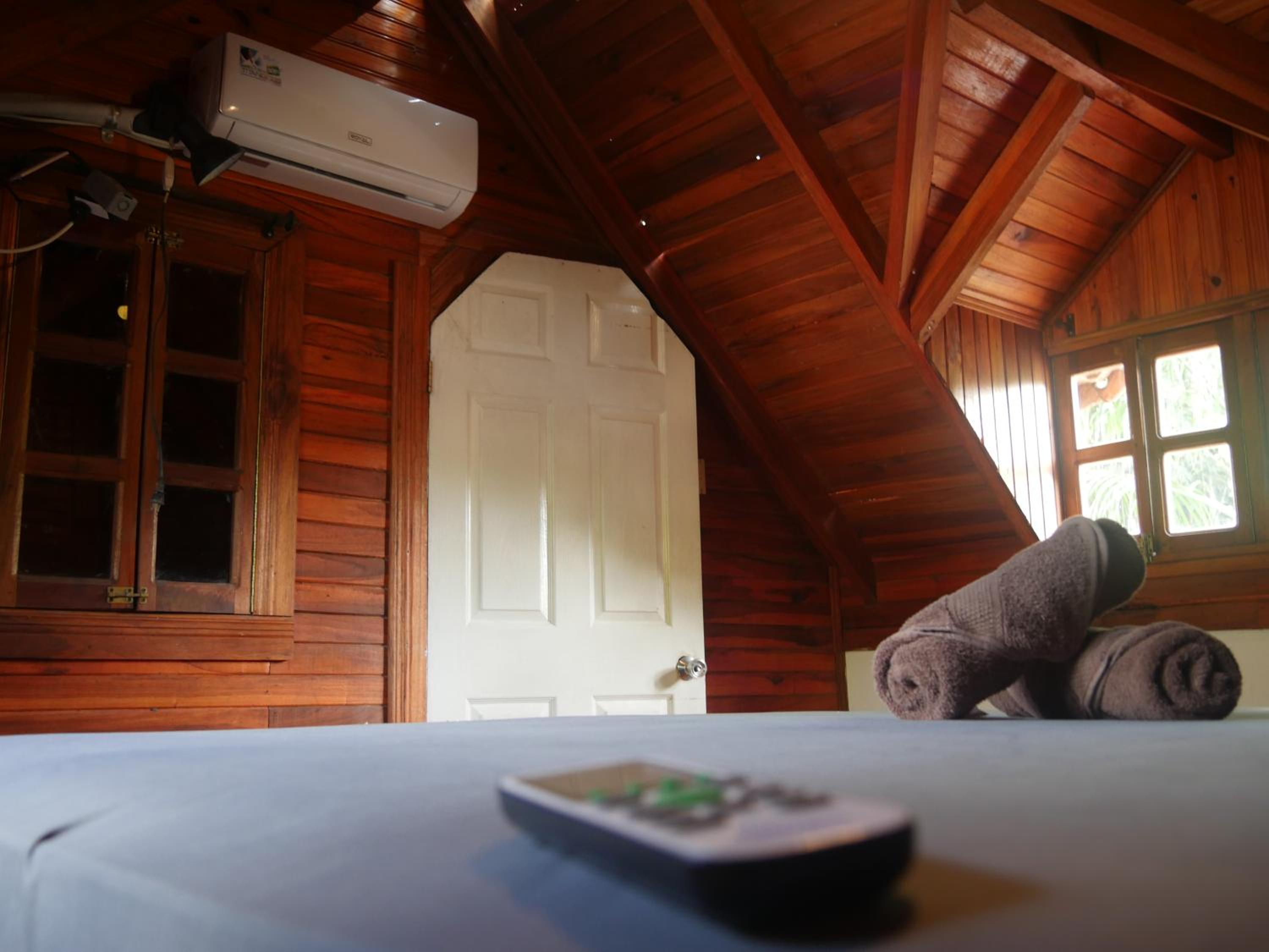 The location, the bed and the air conditioner