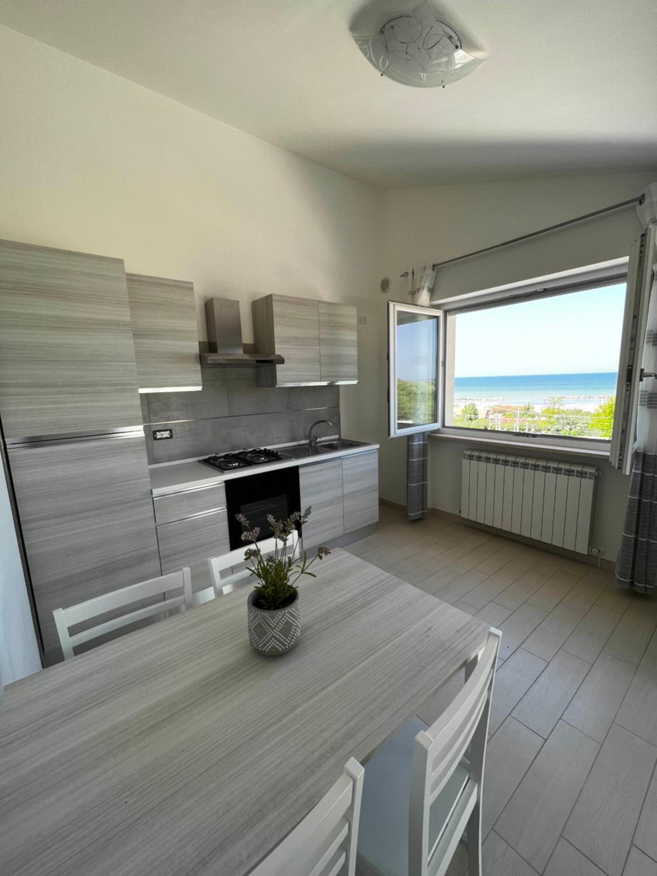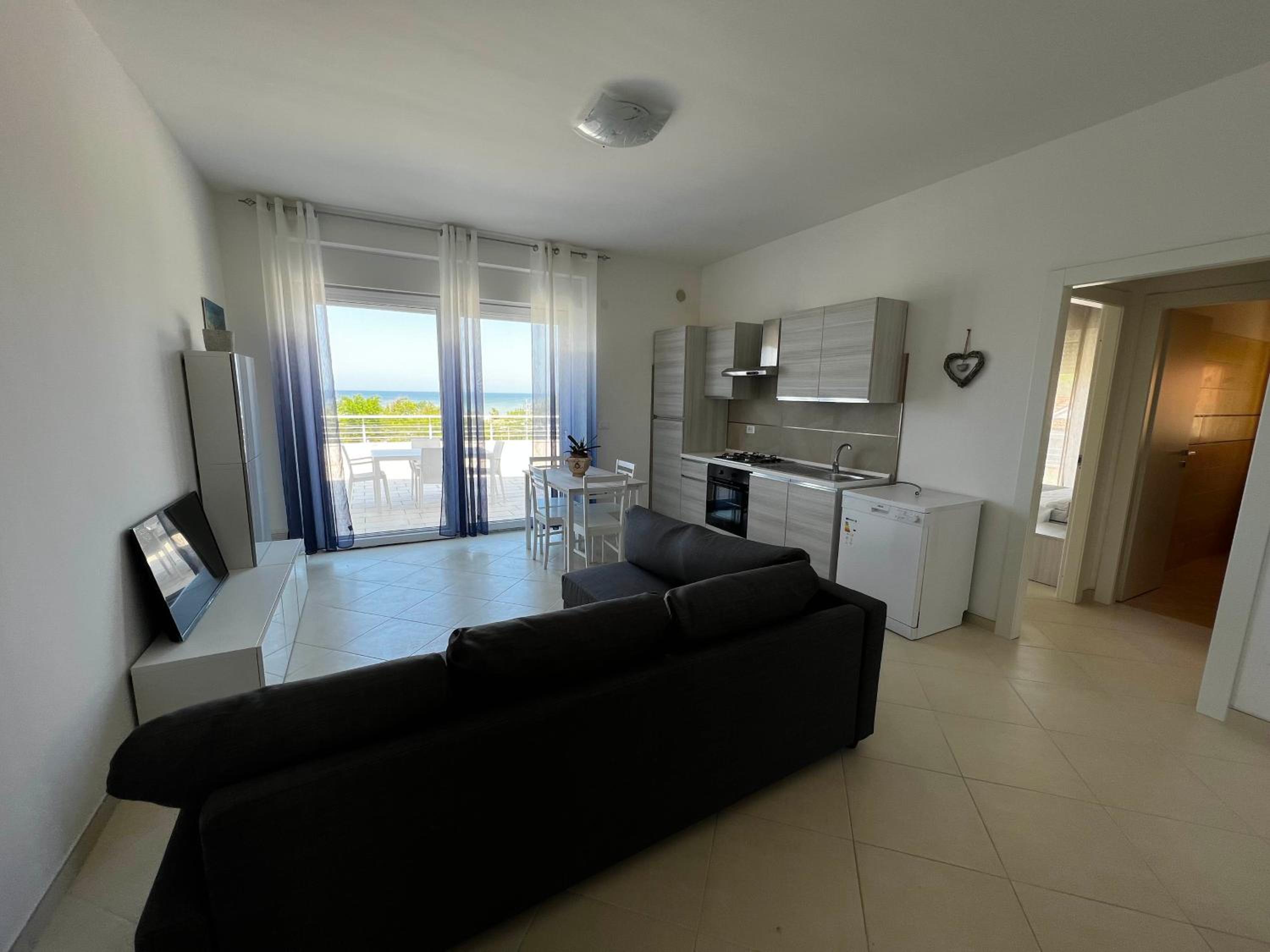 Appartamento nuovo con tutti i confort e disponibilità ombrellone gratuito e lettini in spiaggia.