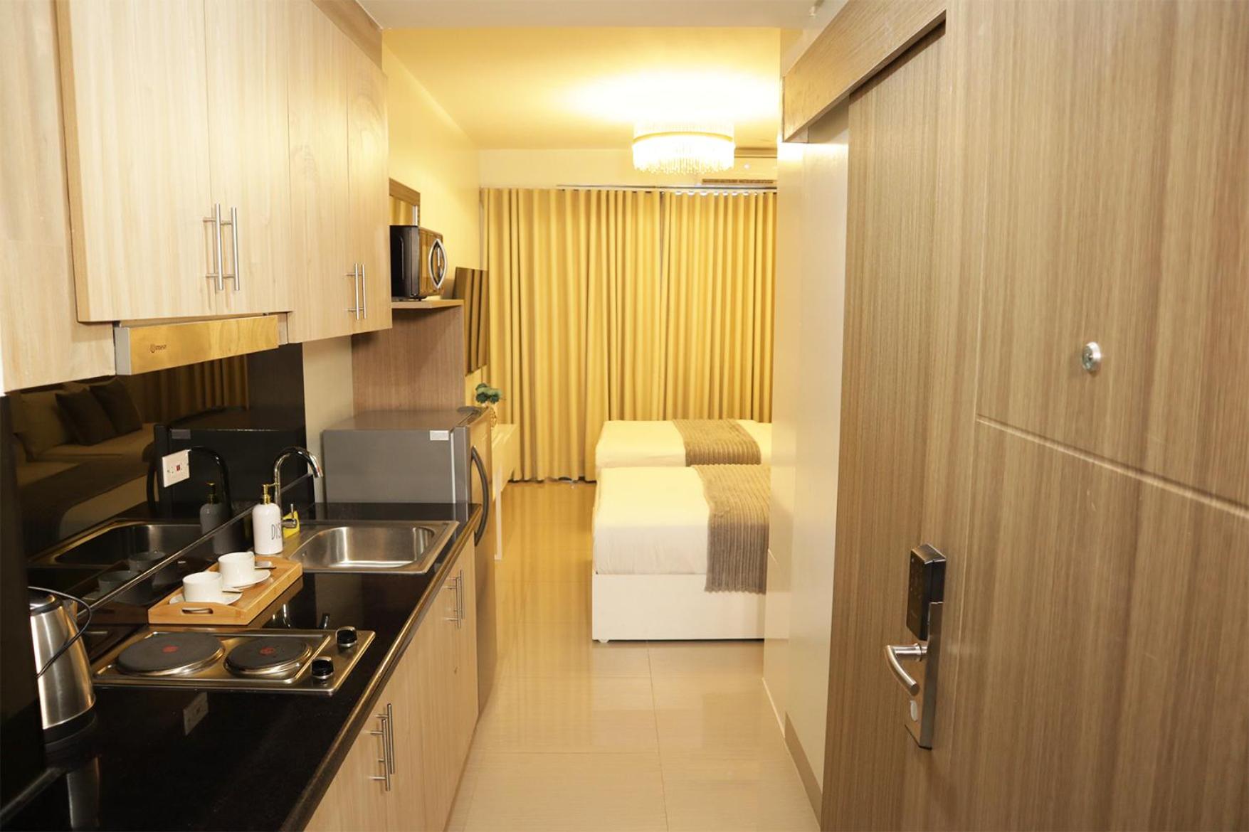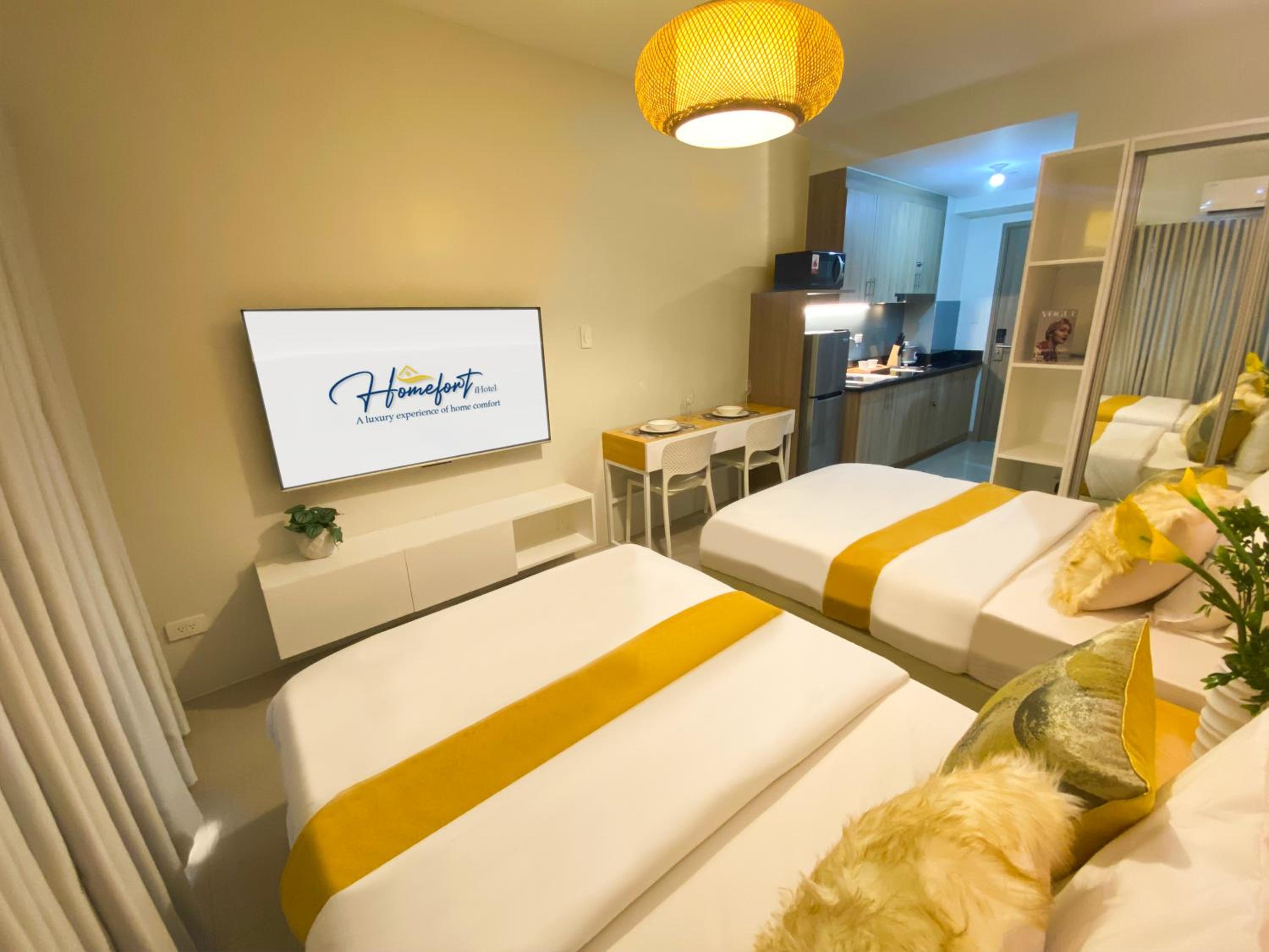 To book your relaxing stay with garden and pool views, reserve now at Homefort at Shore Residences.