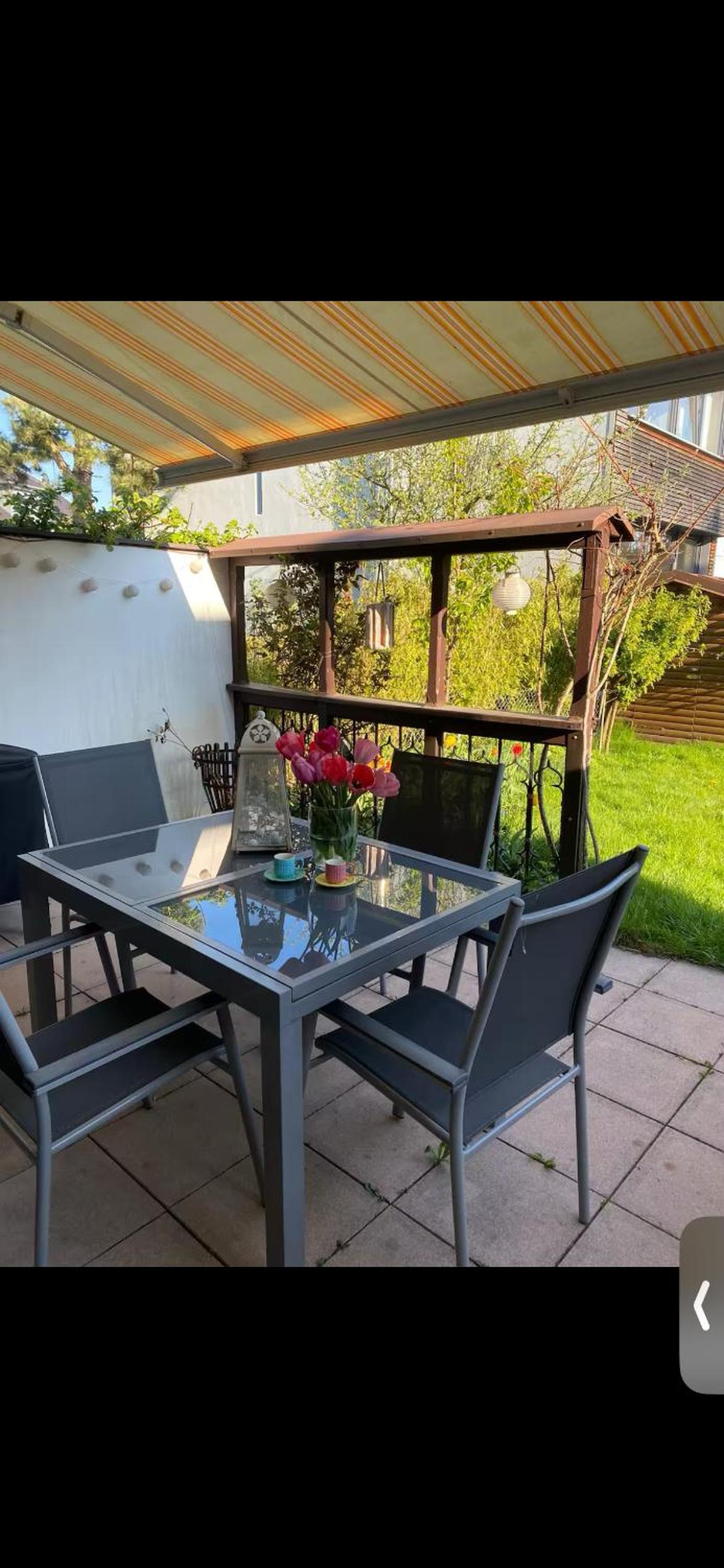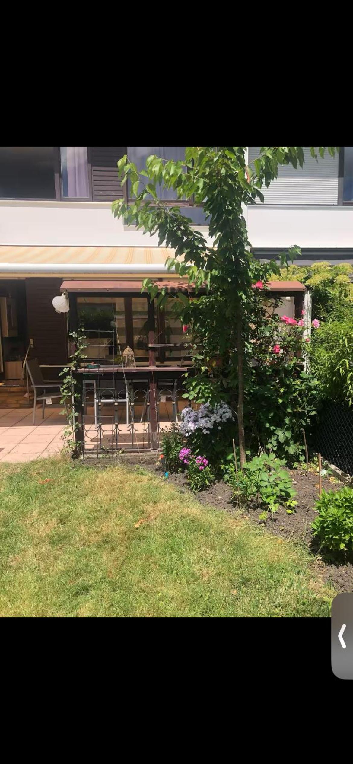 Enjoy picturesque garden views and relax on the terrace at Gemütliches Zimmer mit Garten und Fitnessstudio.